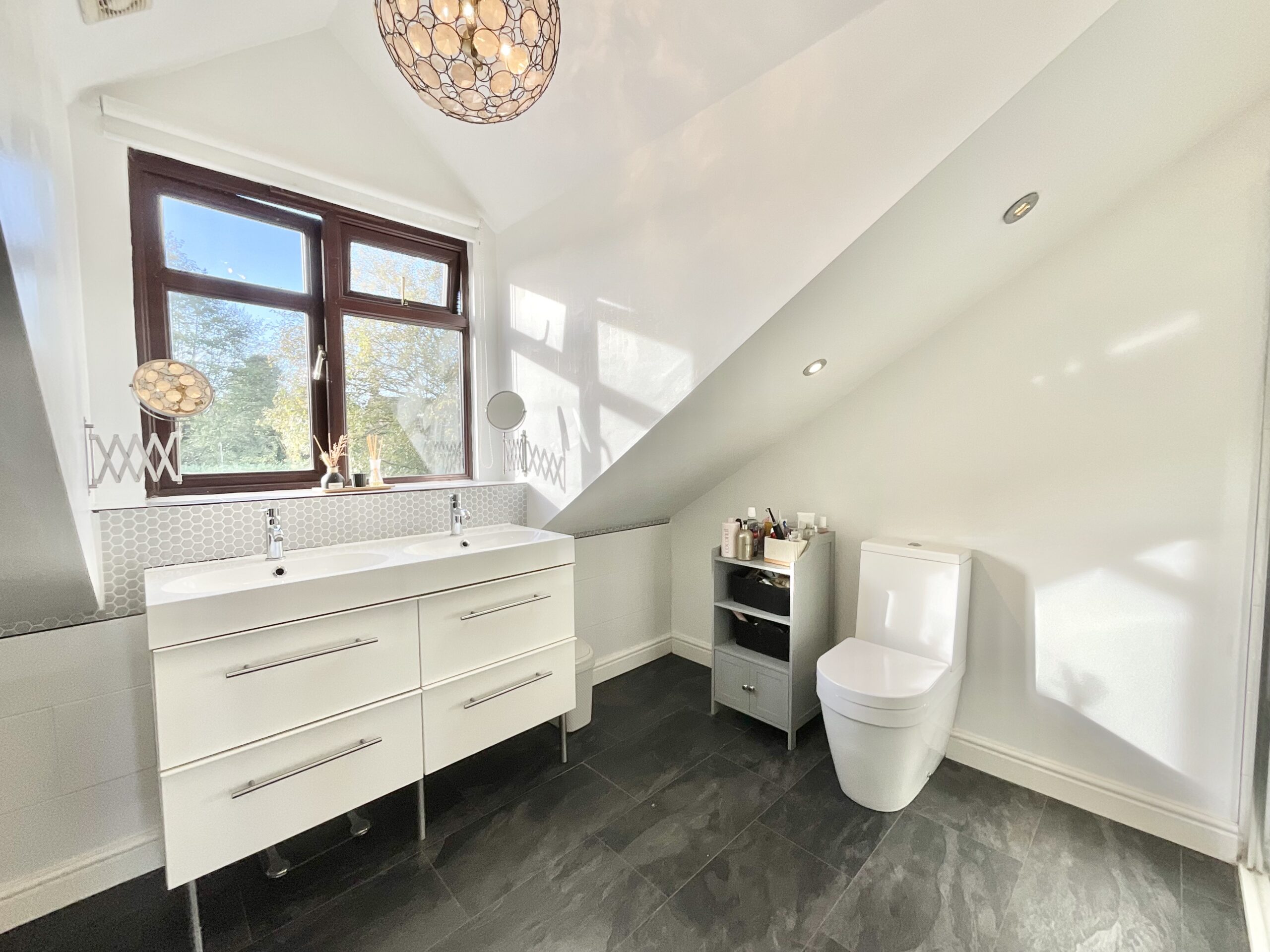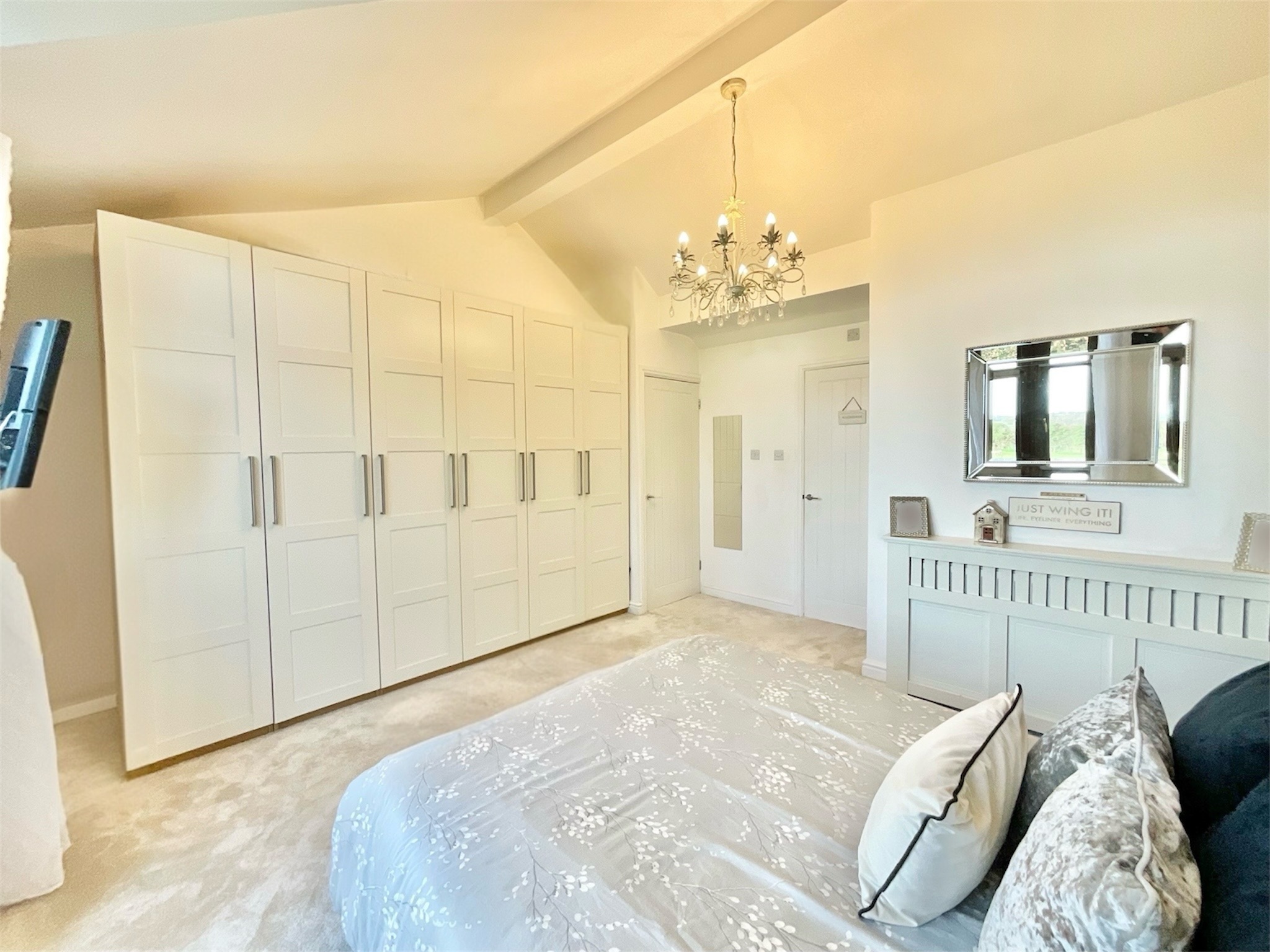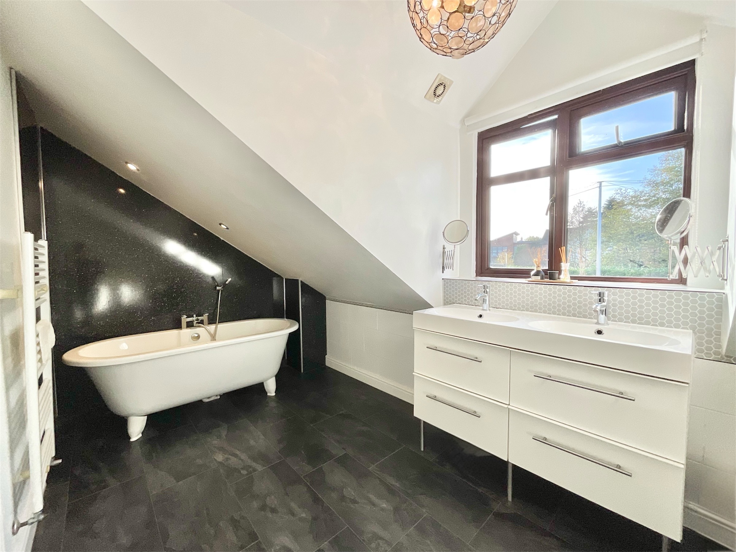 - Five generously sized double bedrooms including a master with vaulted ceilings, Juliette balcony and an en-suite offering a freestanding roll-top bath and walk-in shower.
