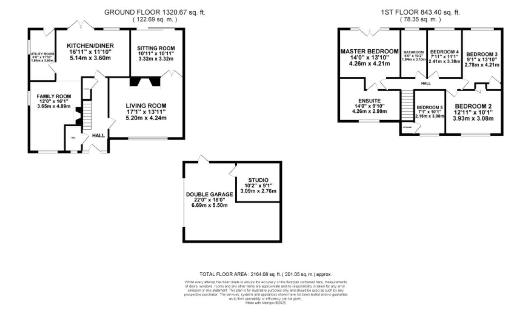 - Walled entrance with room for electric gates, spacious driveway with ample off-road parking, double garage with internal studio, and rear garden with seating areas, grass lawn, and countryside views.