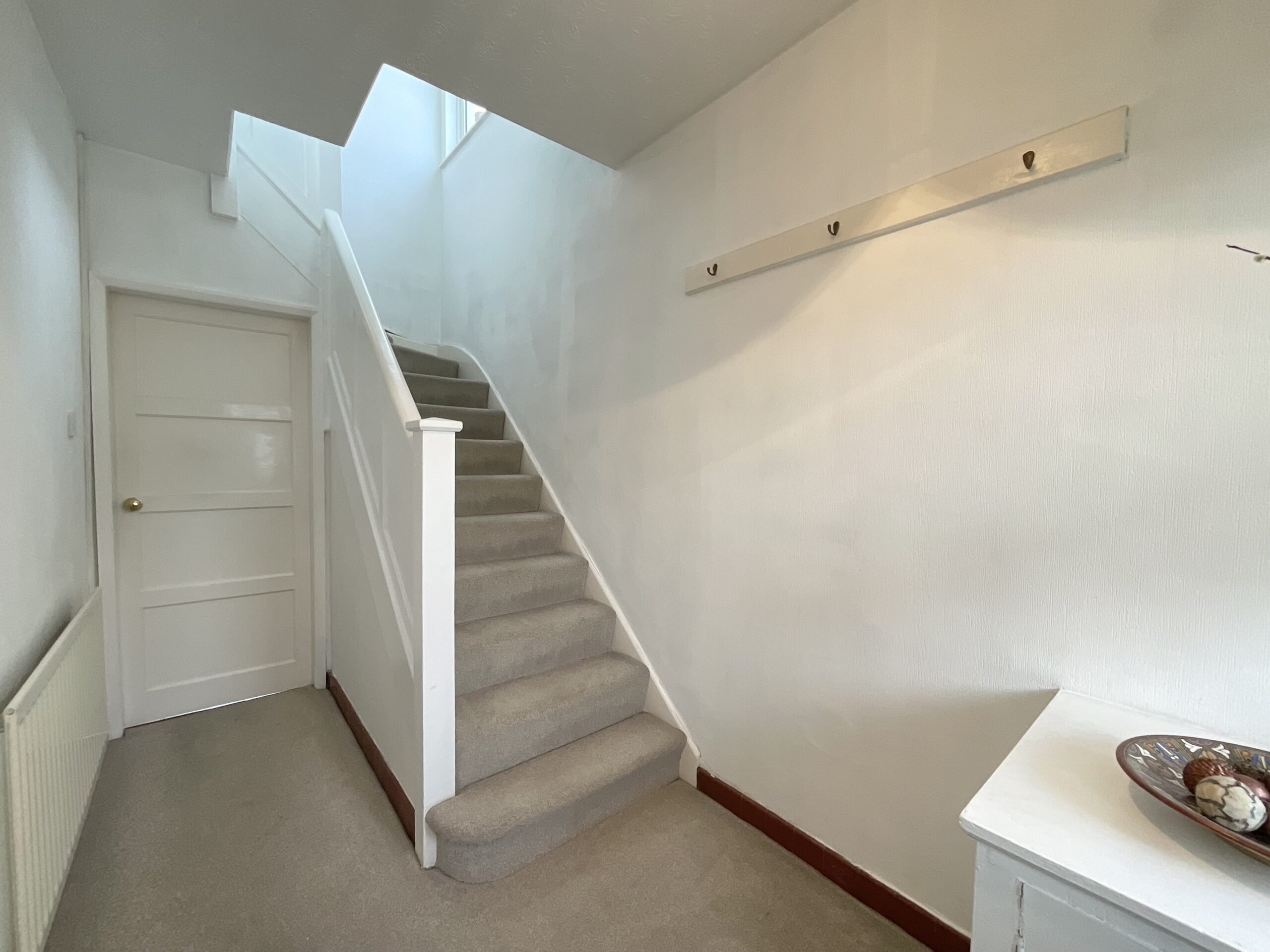 Upstairs, bedroom one is a large double room with ample space for additional furniture and the potential to install built-in wardrobes if desired. Bedroom two is another comfortable double, while bedroom three is a single bedroom that benefits from a built-in cupboard, ideal for storage. This floor also features a WC and a separate shower room, adding to the home’s practicality.