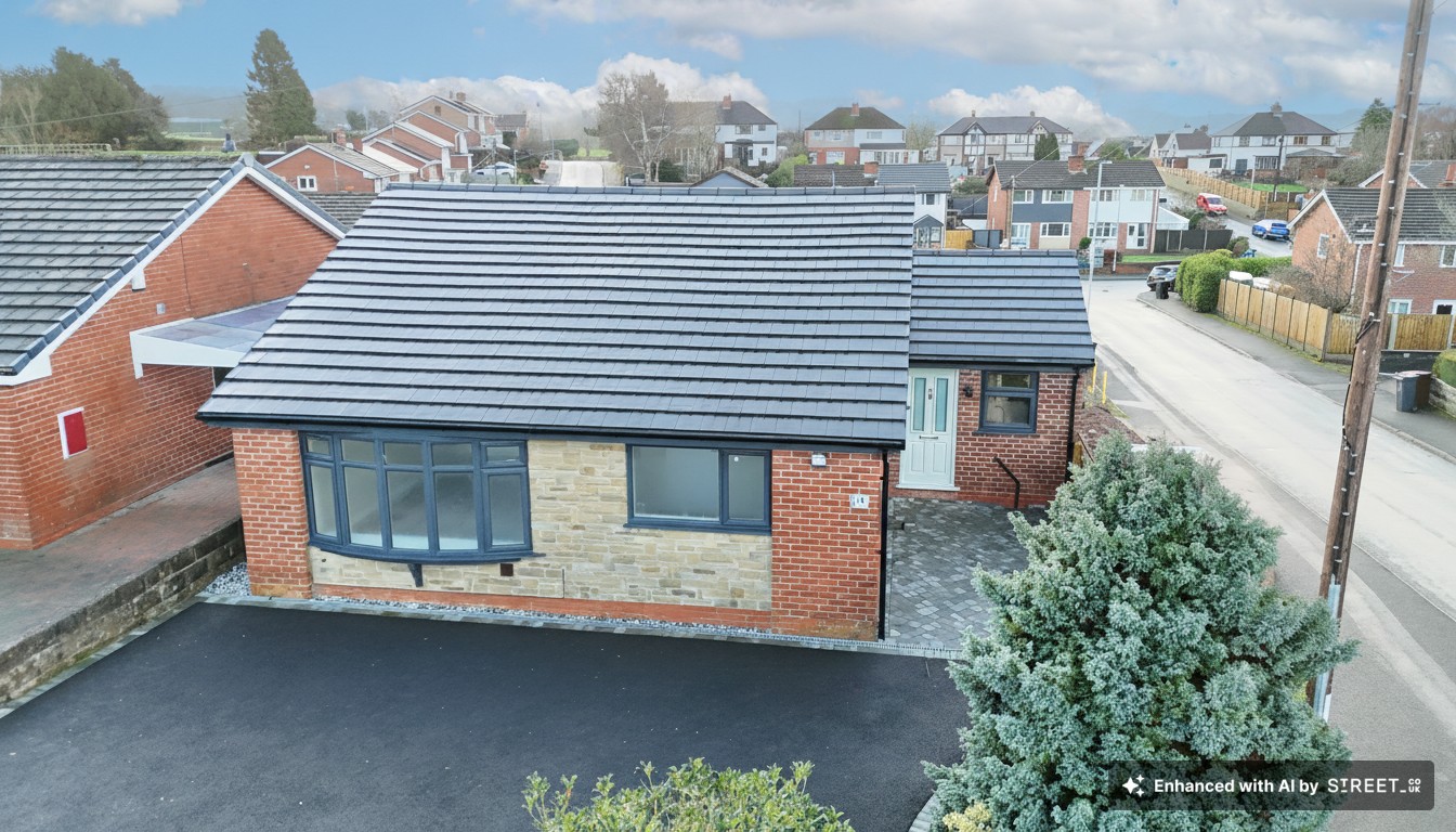 “So shine bright, tonight, you and I, we’re beautiful like diamonds in the sky” And this three-bedroom bungalow? It’s a true gem! Fully turnkey and finished to perfection, this pristine home shines with a modern, crisp aesthetic, like a diamond cut from the rough. Recently renovated from top to bottom, it stands proudly a cut above the rest. Nestled in the charming market town of Cheadle, you’ll enjoy the convenience of supermarkets, shops, and eateries, all while benefiting from the warmth of a close-knit community. On your doorstep, scenic countryside routes lead you toward Oakamoor, Dimmingsdale, and the Hawksmoor Nature Reserve, perfect for peaceful walks and weekend wanderings. Step inside and you’re welcomed by the heart of the home, a beautifully designed kitchen. Matte grey shaker cabinets pair elegantly with a black marble-effect worktop, complemented by integrated appliances and clever storage solutions. An apex ceiling lined with spotlights and skylights floods the room with light, while glazed patio doors open onto the rear garden, creating a modern and airy space. The lounge is spacious and inviting, complete with a cosy electric fireplace and a generous bay window, the ideal spot to sit back and watch the world go by. This standout bungalow features three double bedrooms, including one with a stylish ensuite fitted with a Bluetooth LED mirror and easy-clean tiled panels. The family bathroom matches the same elevated finish, offering a shower-over-bath combination, a feature tile wall, spotlights, and another Bluetooth LED mirror. But there’s more, a discreet staircase leads to a neatly finished attic conversion. Brightened by two skylights, this large, versatile space offers endless possibilities, with an additional door providing easy access to the boiler room. Outside, the low-maintenance Indian stone garden is perfect for alfresco dining. At the front, a beautifully tarmac driveway framed by mature shrubs and a dry-stone wall offers ample parking. A second tarmac drive leads to a garage with an electric door, making coming and going a breeze. Think this sparkling bungalow could be the one?