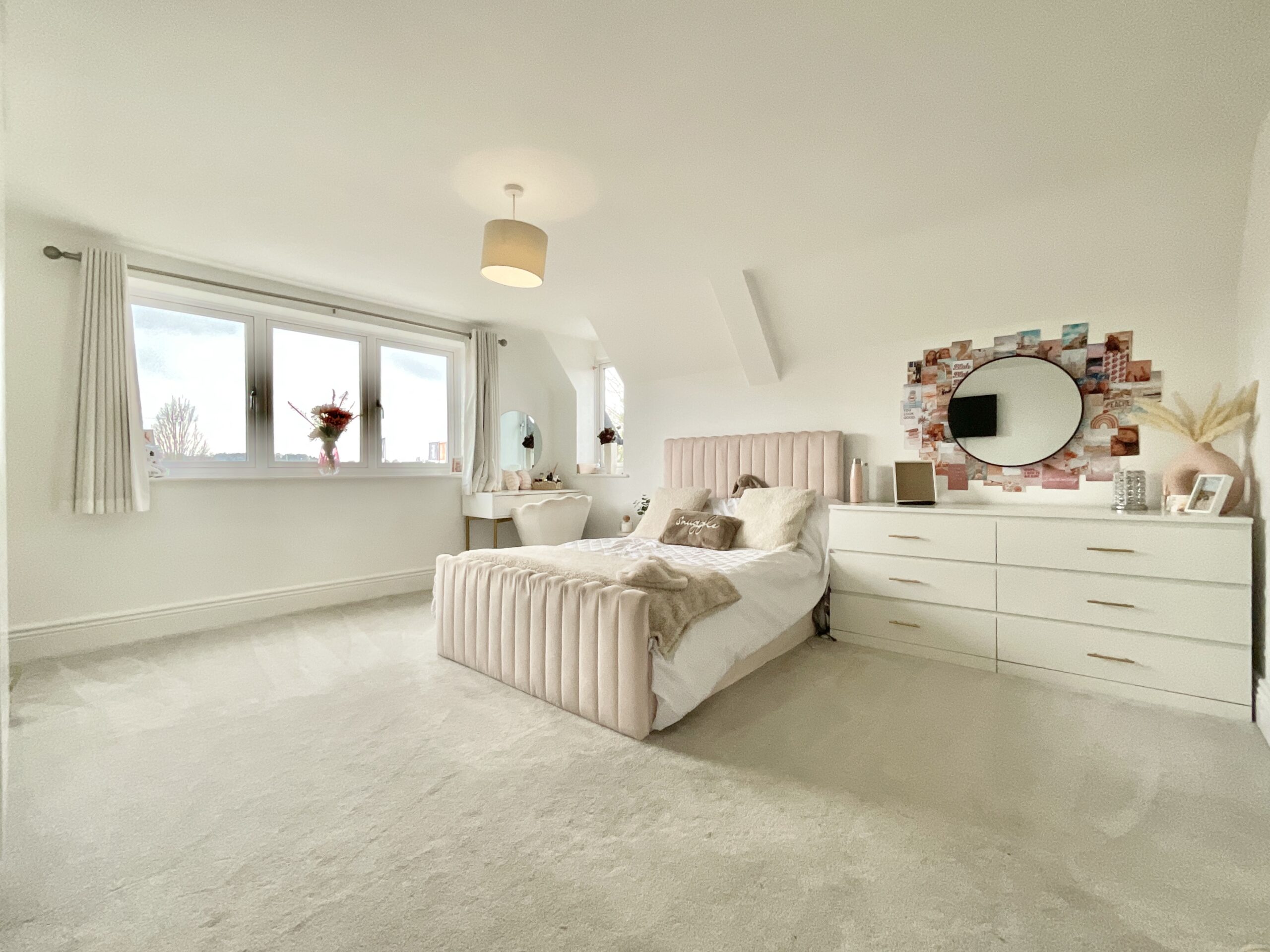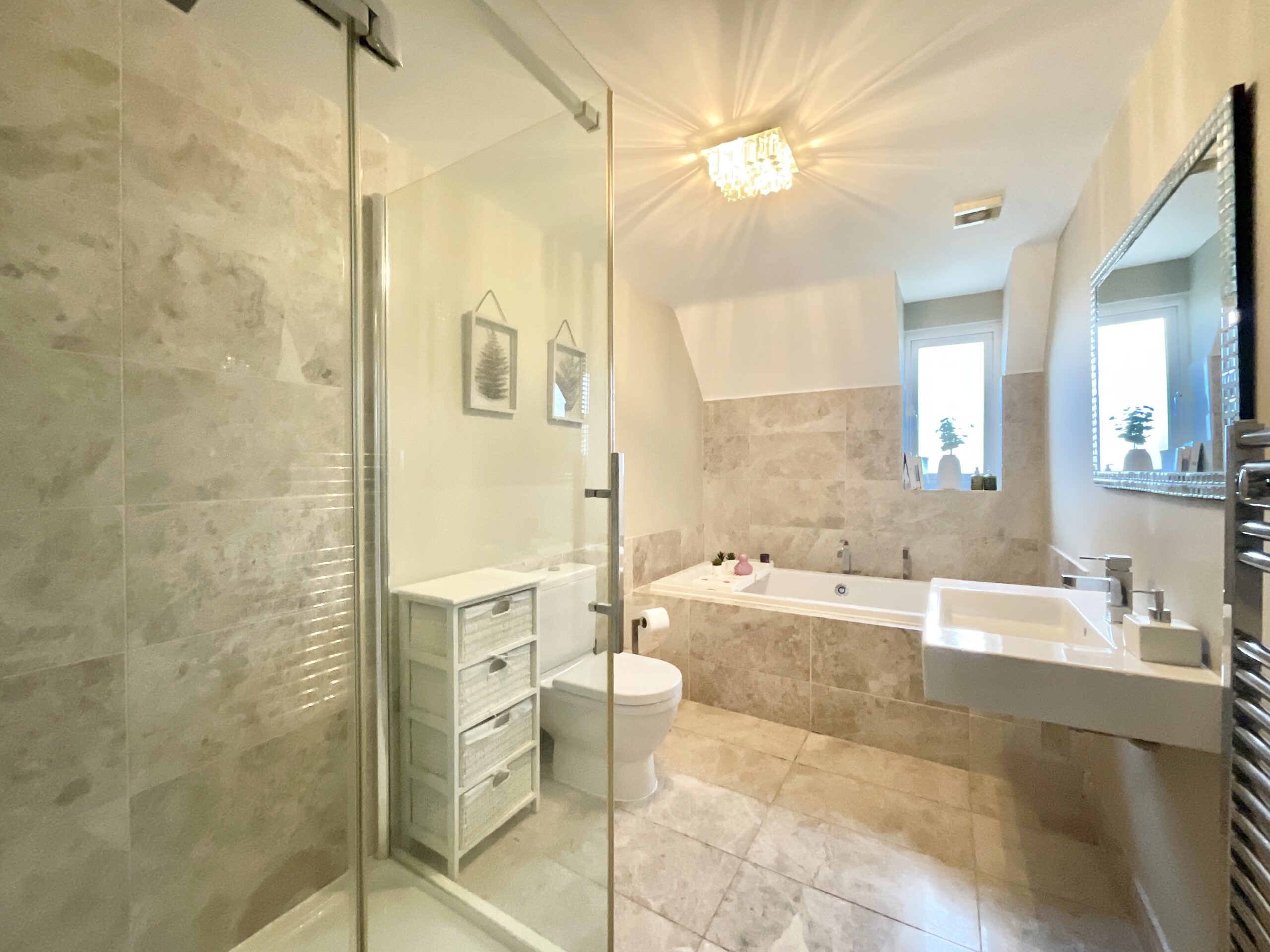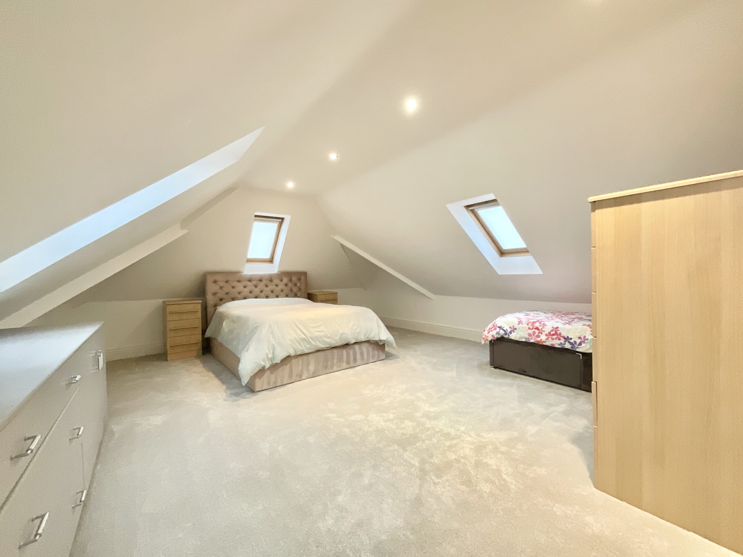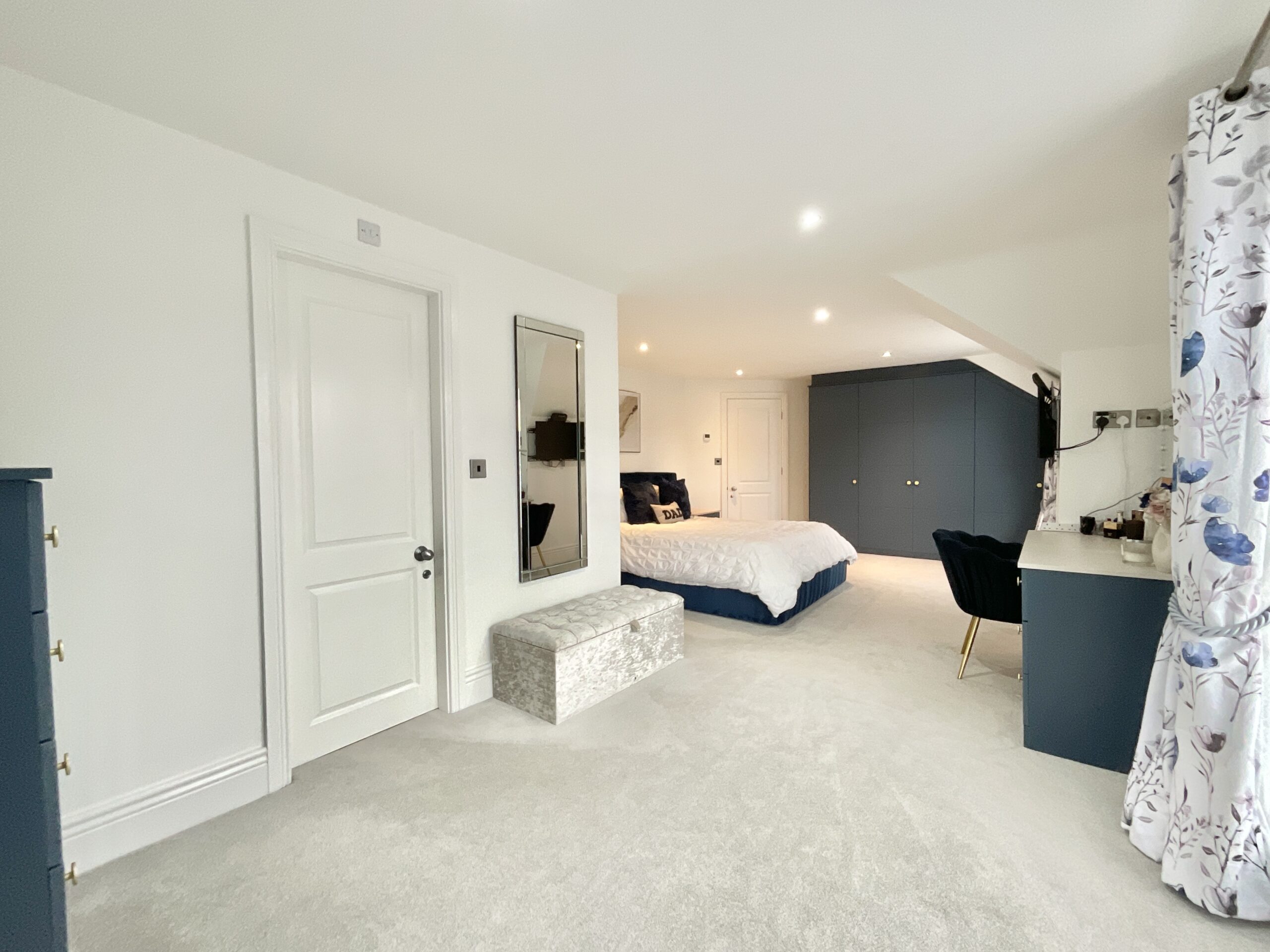 Across two floors, five generous double bedrooms provide comfortable accommodation, three of which benefit from stylish ensuite bathrooms. One bedroom is currently used as a study, making it perfect for home working, while the impressive landing space enhances the sense of openness throughout. The main bedroom gives vibes of a luxury hotel suite with an abundance of fitted wardrobes and three sets of French doors offering a beautiful spot to maybe place a sofa for a chilled summer evenings.