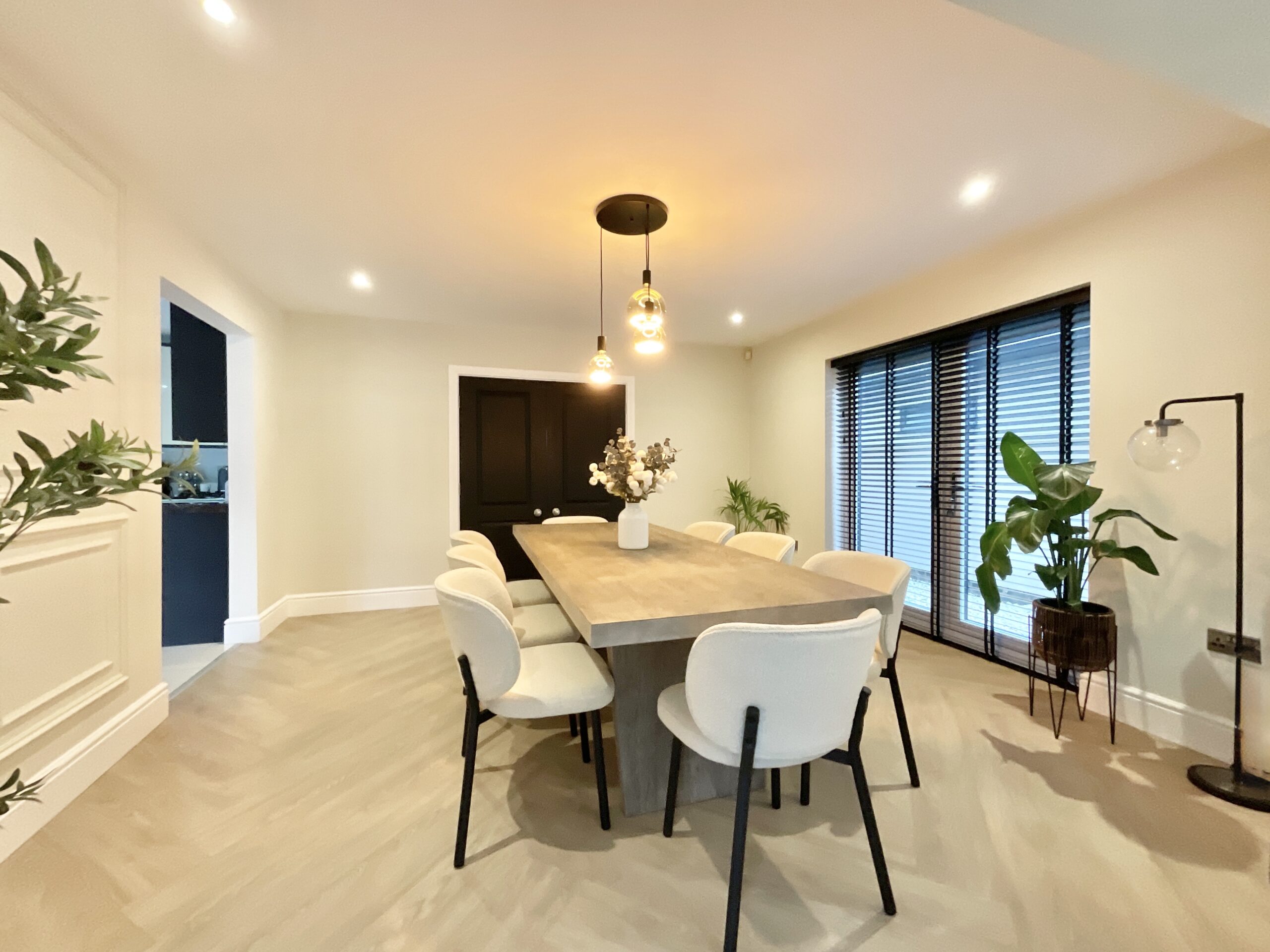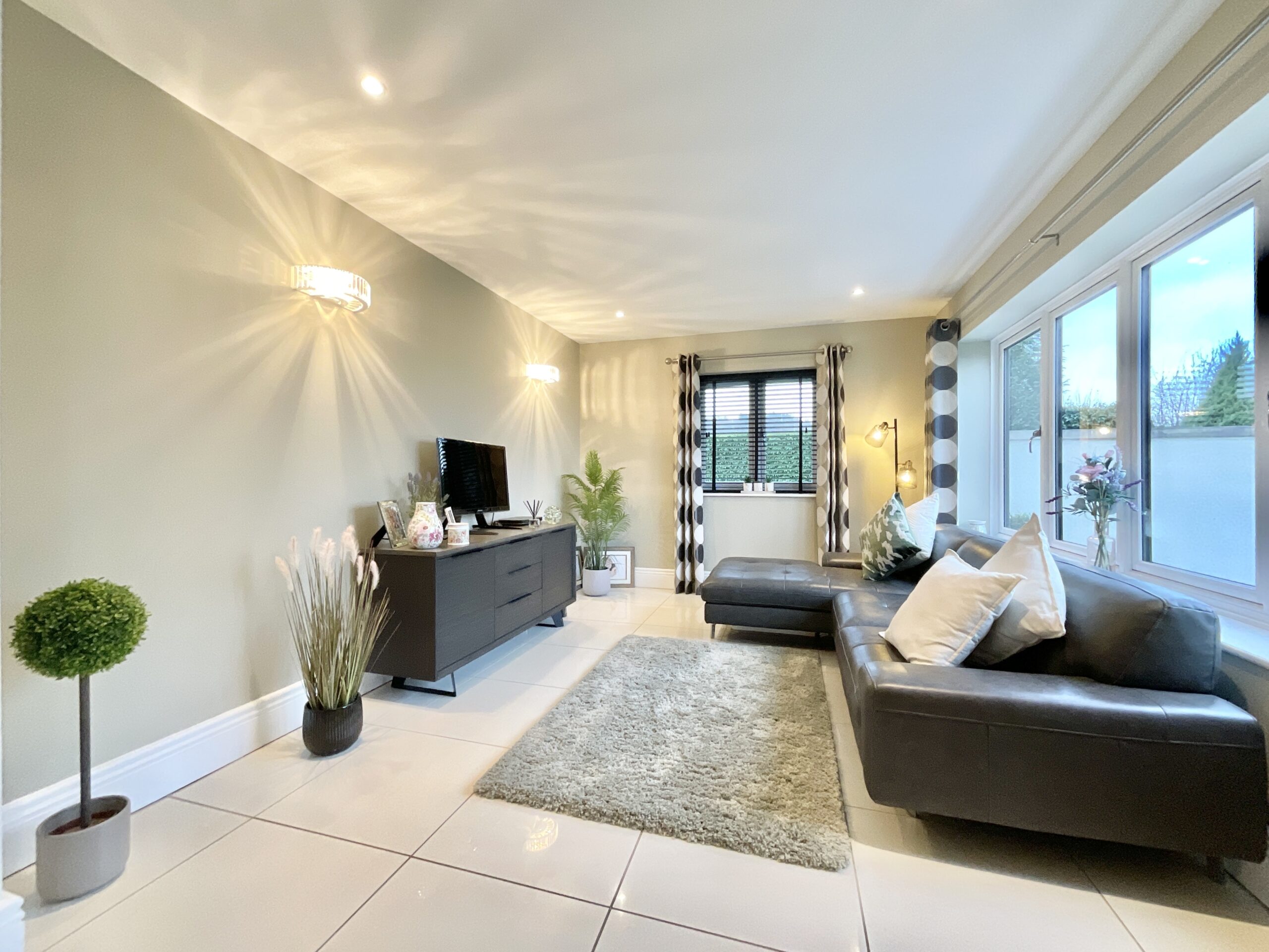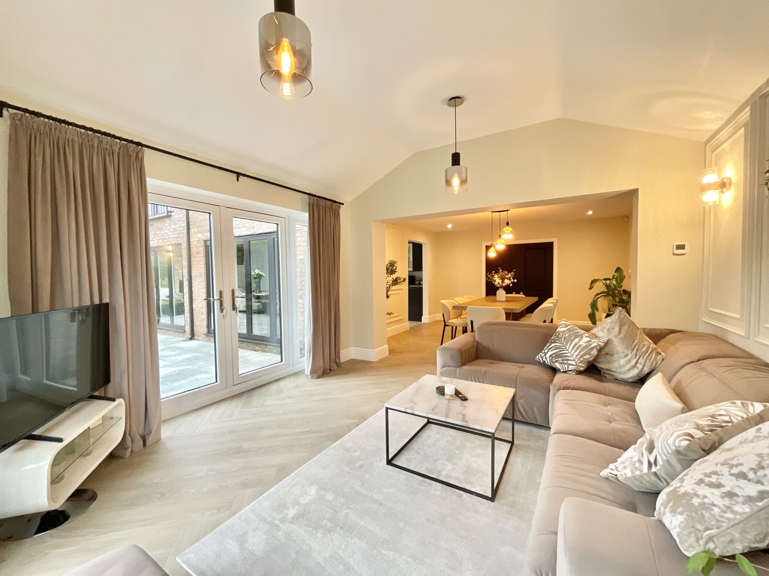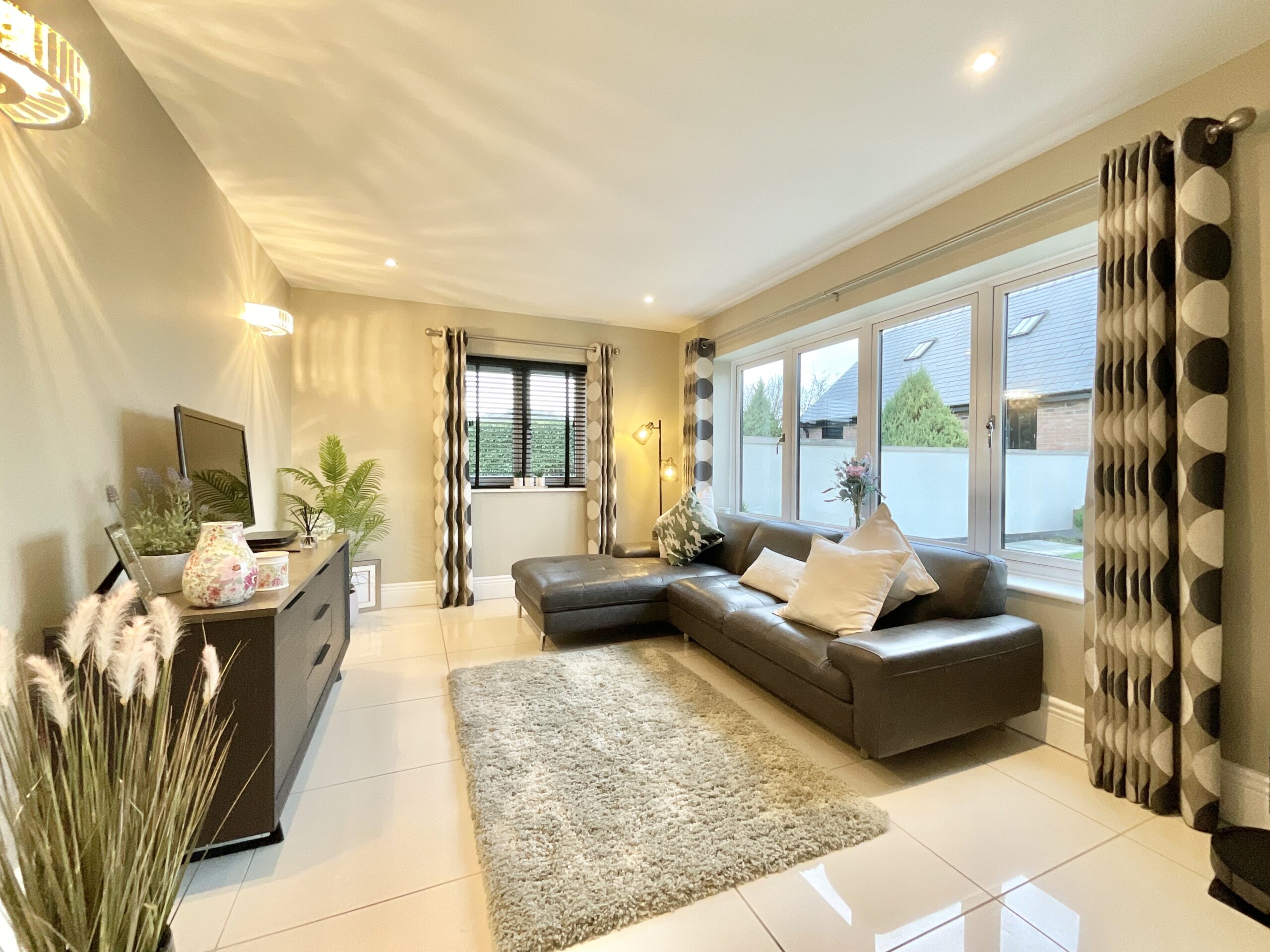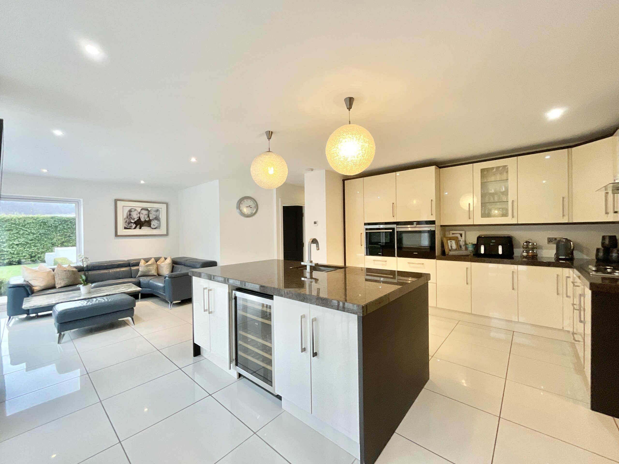 Exquisitely decorated five bed detached home with luxury finishes, spacious living areas, landscaped gardens, double garage, and village amenities nearby. Ideal for family life and entertaining.