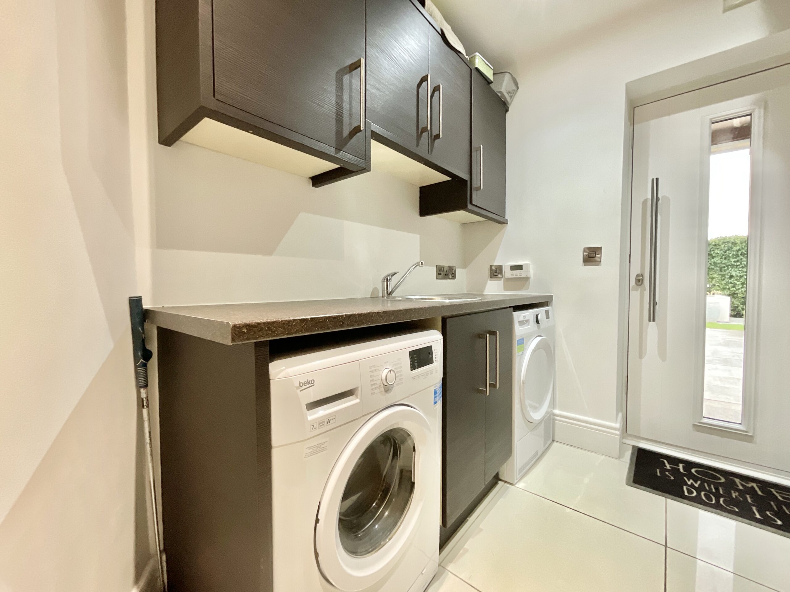 At the heart of the home, positioned alongside the dining room, sits the beautifully designed kitchen. This space is both highly practical for those who enjoy cooking and wonderfully sociable — perfect for entertaining friends or catching up with family after a long day. Bi-folding doors open seamlessly onto the rear garden and patio, making it ideal for sunny days and relaxed alfresco dining. The kitchen features extensive cabinetry and storage, along with a range of integrated appliances including double ovens, a fridge, freezer, dishwasher and wine fridge. A separate utility room and cloakroom adding further convenience.
