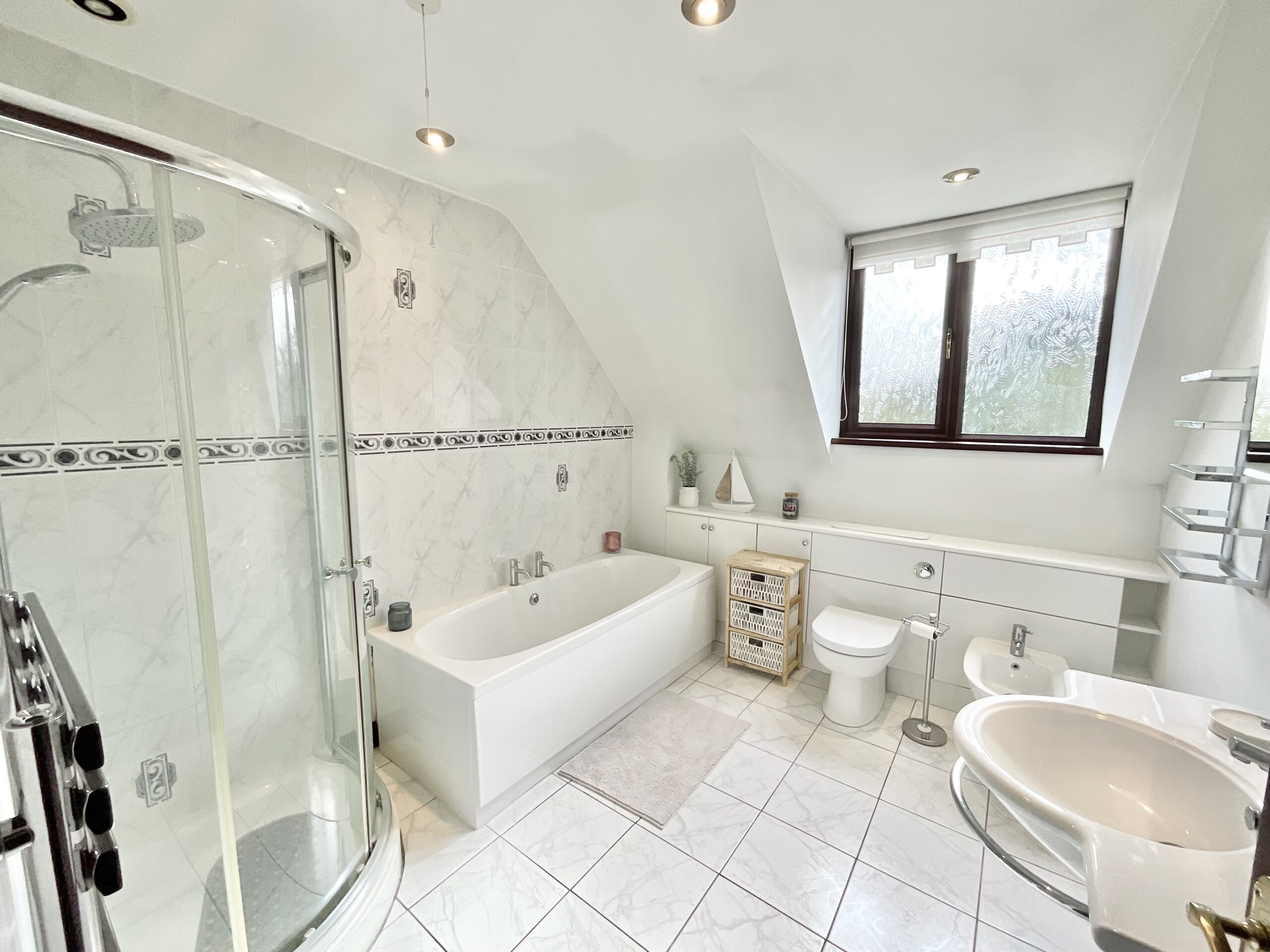 - Expansive master suite with a dressing room and en suite with double-ended bath and a corner shower. Plus three further doubles, one with en suite, and family bathroom.