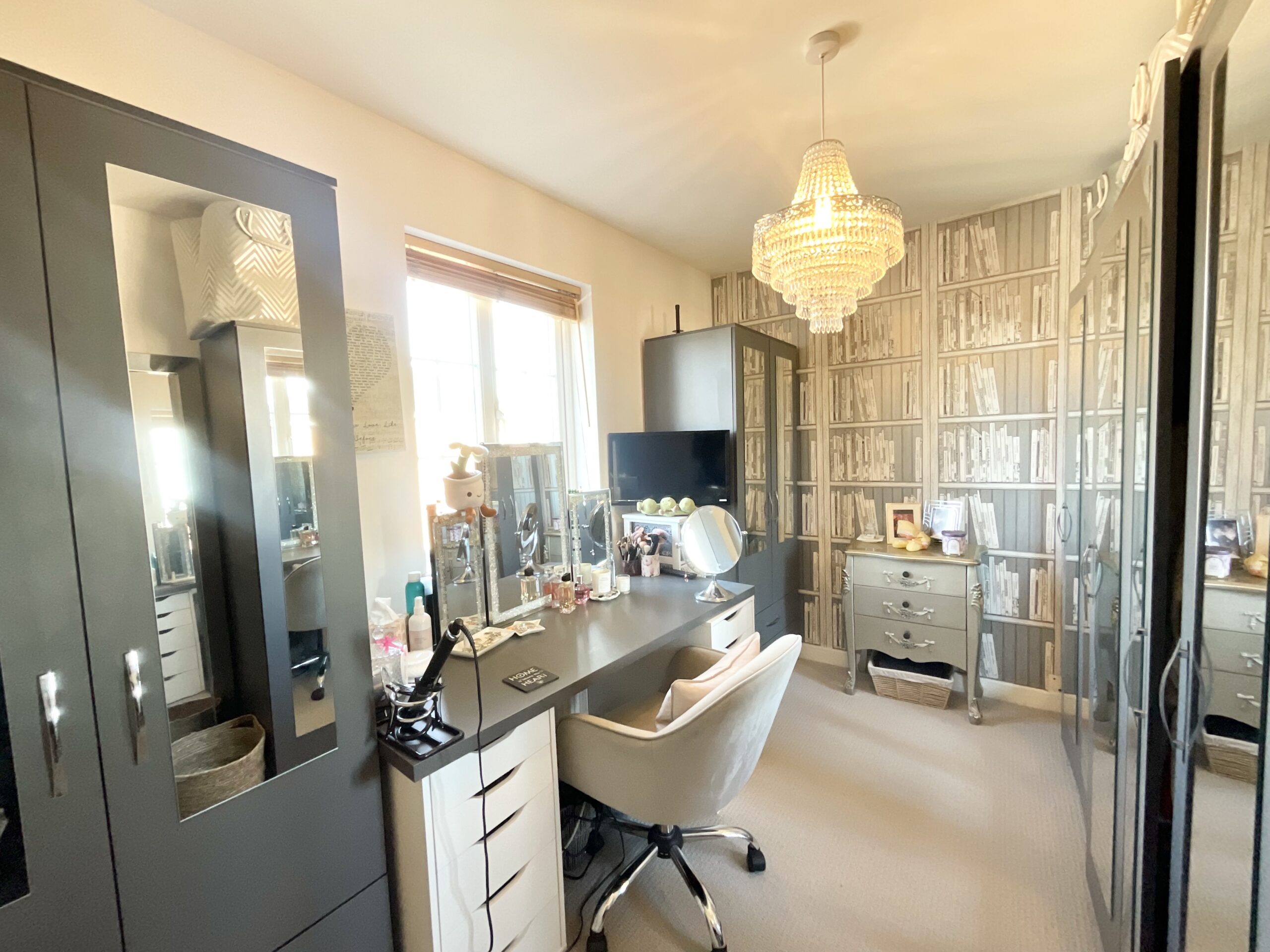 Landing on the open-plan kitchen diner, you instantly hit a jackpot. Wood-grain effect cabinetry, integrated fridge, freezer, and dishwasher, plus a stainless-steel sink and drainer, create a space ready for family breakfasts, dinner parties, and everything in between. Glazed French doors open to the garden, bringing the outdoors in and making it the perfect hub to gather with friends, relax, and plan your next move. From here, your next square leads you into the snug, a cosy retreat for those quieter moments. Curl up with a book, enjoy a film, or simply pause to catch your breath; it’s the ideal spot to rest before continuing your journey. Completing the downstairs, you land on the practical utility room with space for appliances and a WC with a vanity wash hand basin, the essential squares that keep your game running smoothly.