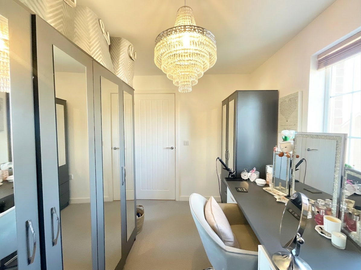 Climbing to the first floor, you reach the ultimate prize… the master bedroom. This winning square boasts a lovely dressing room area, ample storage, and its own ensuite shower room complete with a glazed shower, stylish splashbacks, WC, and pedestal wash hand basin. It’s a peaceful retreat that rewards you after navigating the home’s many delightful spaces. Moving along the board, you land on the large living room, a bright, inviting space with a beautiful bay window. Perfect for relaxing, entertaining, or enjoying a quiet moment.