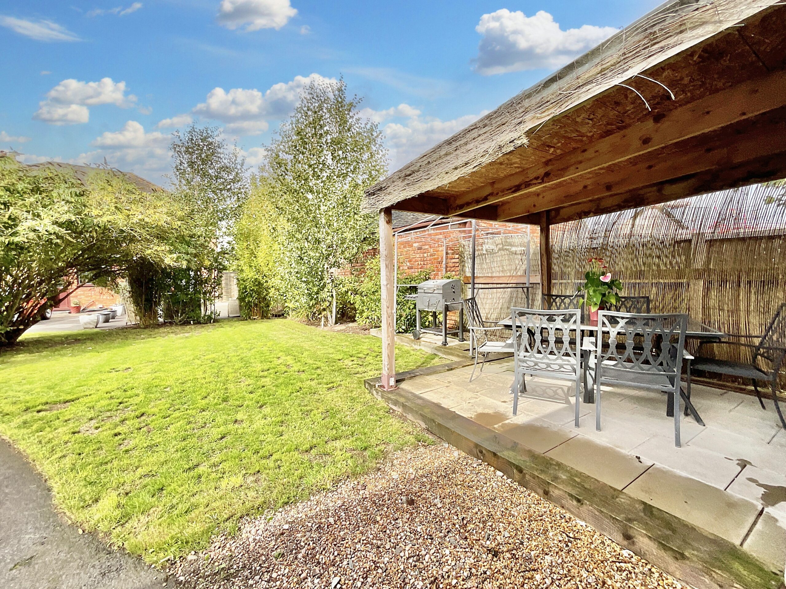 The driveway can house several vehicles along with a large garage with an electric roller shutter door and to the back of the garden you’ll find a gigantic workshop measuring just under 47 foot long, offering storage galore for a collection of vehicles or to tinker for hours with a hobby or creative pursuit, the most perfect workshop with power and water. The rear garden is complimented further with a decked area for evening barbeques, or space for the little ones or furry friends to enjoy with gardens that wrap all around the house.