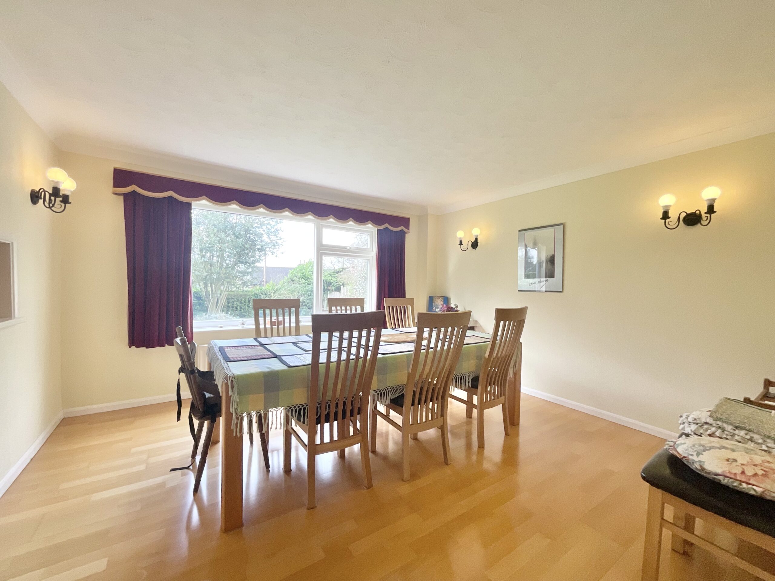 The dining room is another generously sized reception room, comfortably accommodating a dining table for eight along with additional furniture, making it ideal for both formal occasions and everyday meals.