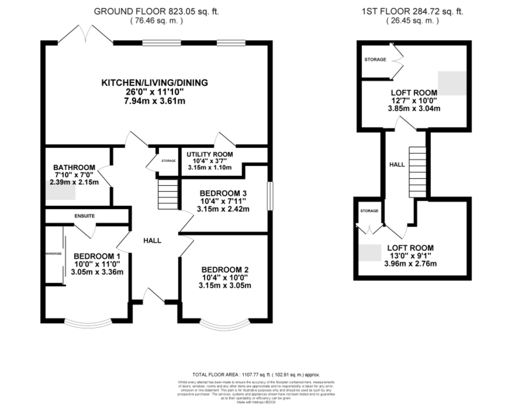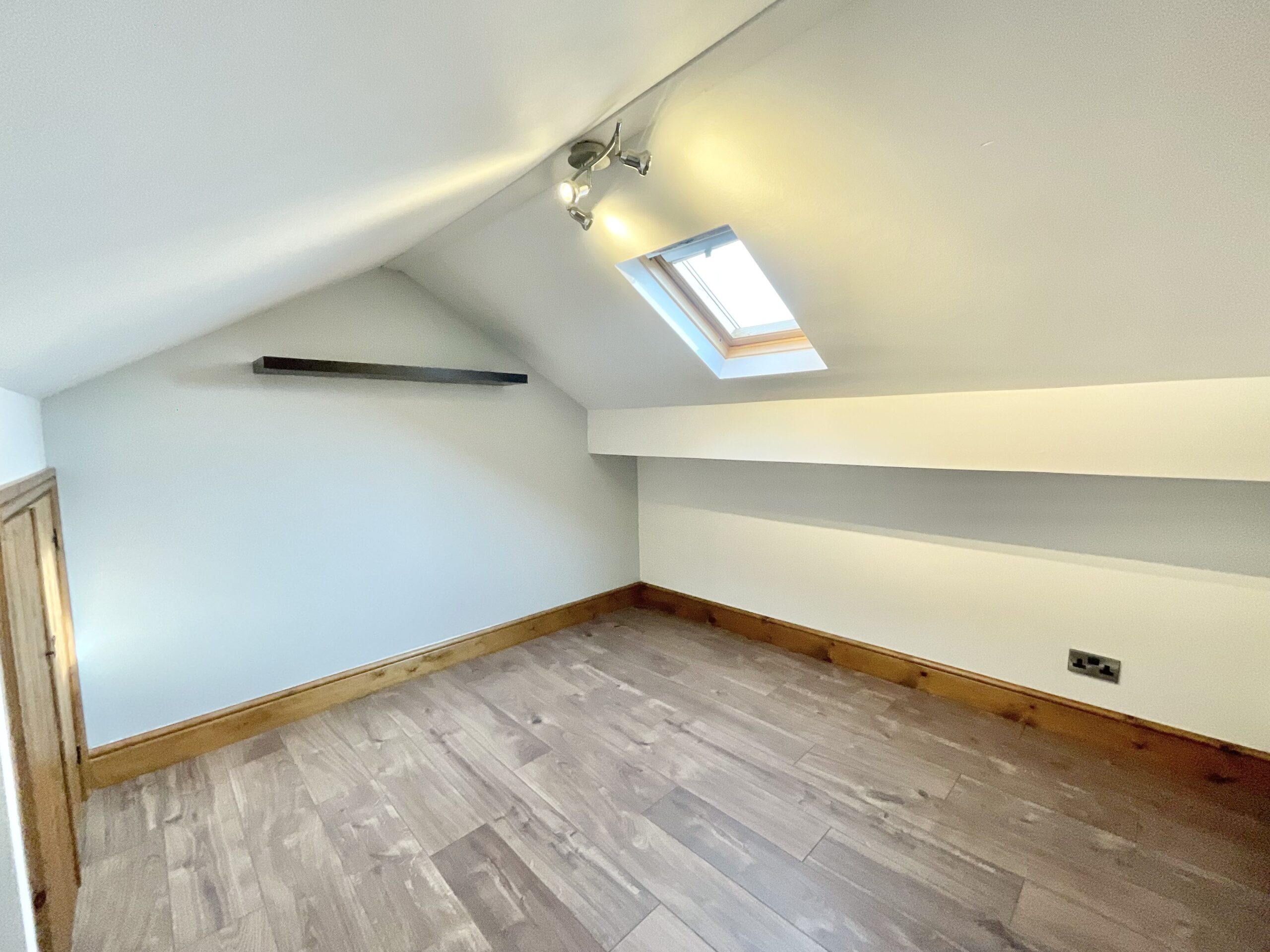 The beating heart of this home begins with its stunning open-plan kitchen/living/dining space, with herringbone flooring, boasting a stunning L-shaped neutral shaker-style kitchen, integrated appliances, a peninsula island, separate utility to the side and a breakfast bar. The living space offers a bright picture window and glazed French doors to the garden, along with a fitted media wall with built-in storage spaces, lighting, and an electric fire. The ground floor features three bedrooms, including a master bedroom with fitted wardrobes and an en suite shower room, a second double, and a further single. Making perfect space for growing families, anyone wanting a touch of extra space, and an office/playroom/dressing room. The family bathroom boasts a sleek freestanding double-ended bath, separate rainfall shower, skylight, sink, and W/C. Upstairs you will find two generously sized loft rooms that provide a range of versatility, whether you want a cinema/games room, dressing room, additional home office, or simply a snug space to relax.