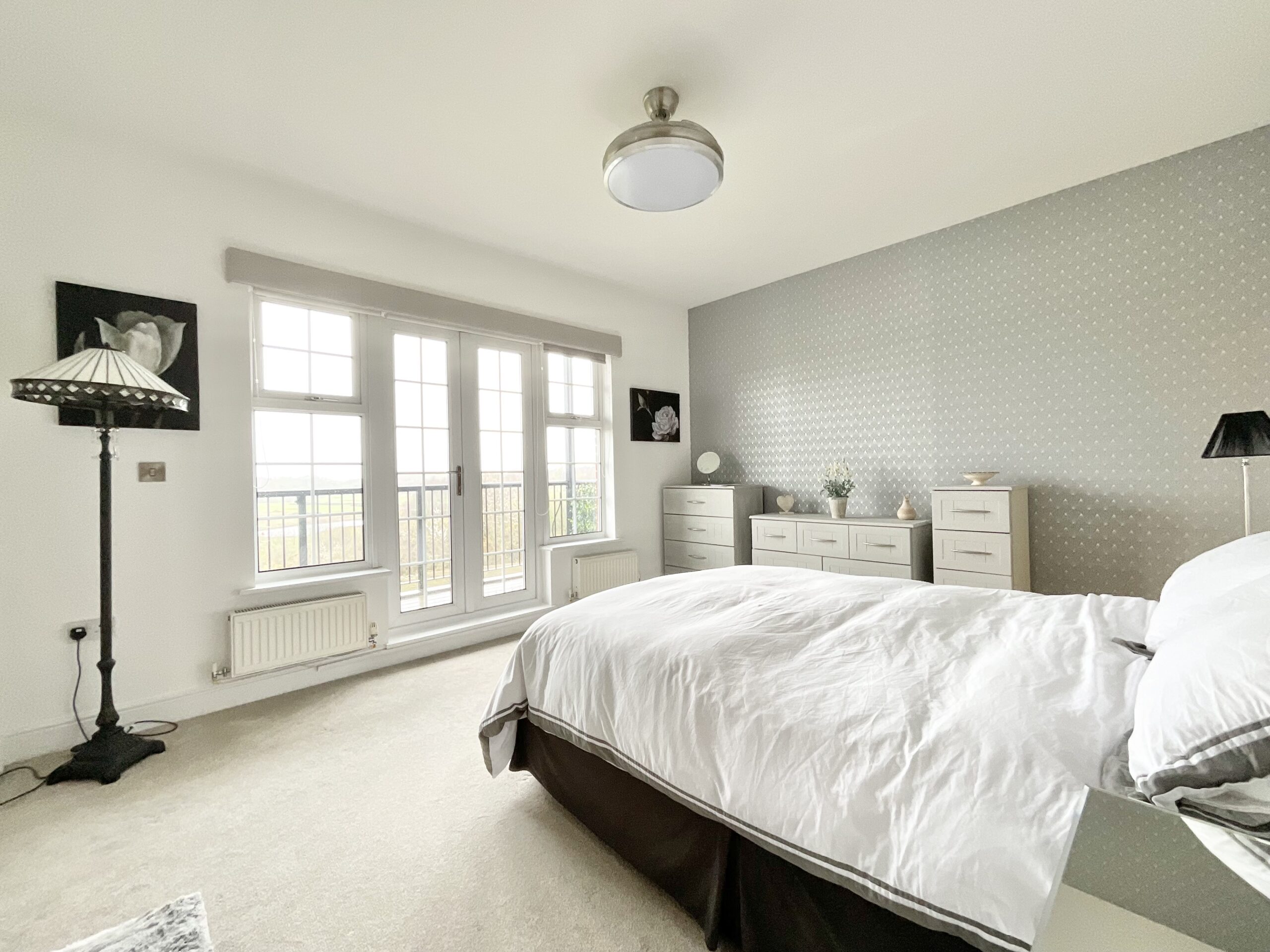 The master bedroom is a true retreat, complete with its own private balcony, a luxurious ensuite bathroom, and ample built-in storage. Two further well-appointed bedrooms offer flexibility for family, guests, or a home office, and they are served by a contemporary family bathroom fitted with high-quality fixtures and fittings.