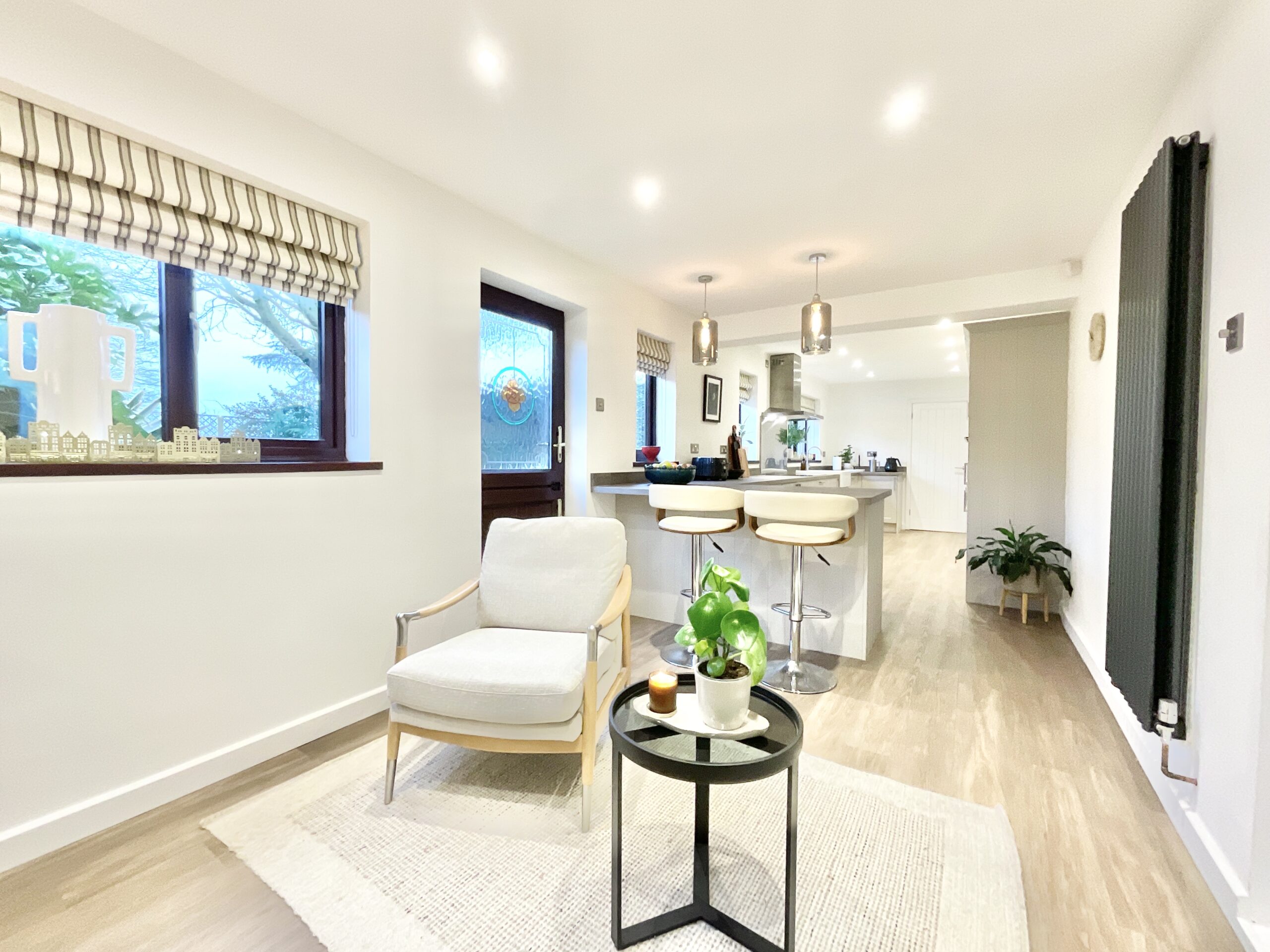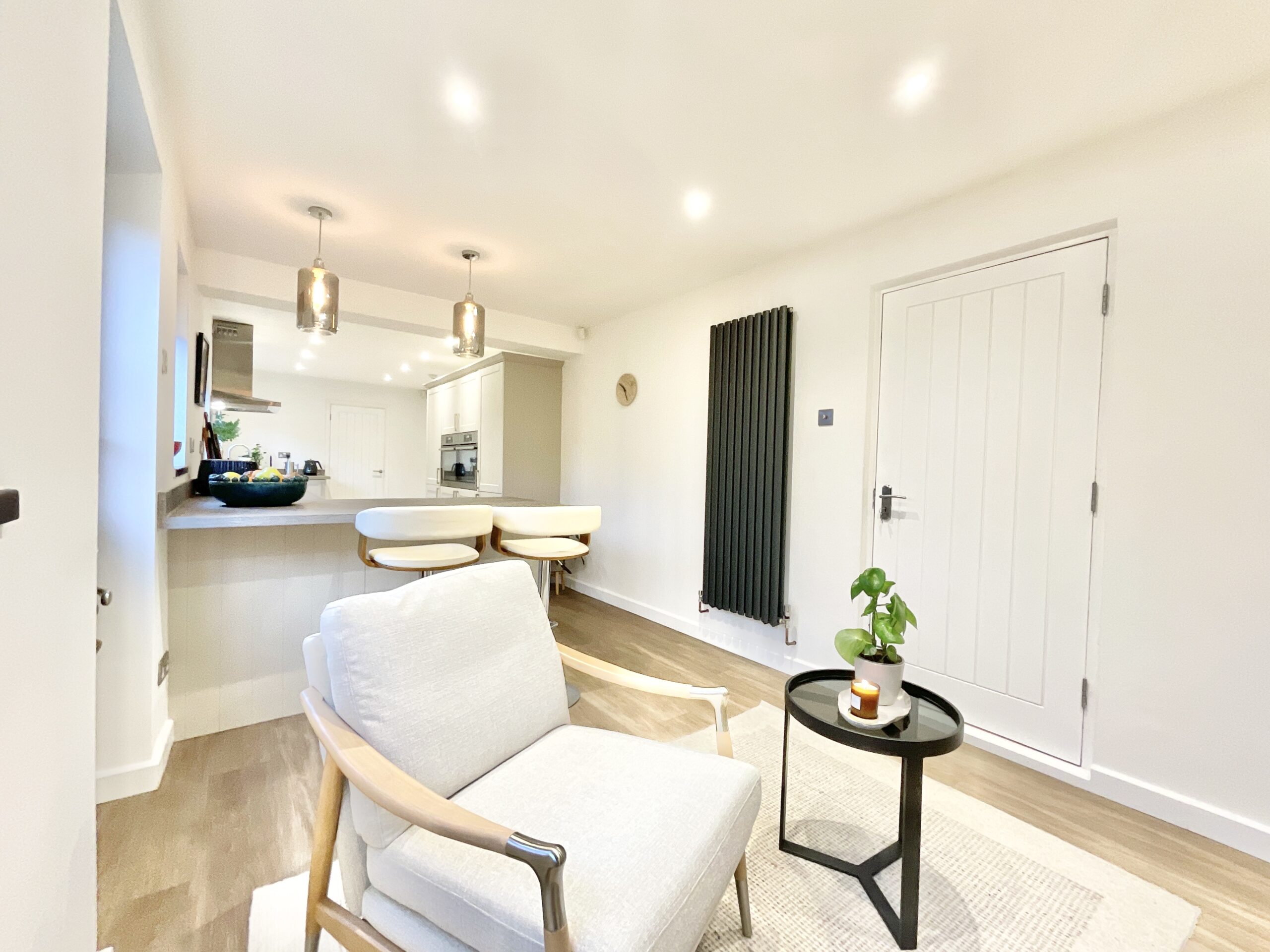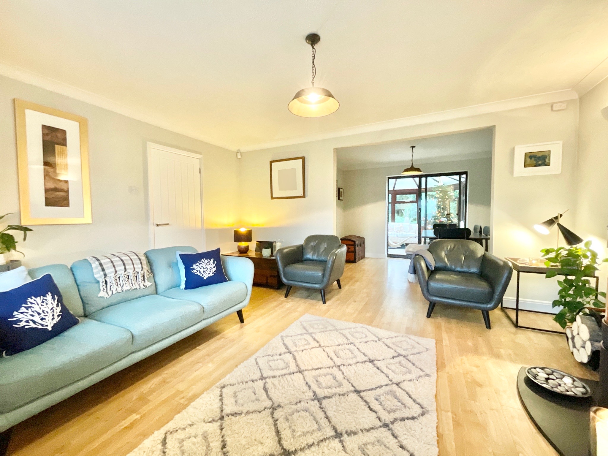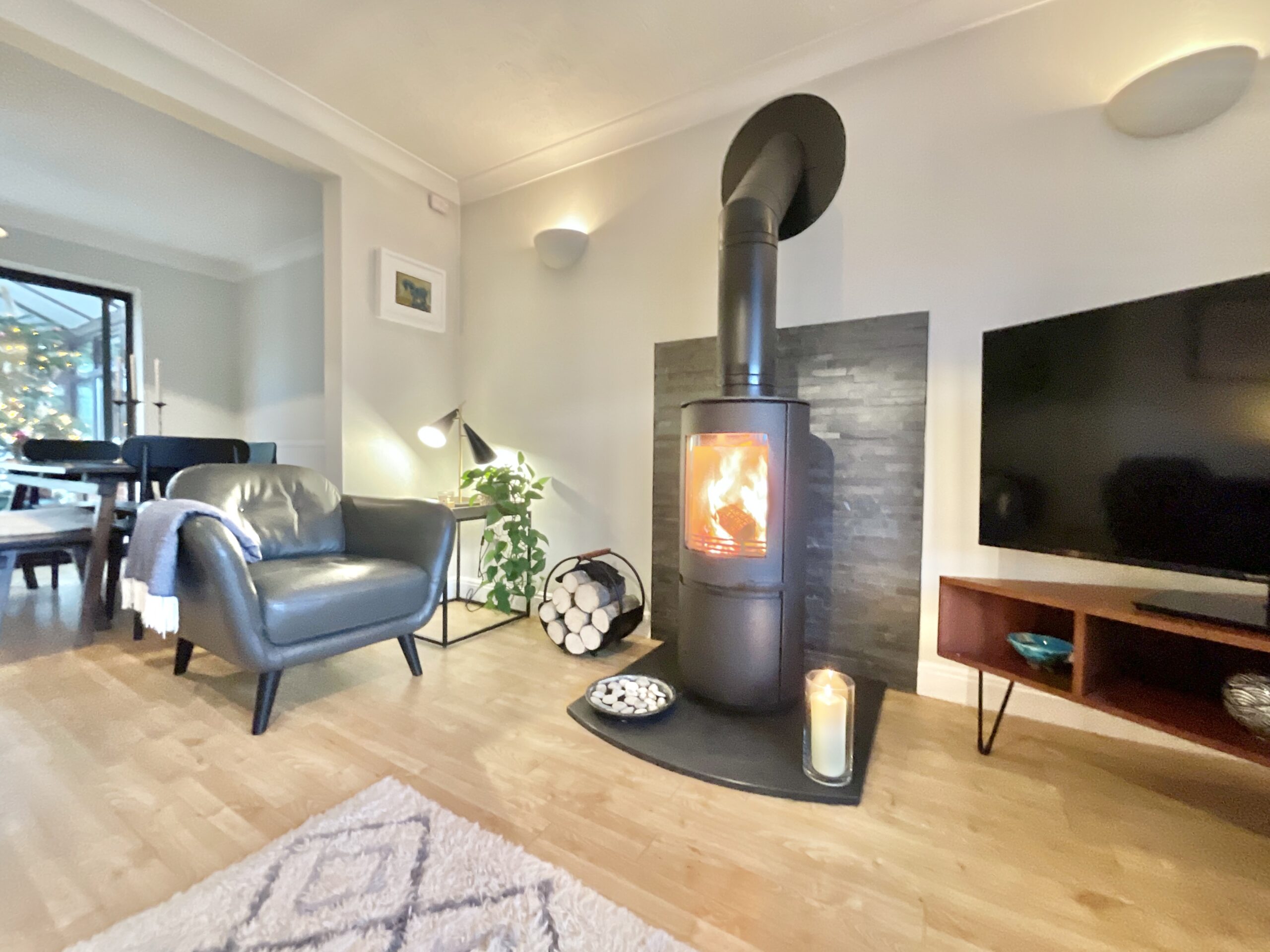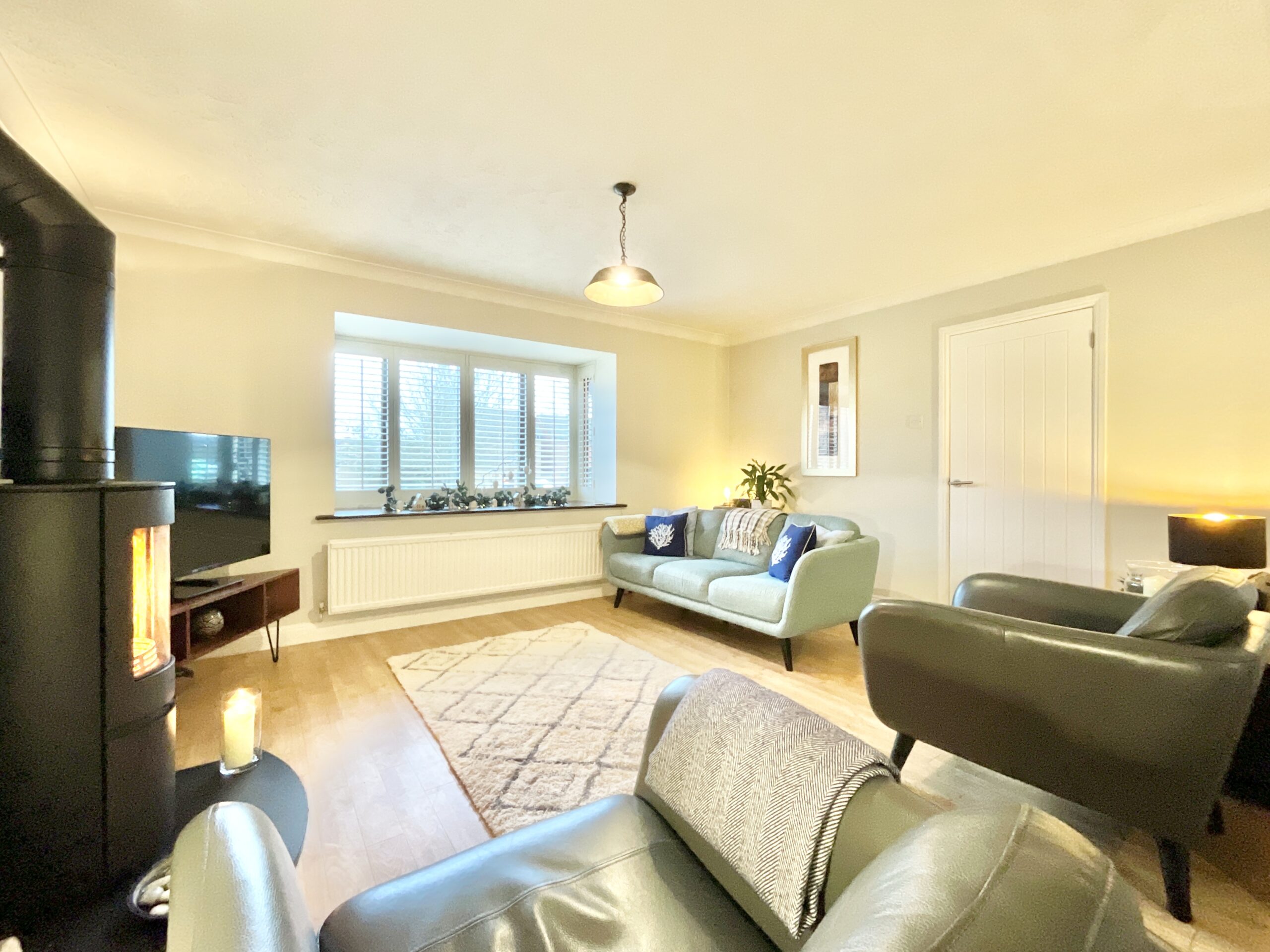 Roll the opening credits as you step through the front door into a welcoming entrance hall, complete with access to the ground floor reception rooms and a handy cloakroom. The home stars three generous reception rooms, each bathed in natural light and finished with a modern aesthetic. The kitchen is undoubtedly the main feature film, sleek contemporary units, integrated AEG appliances, breakfast bar seating and large windows create a bright, sociable hub where all the action happens. Flowing seamlessly into the living and dining area, this scene is set with elegant flooring, a high-quality wood-burning stove and a beautiful bay window, perfect for cosy nights in or hosting your own premiere parties. The conservatory extends the storyline, offering the ideal morning coffee spot with tranquil garden views.