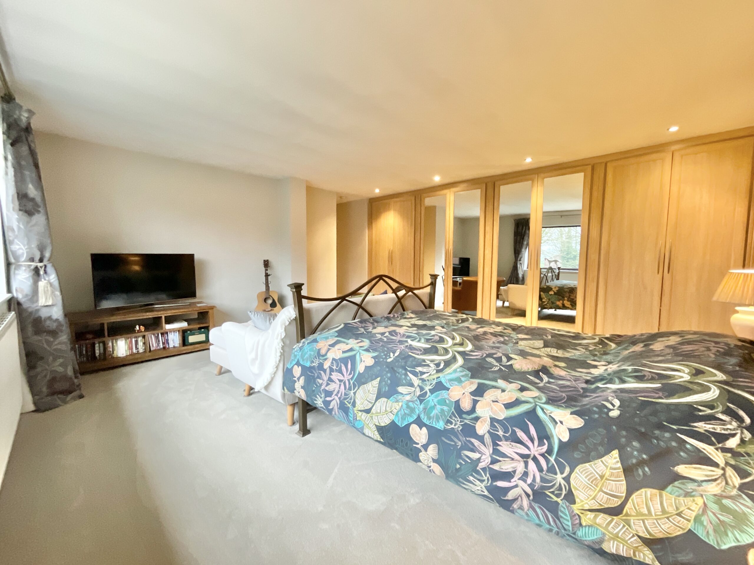 Upstairs, the plot thickens. Five well-proportioned double bedrooms and three bathrooms provide plenty of space for the whole cast. Each bedroom is thoughtfully designed, featuring plush carpets or wooden flooring and generous windows. The master suite steals the spotlight, expansive in size with a hidden en-suite tucked discreetly behind wardrobe doors. Here you’ll find a freestanding bath, walk-in shower, WC and sink, a true spa-style finale. Bedroom two enjoys its own en-suite, while the family bathroom supports the rest of the ensemble.