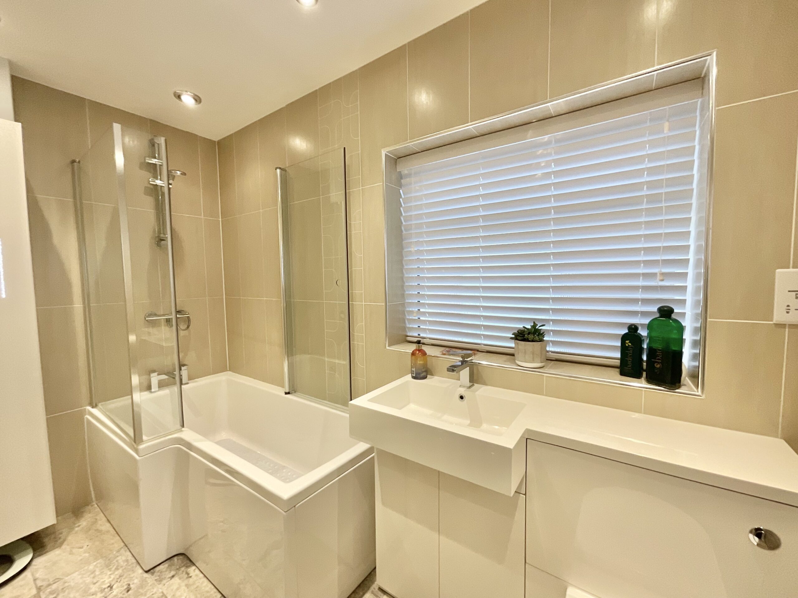 With accommodation which includes a useful entrance porch opening into the reception hallway which in turn leads you to all the ground floor accommodation and stairs lead to the first floor. The living room offers a light bright room with both front and side facing windows, a period style fire surround with inset coal effect gas living flame fire just perfect for cosying up on chilly evenings or throwing open the glazed French doors to the dining area where there is a further set of French doors taking you to the garden. The contemporary open plan living and dining kitchen is finished with cream shaker style units, with complimentary worktops and tiled splashbacks space suitable for a range style cooker, built in dishwasher with an on-trend colour block contrasting bank of cupboards housing the integrated full height fridge, full height freezer and further storage. Also on the ground floor is a versatile room which offers a third bedroom, or further snug/home office/playroom, a stylish bathroom fitted with L-shaped bath and shower over, vanity wash hand basin with storage beneath and concealed cistern W.C, and a useful utility room. On the first floor are two generous double bedrooms with built in wardrobes/store and useful W.C.