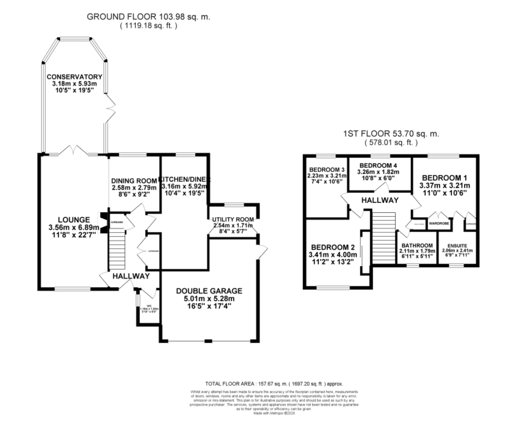 There’s no point in staying grounded, embrace a steady change and expand your roots to this wonderful and impressive four bedroom detached house offering generous and flexible accommodation, with room to grown your family tree. Brookside will help you make that big decision about branching out to look for that “forever home” when you realised the possibilities that this incredible home has to offer you. The property welcomes you with a bright and inviting entryway featuring elegant wooden flooring and a modern staircase with a glass balustrade. To the left you’ll find the capacious lounge with a feature bow window and fireplace, a semi open plan layout that flows into the dining area, tucked right around the corner. Whilst the feature fireplace with a wood burning stove provides a cosy focal point, French doors lead directly into a bright conservatory which forms a tranquil extension of the living space and offers a seamless connection to the beautifully maintained garden, connecting all three reception rooms, ideal for warm summer evenings when you want to spill out to capture the last snippet of sunshine. Next door to the dining area is a modern kitchen/breakfast room which is fitted with stylish cabinetry, integrated appliances which include a fridge, Bosch dishwasher, double oven and hob, complemented by ample countertop space and an adjacent dining area ideal for family meals or entertaining guests. To compliment this space there is a separate utility room with extra storage space and a place to fit your washing machine and tumble dryer.