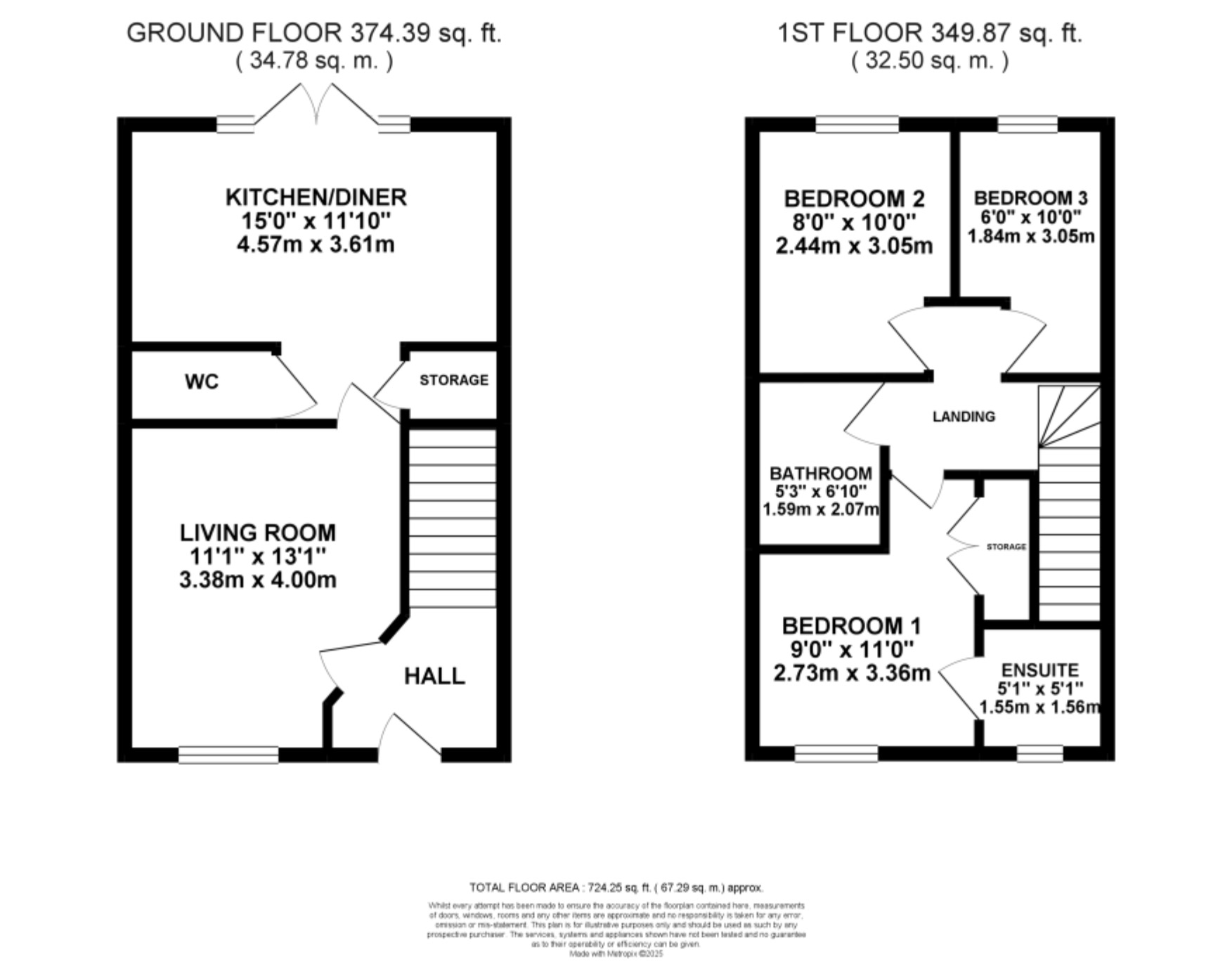 - Three spacious bedrooms including a master with fitted wardrobe and en suite, and a family bathroom with a bath/shower, sink, and W/C.