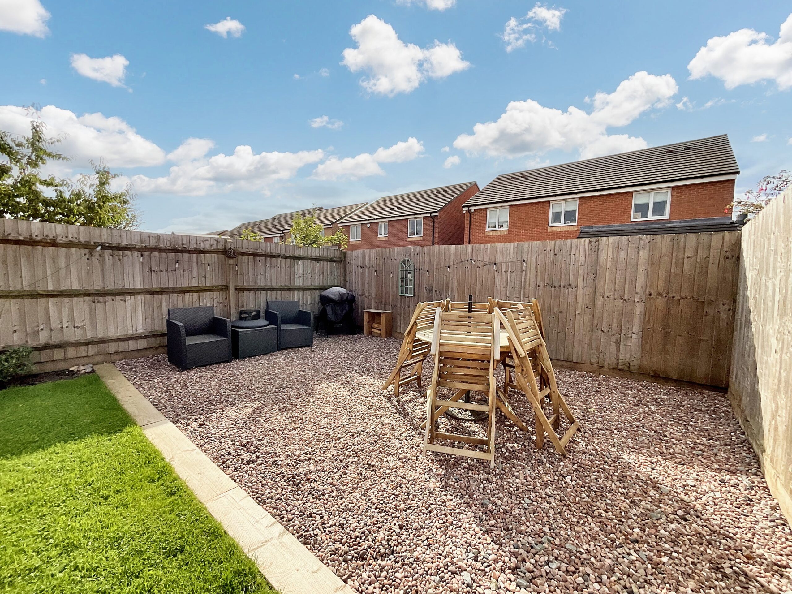 - South-West facing rear garden with both patio and gravelled seating space and a lush grass lawn.