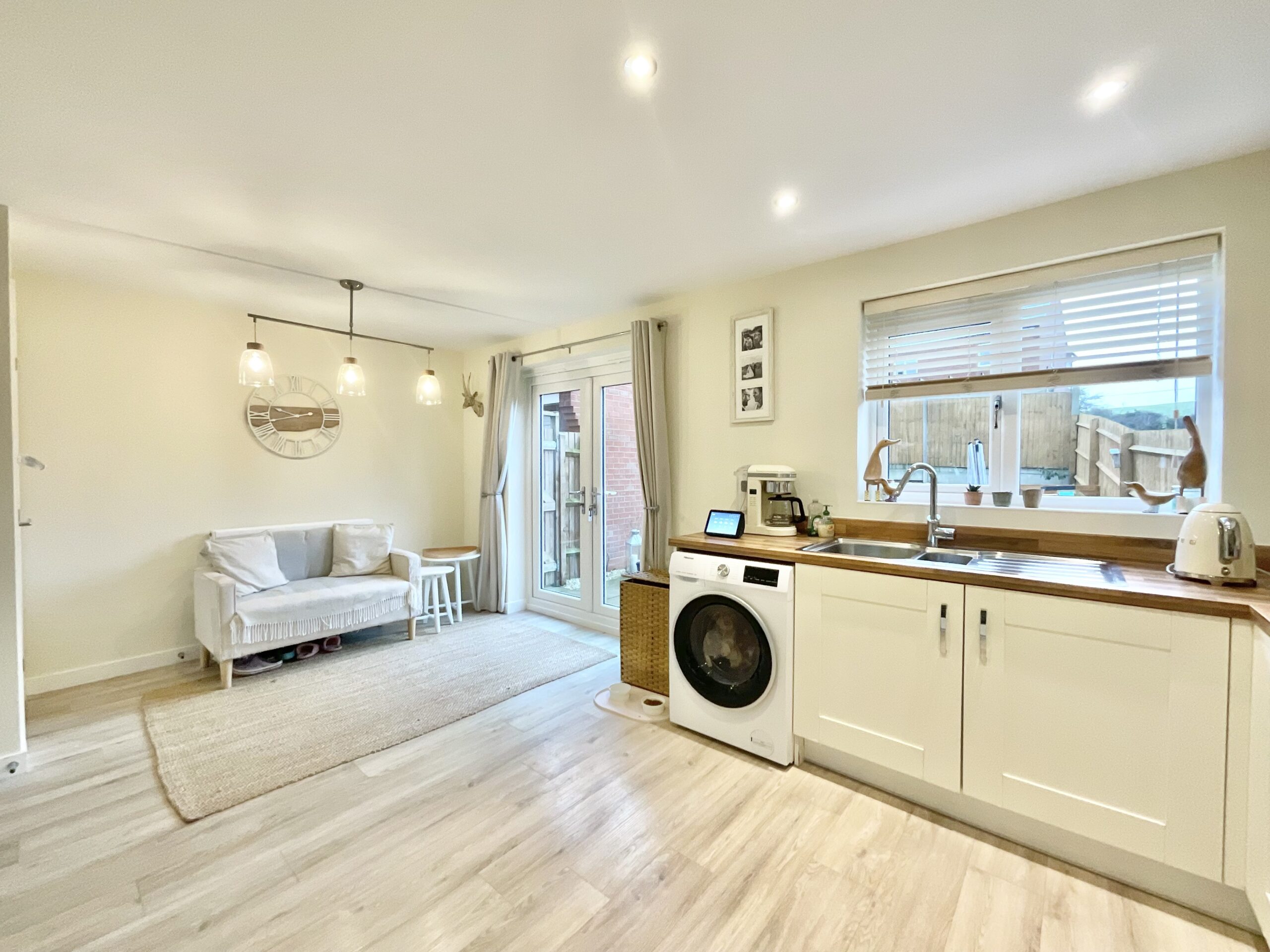 - Welcoming living room with plenty of space to relax plus an open-plan kitchen/diner with practical U-shaped shaker-style kitchen and dining area.