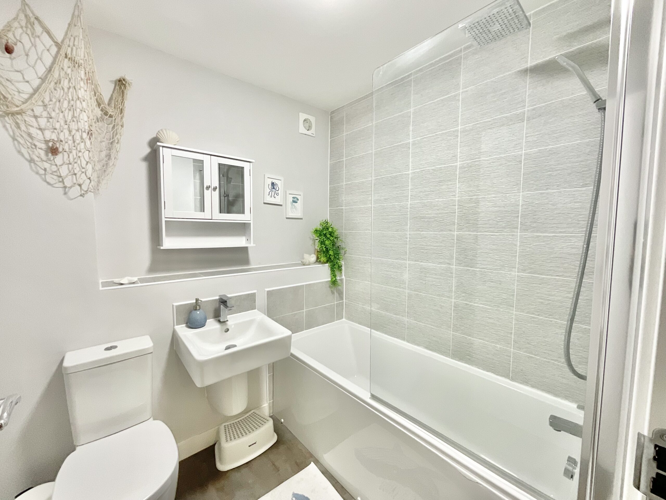 Upstairs is home to three generously sized bedrooms including a master with fitted wardrobes and a modern en suite shower room. The family bathroom is the ideal spot to relax with a bath/shower duo, sink, and W/C.