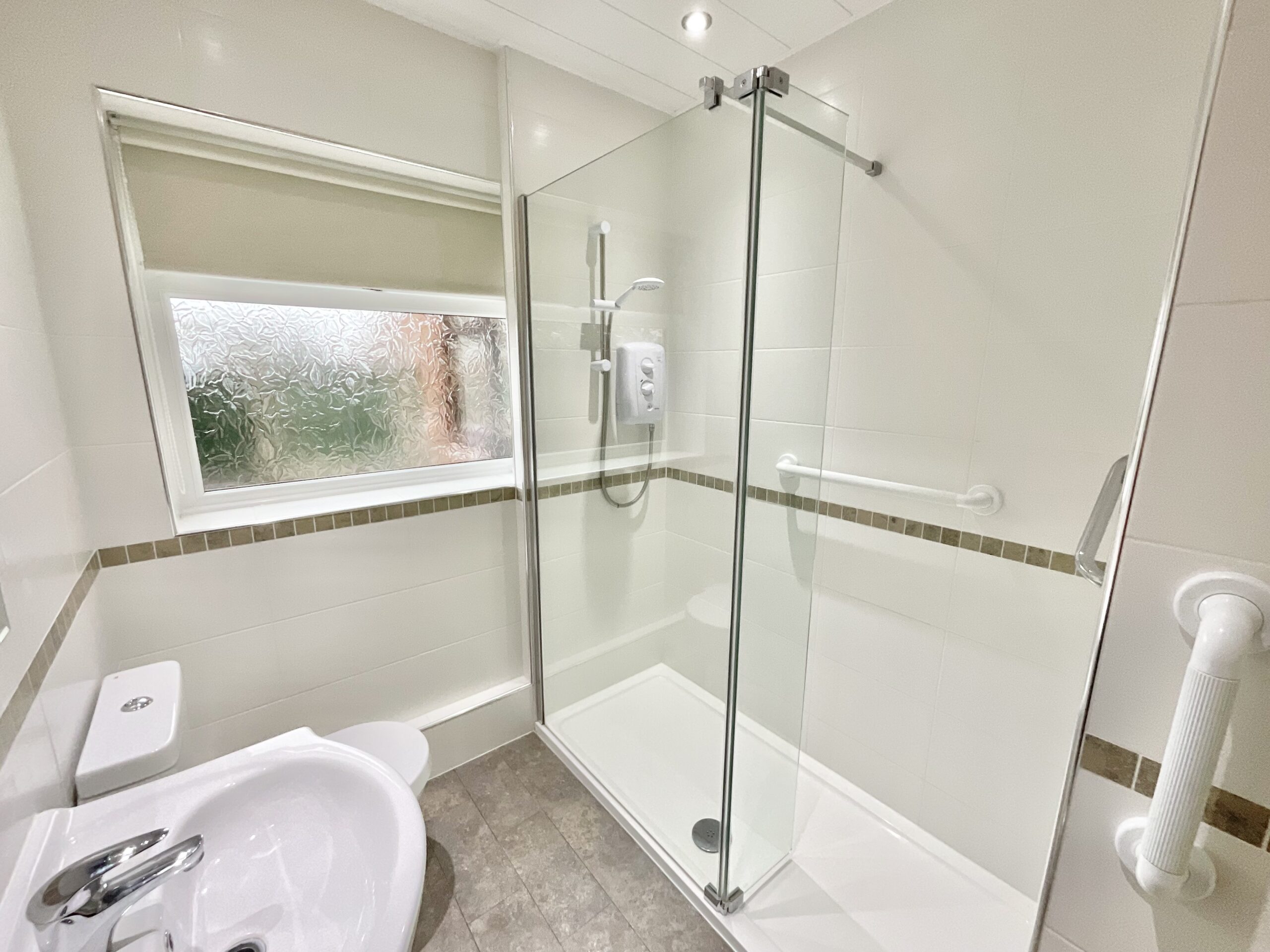 - Upgraded shower room with spacious walk-in shower, additional grab rails, a wash-hand basin and W/C.