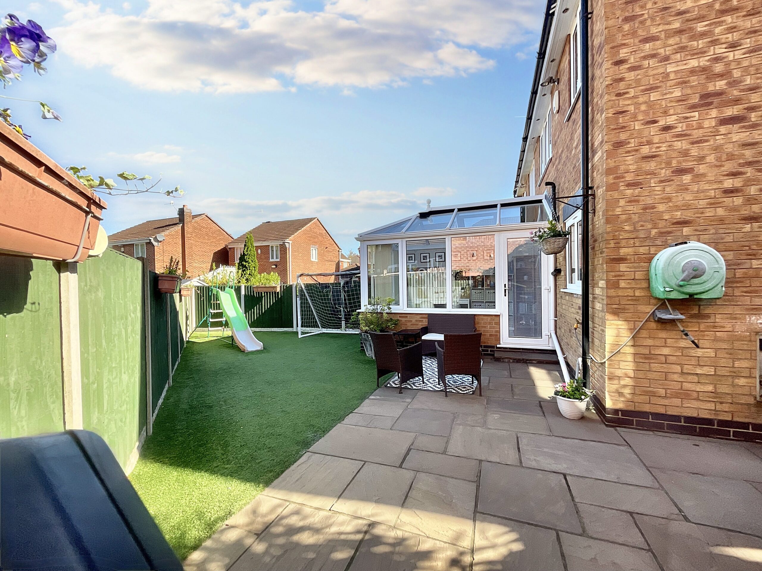 4. The rear garden is low maintenance with artificial grass and side access, making it easy to enjoy.