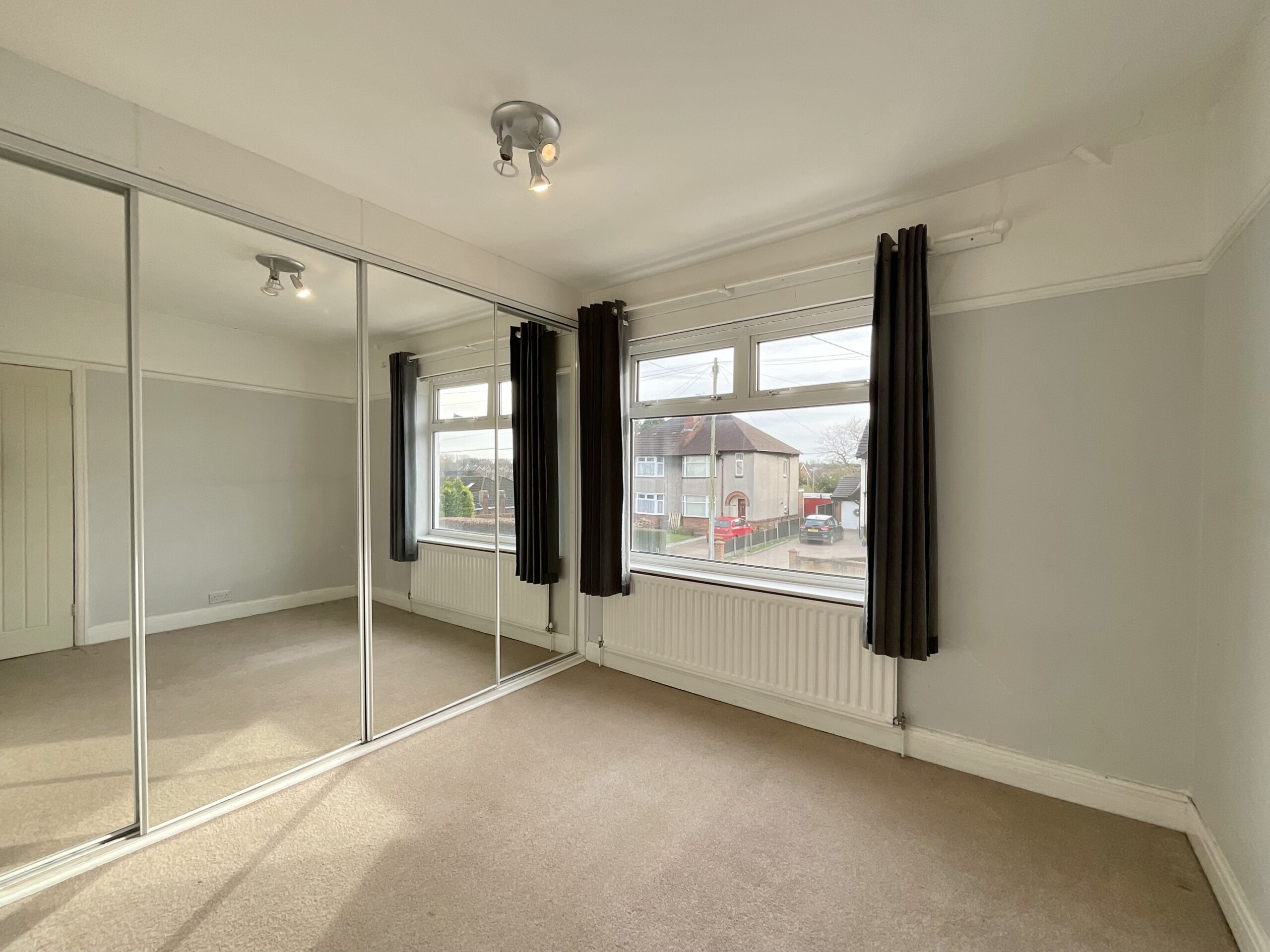 Upstairs, bedroom one is a spacious double featuring striking open views across fields to the rear—an idyllic backdrop to start and end your day. Bedroom two is another well-proportioned double, complete with built-in wardrobes spanning one wall for excellent storage. Bedroom three is also a double room, offering flexibility for use as a guest bedroom, nursery, or additional workspace.