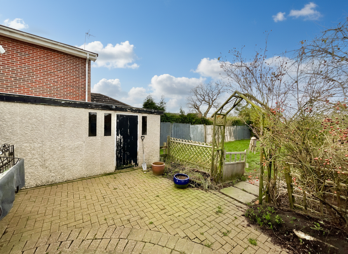 - Externally, the home benefits from a rear garden with patio and lawn, a useful workshop, and a driveway with parking for at least four cars.