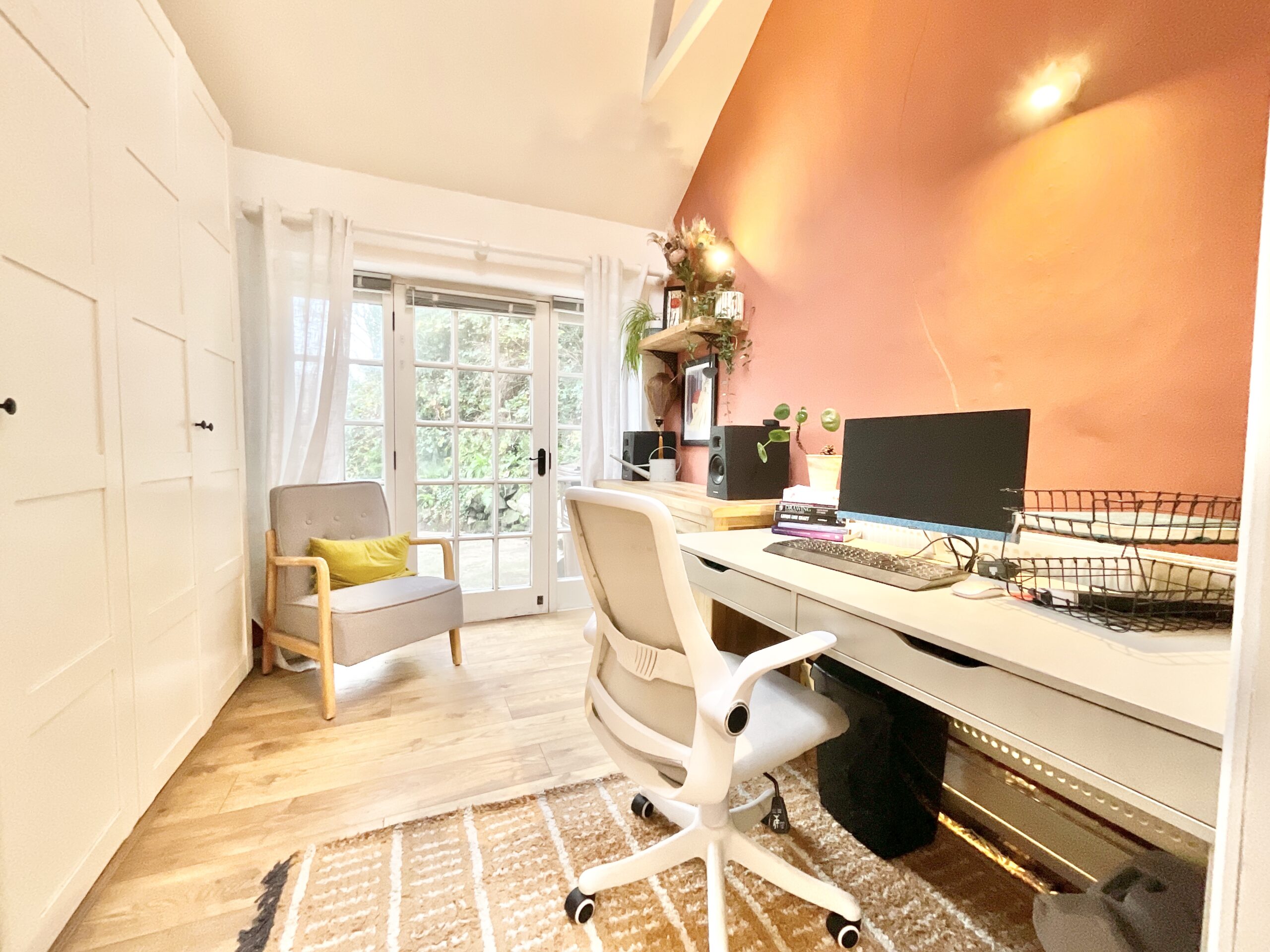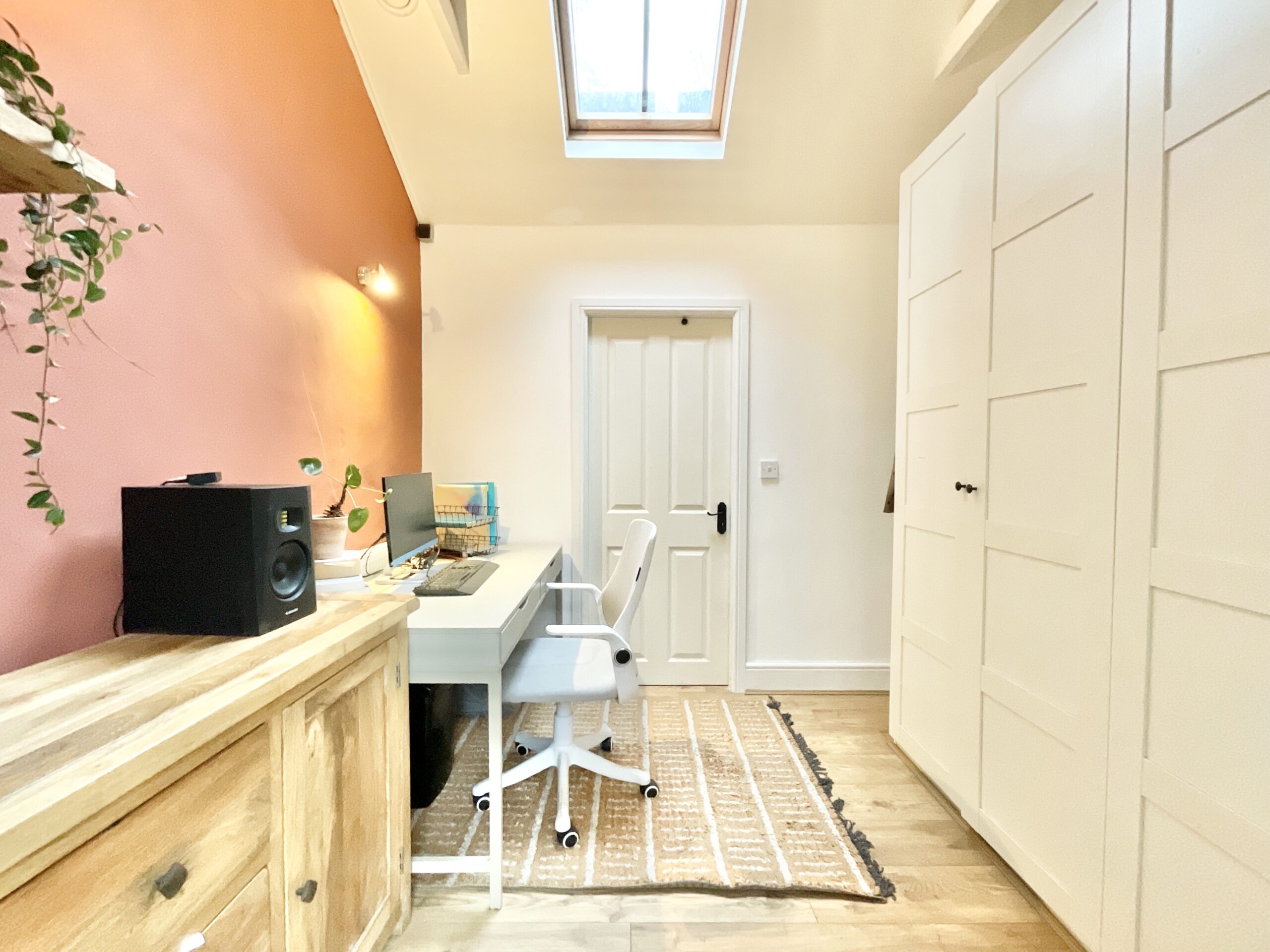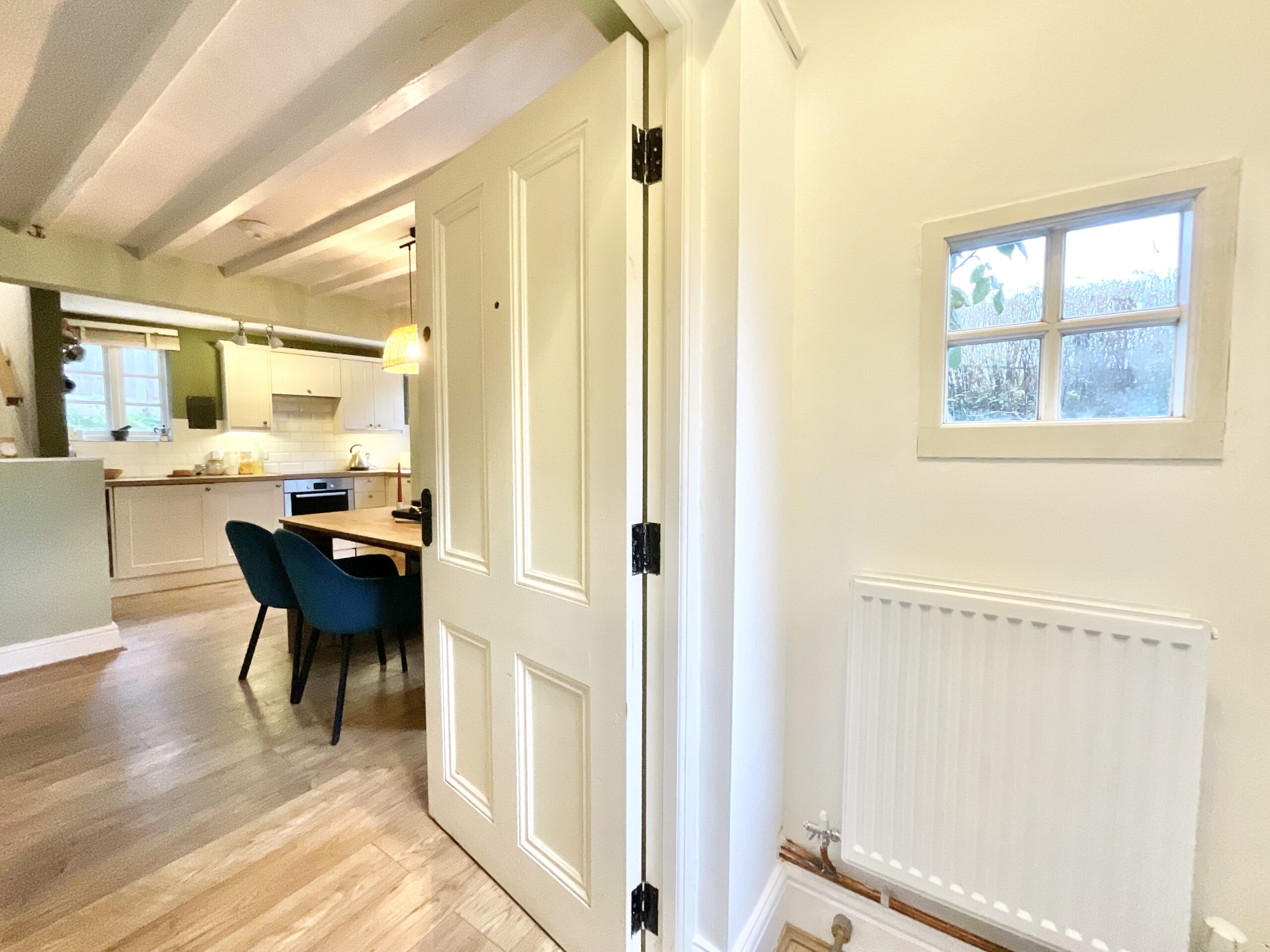 Open the front door and step into a warm, welcoming narrative where exposed beams, wooden floors and period touches harmonise with contemporary finishes. The open-plan kitchen/living/dining area is anchored by a wood-burning stove, the true heart of the home, perfect for cosy evenings and timeless memories. Thoughtful built-in shelving and clever storage solutions appear throughout like helpful woodland guides. The modern kitchen, with its sleek cabinetry and integrated appliances, offers a delightful dining nook beneath rustic beams, ideal for family feasts or gatherings worthy of a fairy-tale banquet. A spacious utility room/workshop and a handy cloakroom keep daily life organised, while a dedicated office, flooded with natural light and offering access to the front garden, provides a productive hideaway for work or creativity.