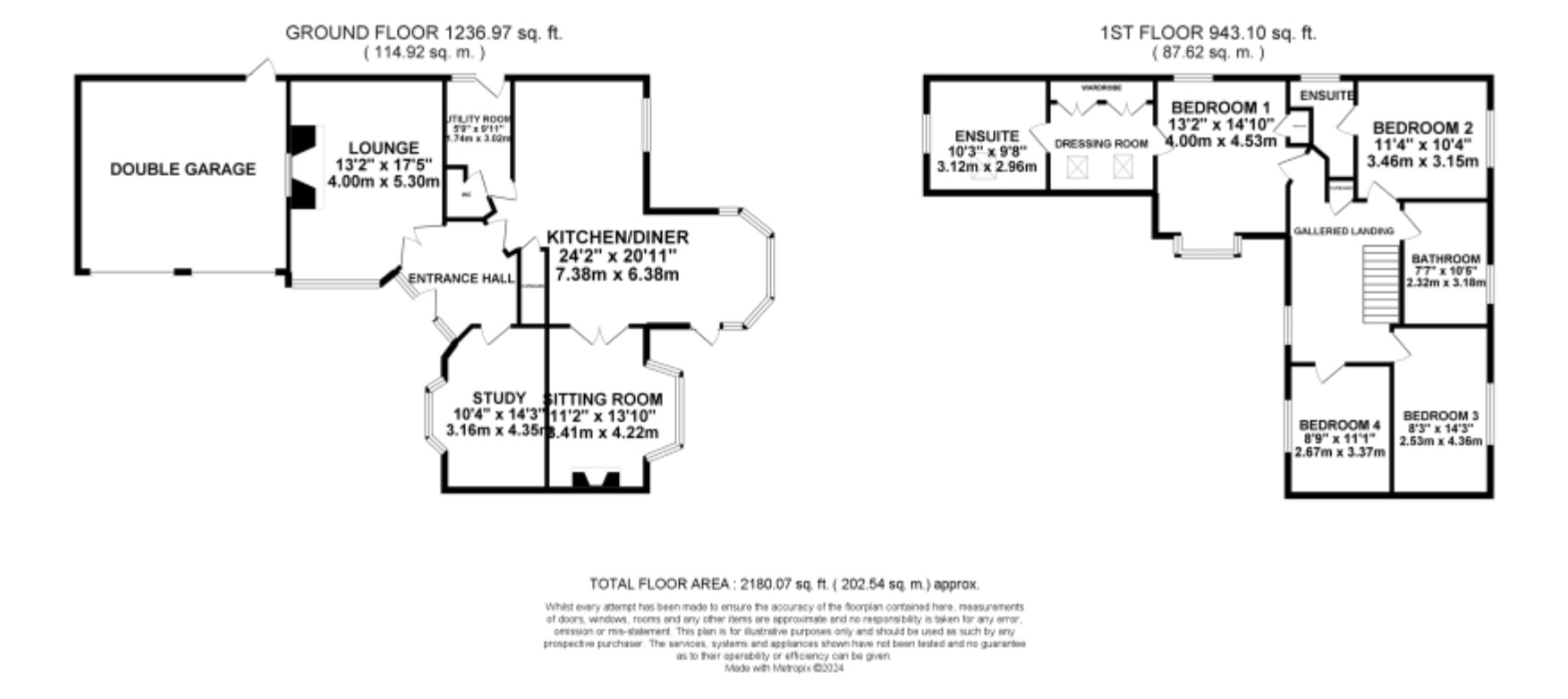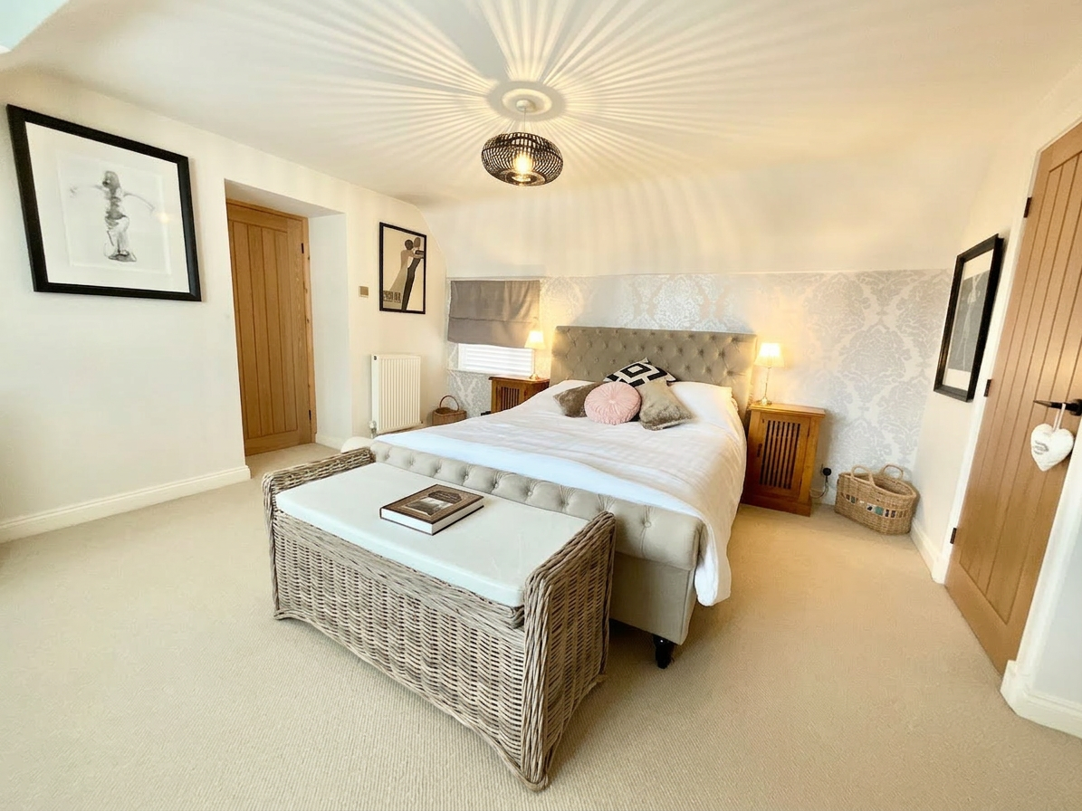 Upstairs, the property continues to impress with four double bedrooms, two of which benefit from en-suite facilities. The principal bedroom is a true retreat, featuring a private walk-through dressing room that leads to a luxurious en-suite bathroom, beautifully appointed with a roll-top bath and separate shower – a standout feature that adds a touch of indulgence to everyday living. The remaining bedrooms are served by a large family bathroom equipped with both bath and shower, designed with both style and practicality in mind.