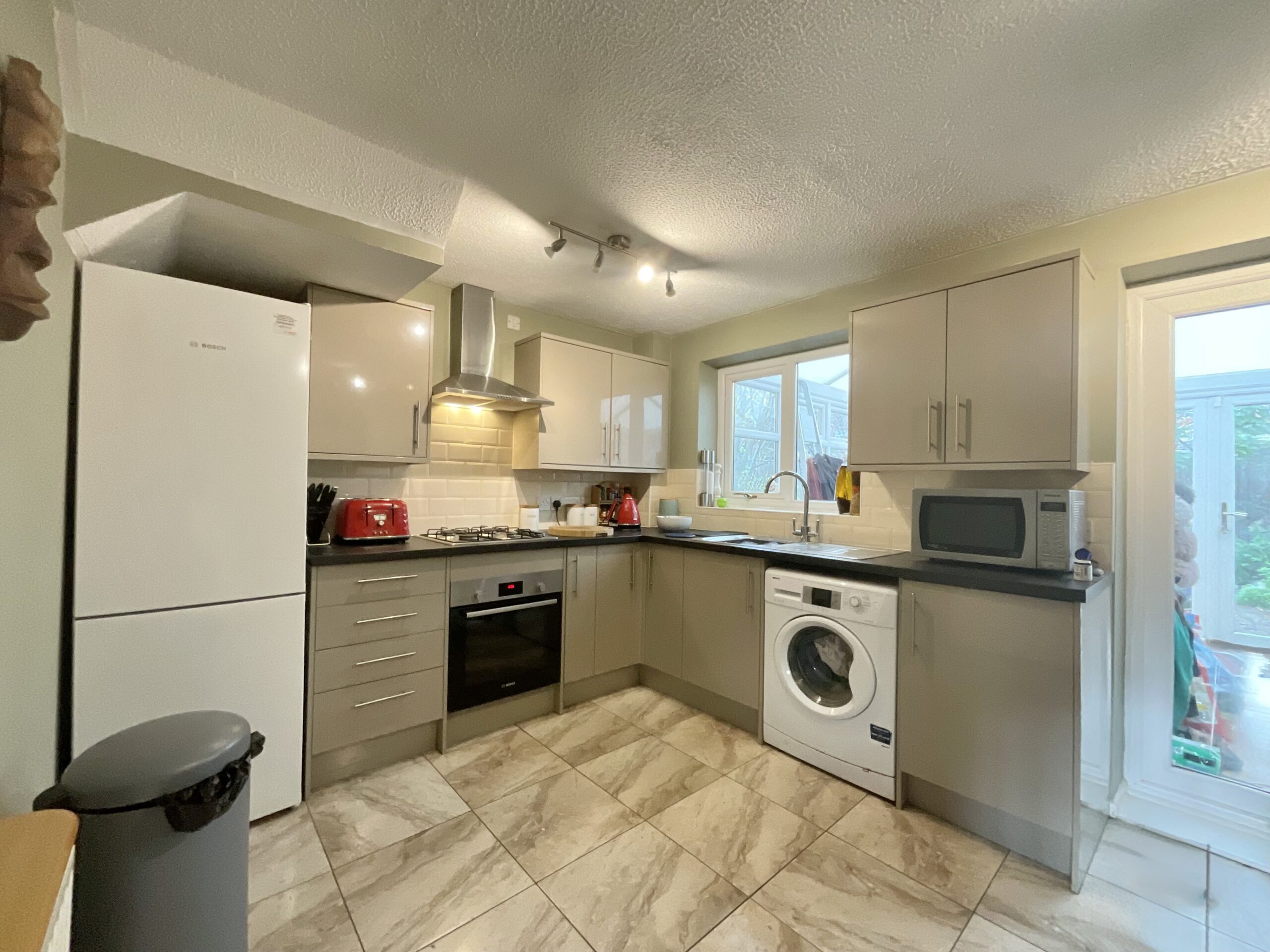 The cosy living room features an attractive fireplace that enhances the warm, inviting feel of the space, with useful understairs storage to keep everyday items neatly tucked away. The contemporary kitchen/diner boasts a modern design, complete with an integrated gas hob and oven, along with space for a washing machine and fridge/freezer. There is ample room for a dining table, creating the perfect setting for family meals or socialising with friends.