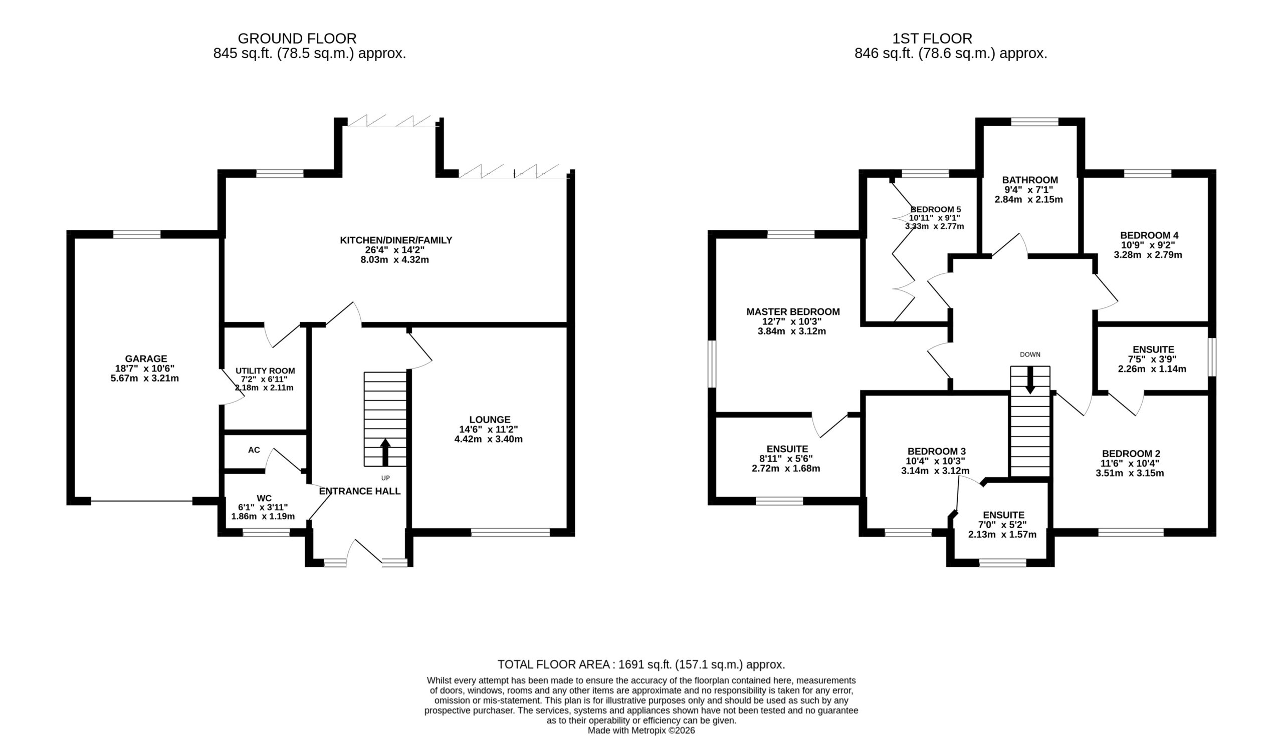2. Five well-proportioned bedrooms, three benefiting from stylish en-suite shower rooms, perfect for families or multi-generational living