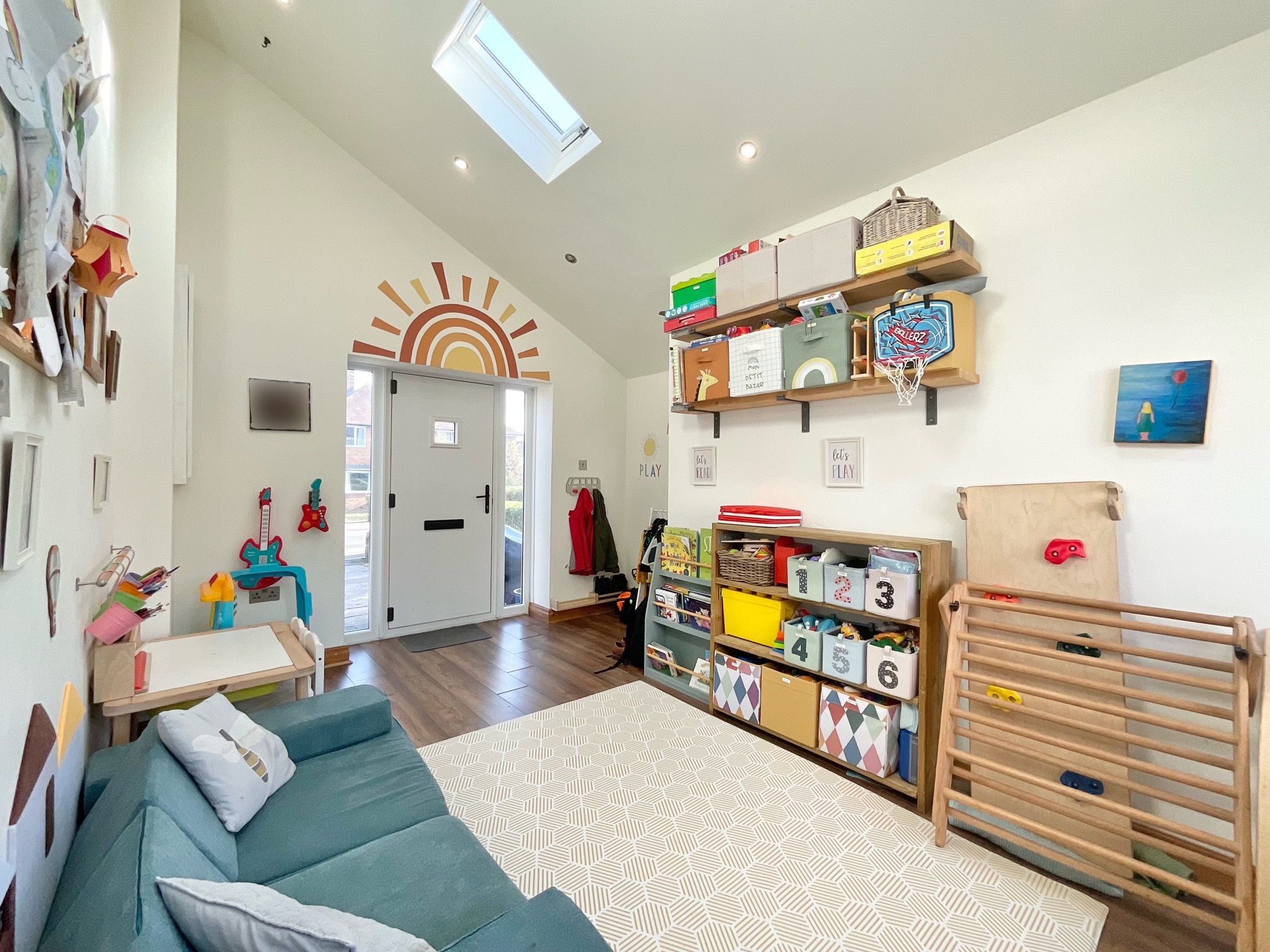 - Versatile living space with multiple reception rooms including a living room, and playroom/family room.