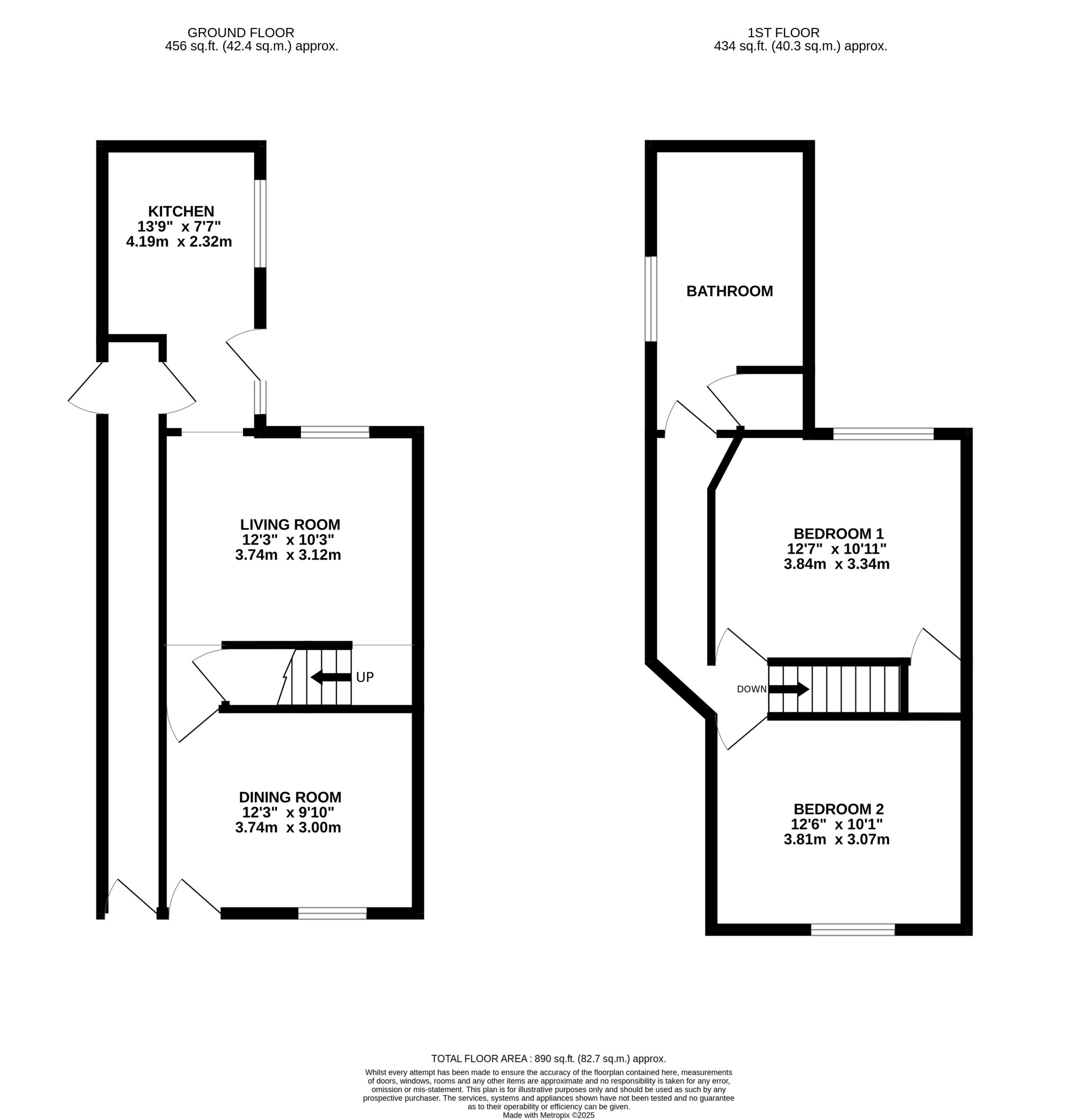 Upstairs, the first bedroom is a comfortable double with ample room for wardrobes and a dressing table, along with the added benefit of a small built-in storage closet. The second bedroom is also a well-proportioned double, offering flexibility for use as a guest room, home office, or second bedroom. The bathroom is generously sized and fitted with a bath and a dual-shower system, including a rain shower, creating a relaxing and modern space.