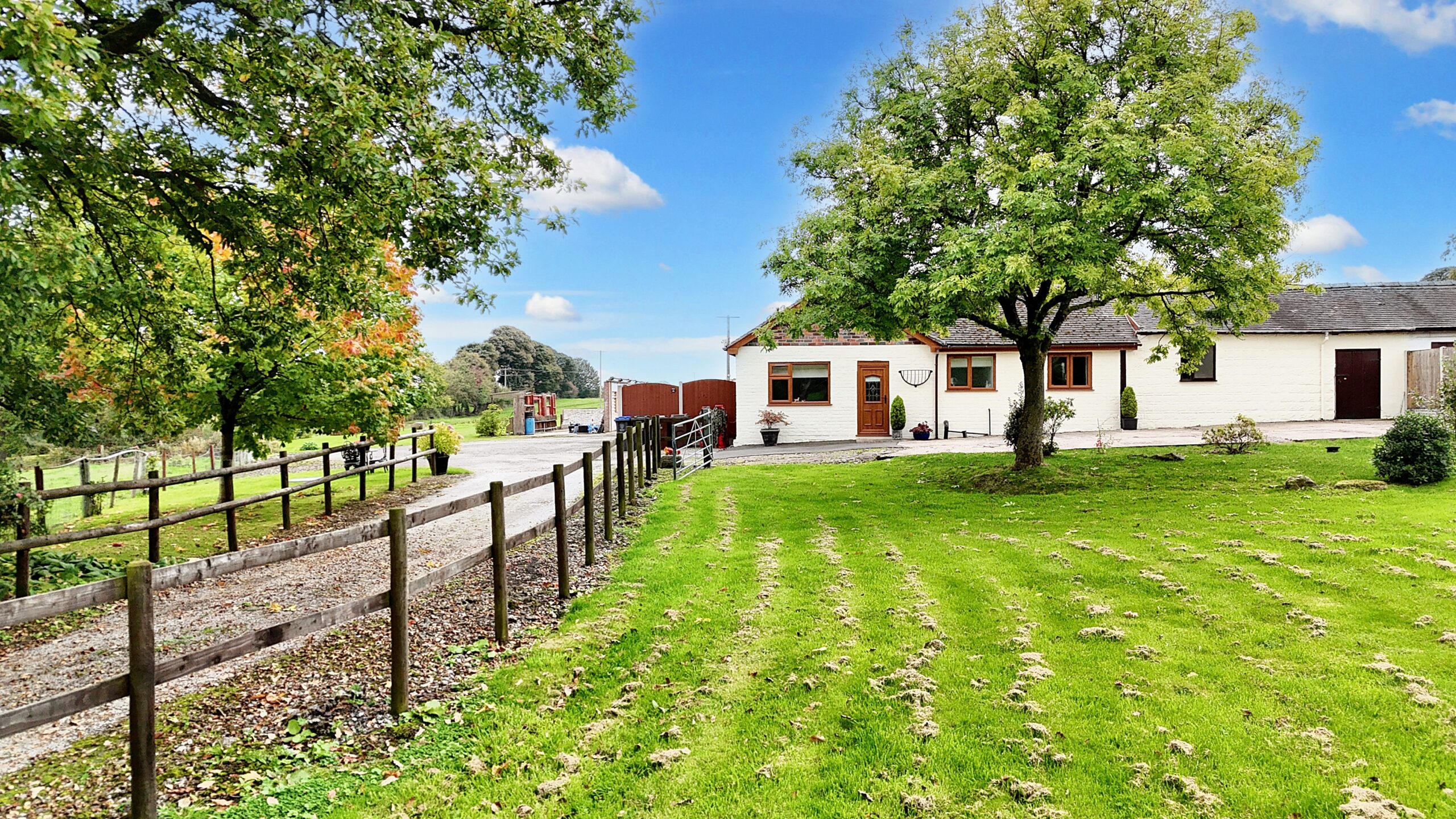 Welcome to Owls Hoot Barn, a beautifully crafted barn conversion approached by a long, sweeping driveway and set within 26 acres of glorious countryside. To the front lies a paddock where horses or animals can thrive, and to the side, a tranquil pond glistens in the sunlight. Beyond the house, open fields stretch away, alive with the gentle rustle of wildlife. True to its name, owls call at dusk and pheasants wander the hedgerows, creating a rare opportunity to live in perfect harmony with nature. Nestled on the outskirts of the desirable village of Consall, within Wetley Rocks, this property benefits from a charming rural setting surrounded by outstanding natural beauty. The area is home to the expansive Consall Nature Reserve, a haven for wildlife and outdoor enthusiasts, as well as welcoming country pubs and the renowned Tawny Hotel, which offers scenic lake walks, fine dining, and unique cabin stays. Here you can enjoy a true sense of peace and seclusion, with breathtaking scenery that feels wonderfully remote; yet the vibrant towns of Werrington, Cheadle, and Leek are just a short drive away, offering the perfect balance between countryside tranquillity and modern convenience. The home itself is an individually designed barn conversion, private and secure within its own enclosed garden, edged with colourful borders and paved with Indian stone, perfect for quiet evenings outdoors. Step inside, and you are greeted by tall vaulted ceilings and exposed oak beams, creating a sense of both grandeur and warmth. The open-plan living space has been thoughtfully crafted for both family life and entertaining, with a spacious living-dining area that welcomes you through elegant French doors. Quirky arched windows add character to the frontage, while oak flooring underfoot ties the space together with a cosy, country charm. The kitchen continues this rustic elegance, with classic wooden shaker-style cabinetry paired with sleek grey tiles. Ample storage is thoughtfully built in, alongside an integrated fridge, dishwasher, and space for a cooker. At its heart, a handy island provides extra storage and a welcoming spot to enjoy breakfast while gazing out over the treetops. The hallways leads you to a shower room, with a neutral design, and offering further space for utilities. The master suite is a restful escape, its window framing views of the lush front paddock, while patio doors open directly onto a private seating area, being the perfect place for a morning coffee or an evening glass of wine. A modern en suite offers a shower-over-bath, toilet, and hand basin, blending comfort with convenience. The second bedroom, also a generous double, features soft plush carpets and bright spotlighting. With its own external access, it offers flexibility, whether as a guest room, home office, or even a private hideaway for older children or visiting friends. Step outside, and the magic of Owls Hoot Barn continues to unfold. A large driveway offers practicality for you and guests, with an electric vehicle charging point for convenience, and a metal barn gives you storage options or space for larger vehicles. The tranquil pond mirrors the sky above and beyond, four adjoining fields stretch across 26 acres of open countryside, offering endless possibilities for grazing, recreation, or simply wandering through the peaceful landscape alive with wildlife. Here’s your invitation to discover a rare and wonderful home, an idyllic setting where life can flourish for you and your family.