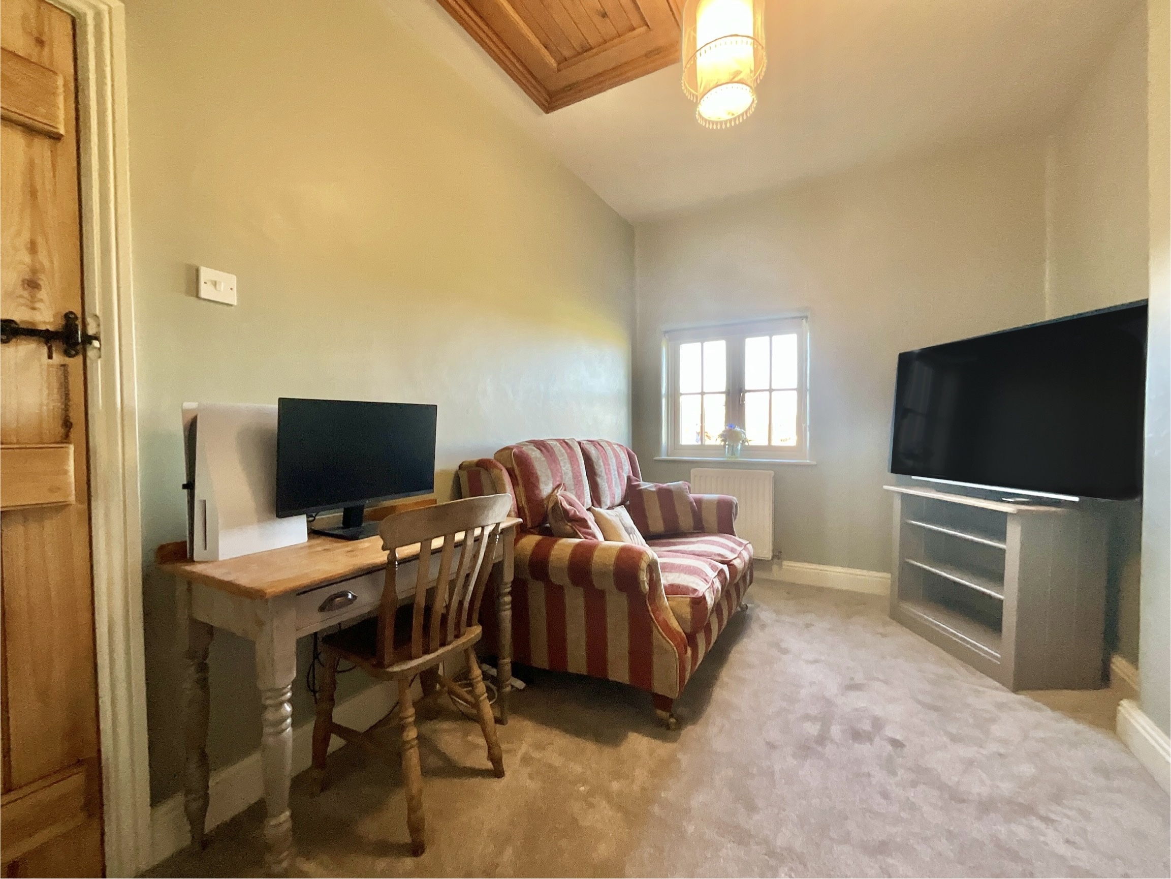 Outside, the grounds continue to impress. The front garden provides both parking and lawn, while the rear garden offers seating areas, open lawn, a sheltered dog pen and a garden room, perfect for working, relaxing or plotting your next royal banquet. An external Belfast sink, along with multiple power and water points, makes outdoor living effortless. To the rear you’ll also find a driveway and a two-storey garage/store, offering storage worthy of any castle treasury. Set in Coppenhall, Castle View Cottage enjoys easy access to excellent amenities, schools and transport links into Stafford, keeping you connected while still feeling delightfully tucked away.