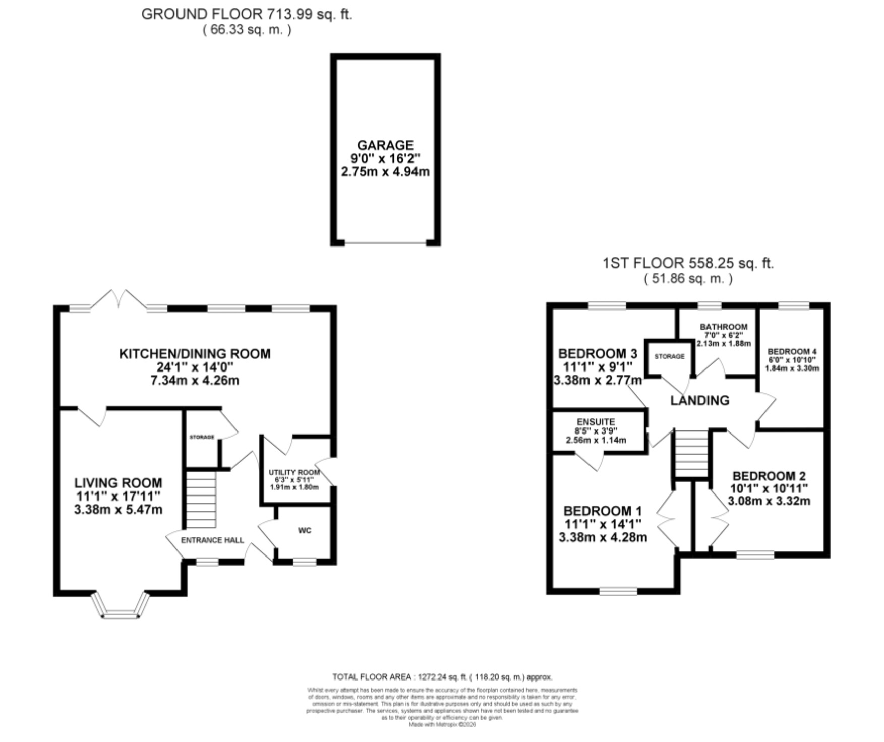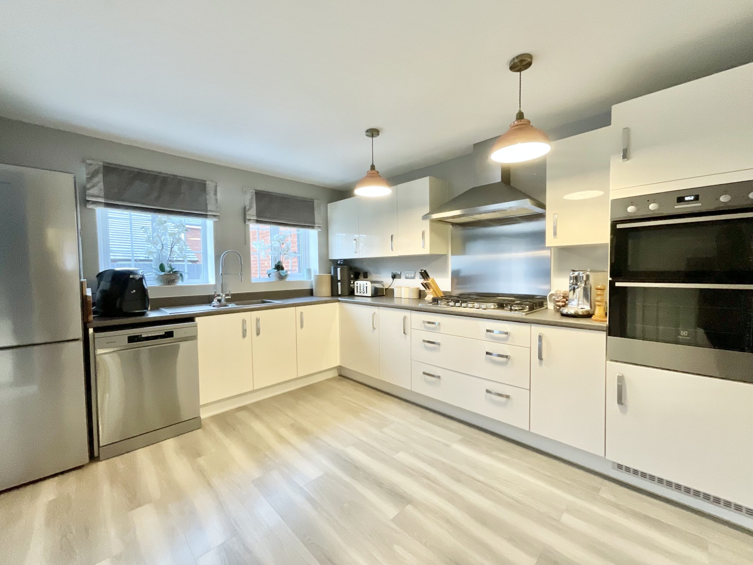 - Spacious living room with bay window, open-plan kitchen/diner with a practical L-shaped kitchen, room for appliances and a dining space. Separate utility room, under-stairs storage, and a W/C.