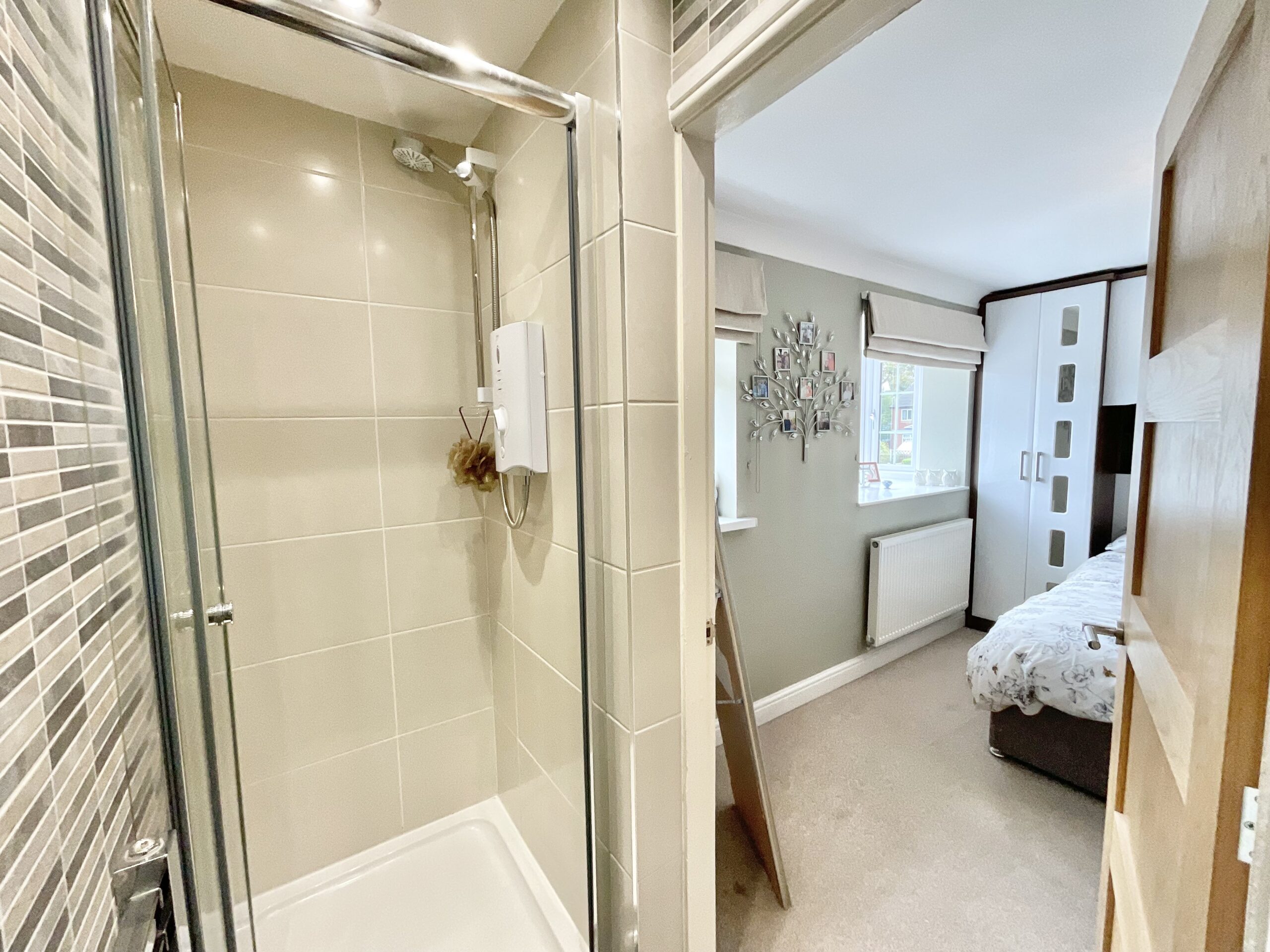 - A master bedroom offers its own en suite, while a further double and single bedroom offer versatility for a growing family, hosting guests, or working from home.