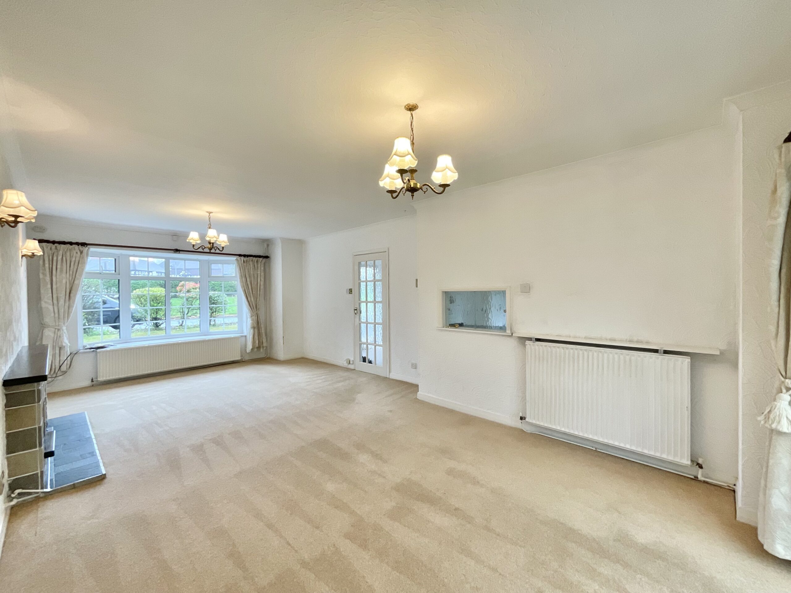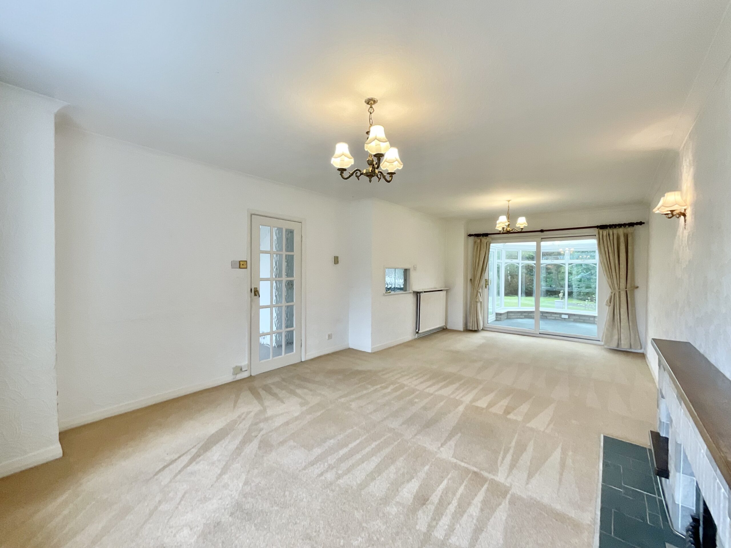 - Spacious ground floor with large entrance hall, W/C, open-plan lounge/diner with bay window & fireplace, plus sliding doors to conservatory and kitchen.