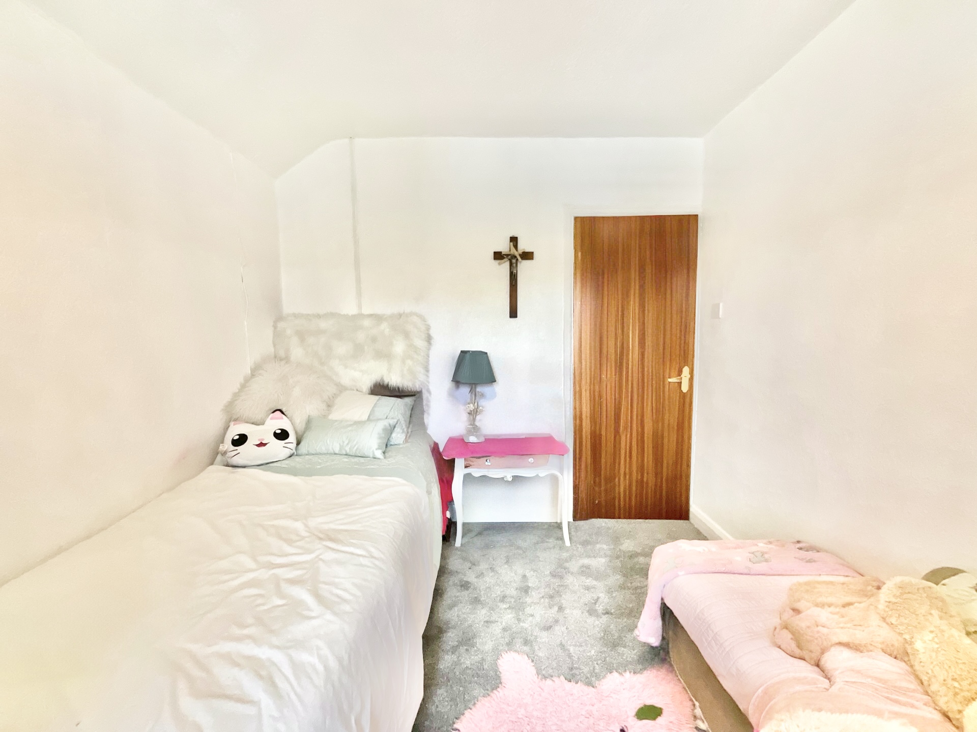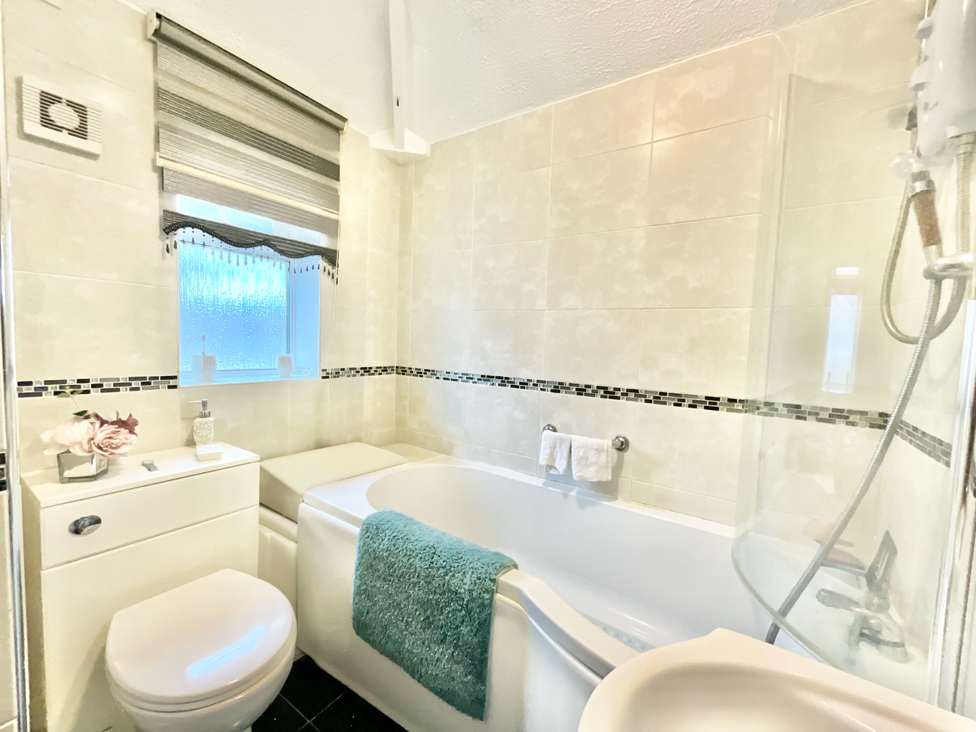 3. Three spacious bedrooms with modern bathroom featuring P-shaped bath with shower over.