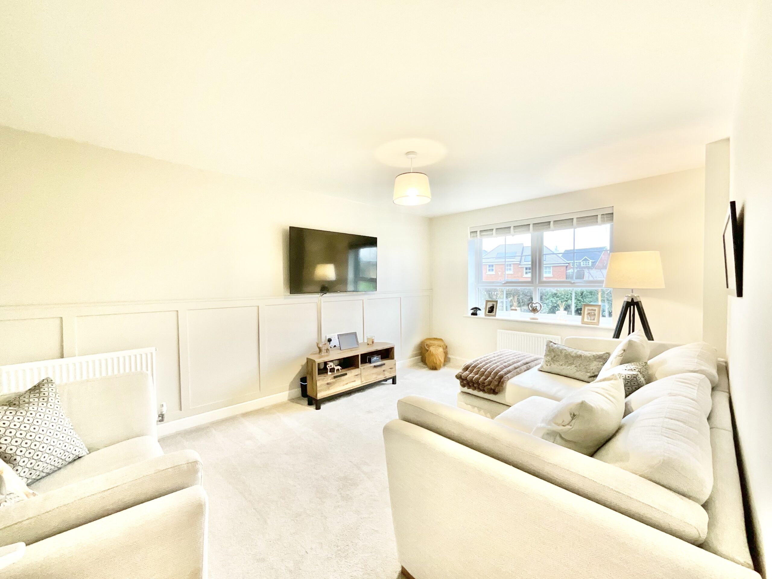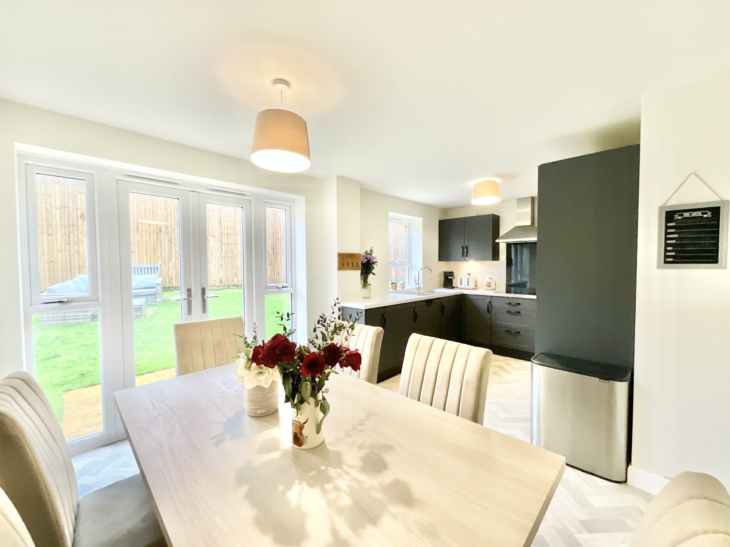 Udderly gorgeous and ready to make you moooove, this impressive four-bedroom modern detached home is perfectly positioned on the outskirts of Uttoxeter. Positioned peacefully towards the end of a private driveway, shared with just a few other homes you’ll have complete privacy and security. Step inside to a spacious entrance hall, where to the right, you’ll find a cosy and inviting living room, ideal for unwinding after a long day. At the heart of the home lies the stunning dining kitchen, a generous and light-filled space featuring sleek navy-blue cabinetry, marble-effect worktops, and integrated appliances. Glazed double doors open out to the garden, seamlessly blending indoor and outdoor living. With ample room for a large dining table, this space is perfect for entertaining family and friends. A handy utility room provides additional space for appliances, with a useful understairs cupboard and the ground floor is completed by a convenient guest WC. Upstairs, the property boasts four well-proportioned double bedrooms, including a master bedroom with an en-suite shower room. Two bedrooms benefit from fitted wardrobes, while a modern family bathroom completes the first floor. To the rear, enjoy a secure, south-facing garden with a lush green lawn and a small patio area, ideal for relaxing or outdoor dining. Parking is well catered for with a tarmac double driveway and a versatile garage, suitable for either additional parking or storage. Situated in the market town of Uttoxeter, offering a fantastic range of supermarkets, shops, bars, and eateries, along with excellent schools and superb transport links including a train station. For that little more excitement Alton Towers theme park is only a short drive away or the neighbouring Staffordshire Moorlands and Peak District! From first glance to final detail, this home really is the cream of the crop. Don’t let it “pasture: you by! Arrange your viewing today.