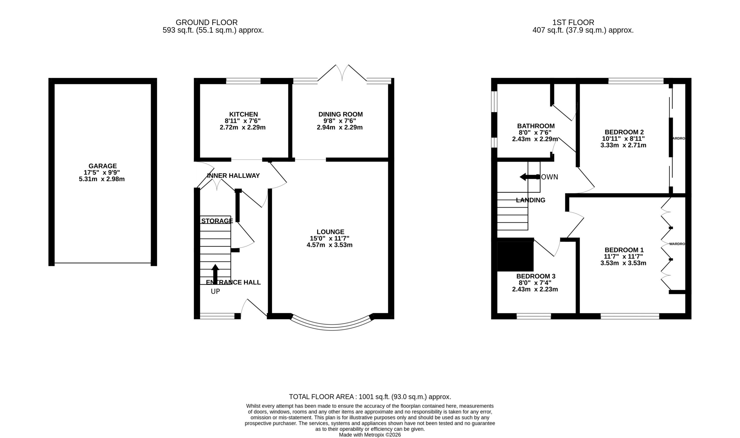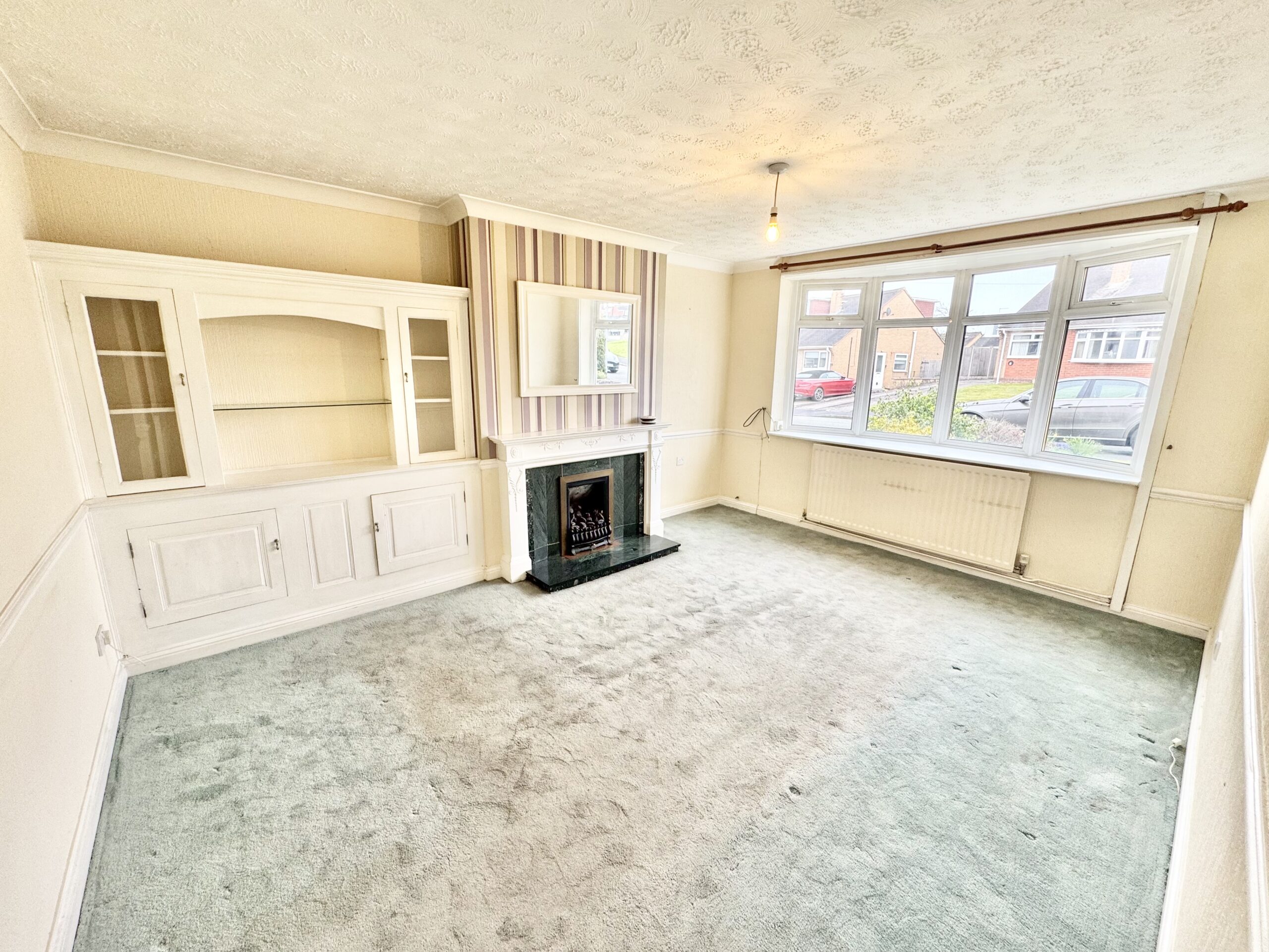 Three-bedroom home with lounge, dining area, kitchen, bathroom, fitted storage, front and rear gardens, garage, and driveway. Needs updating, offering great potential to personalise and add value.