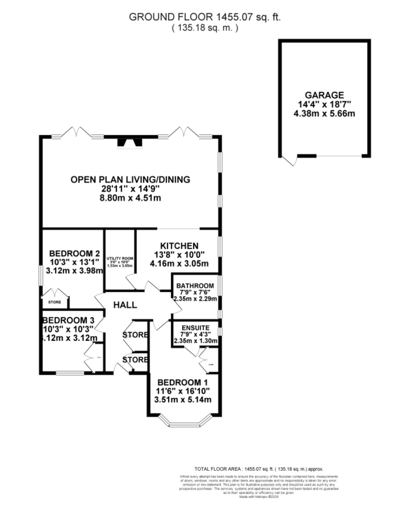 - Three generous bedrooms with fitted wardrobes, master with ensuite shower room, bathroom with panelled bath, shower, WC & vanity basin.