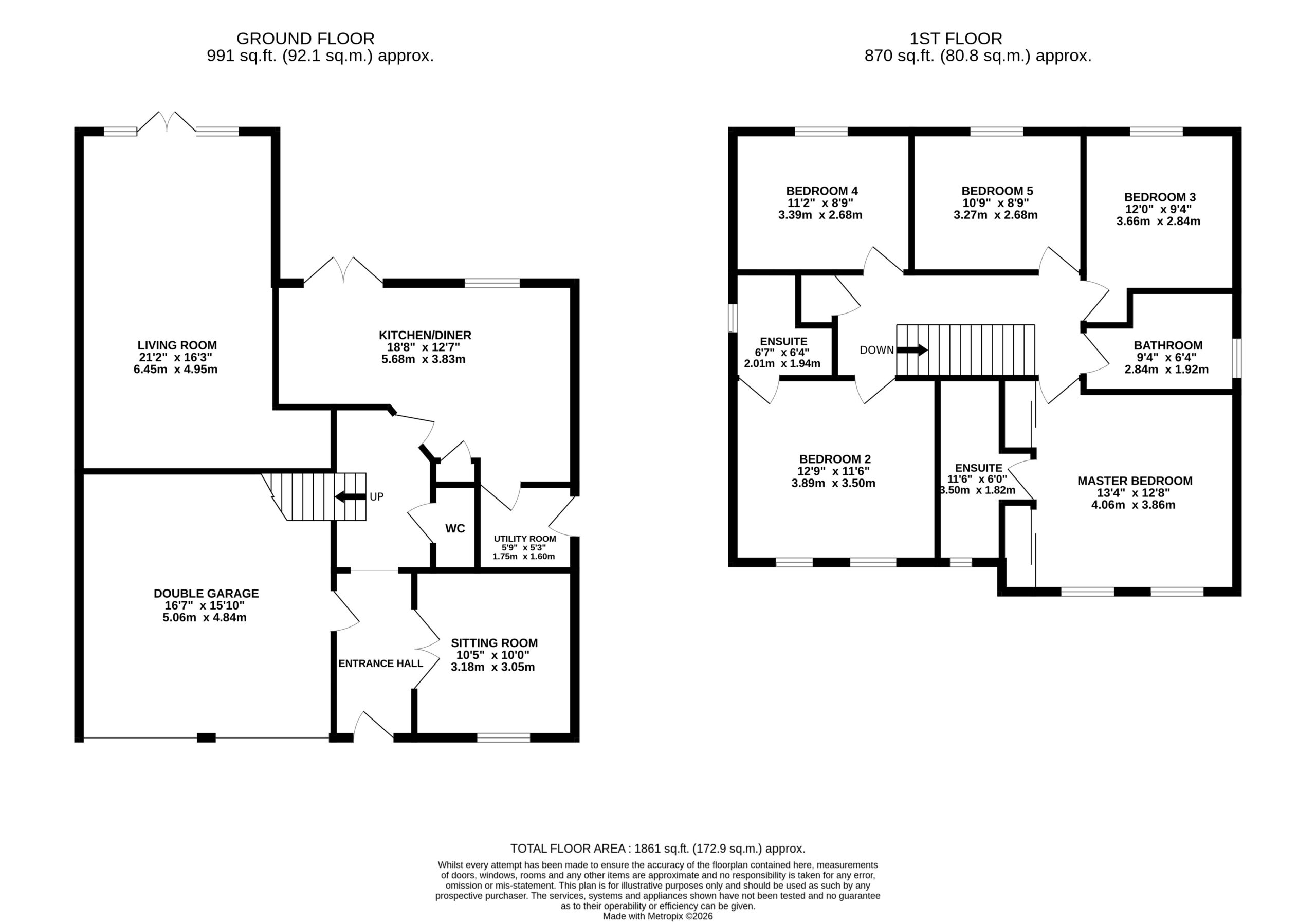 A separate sitting room provides valuable additional living space and can be used as a snug, playroom, or home office, depending on your needs. The ground floor is further enhanced by a utility room, which offers space for a washing machine and helps to keep the main kitchen area clutter-free, along with a convenient WC. Internal access to the double garage adds further practicality and storage options.