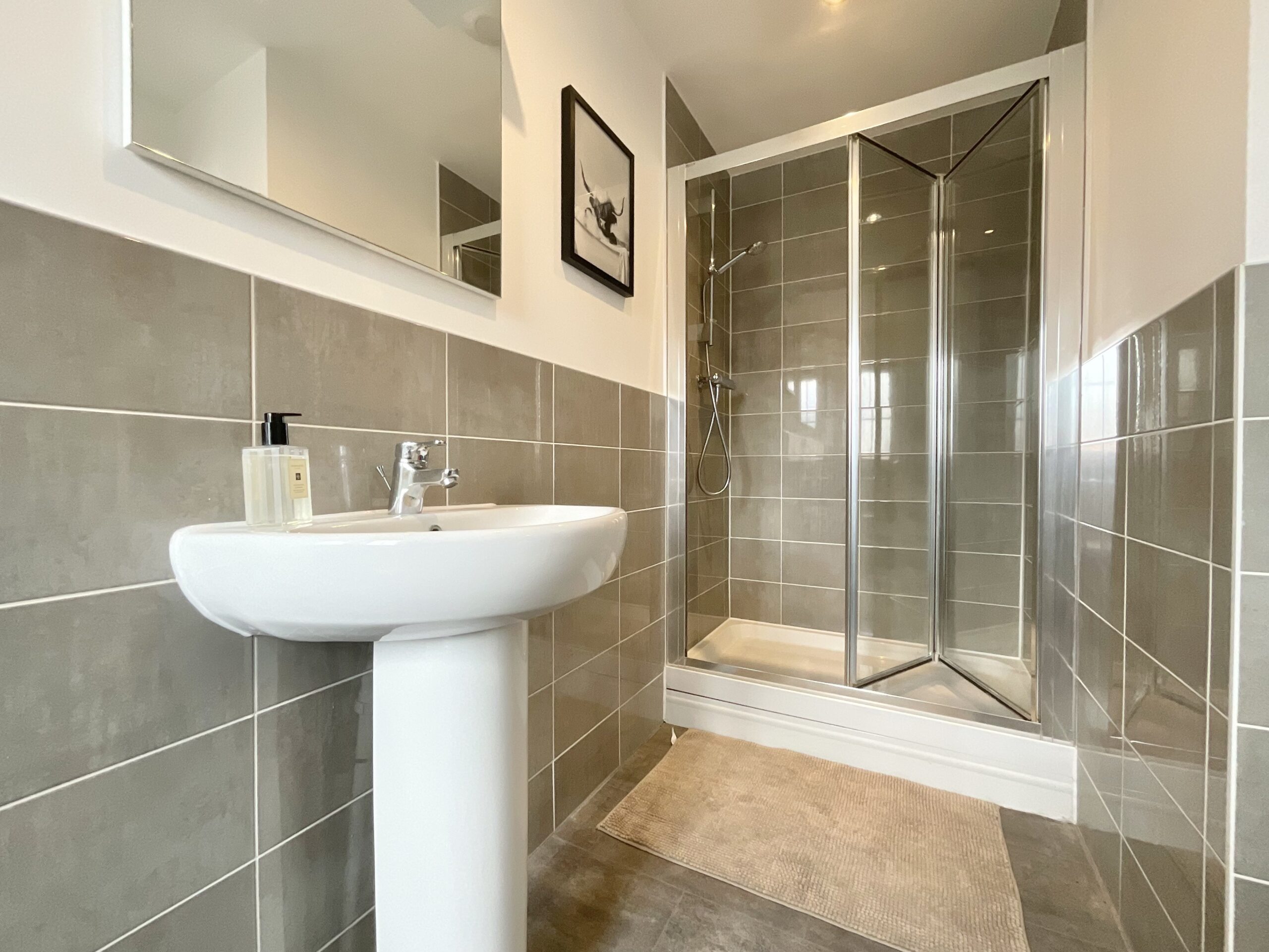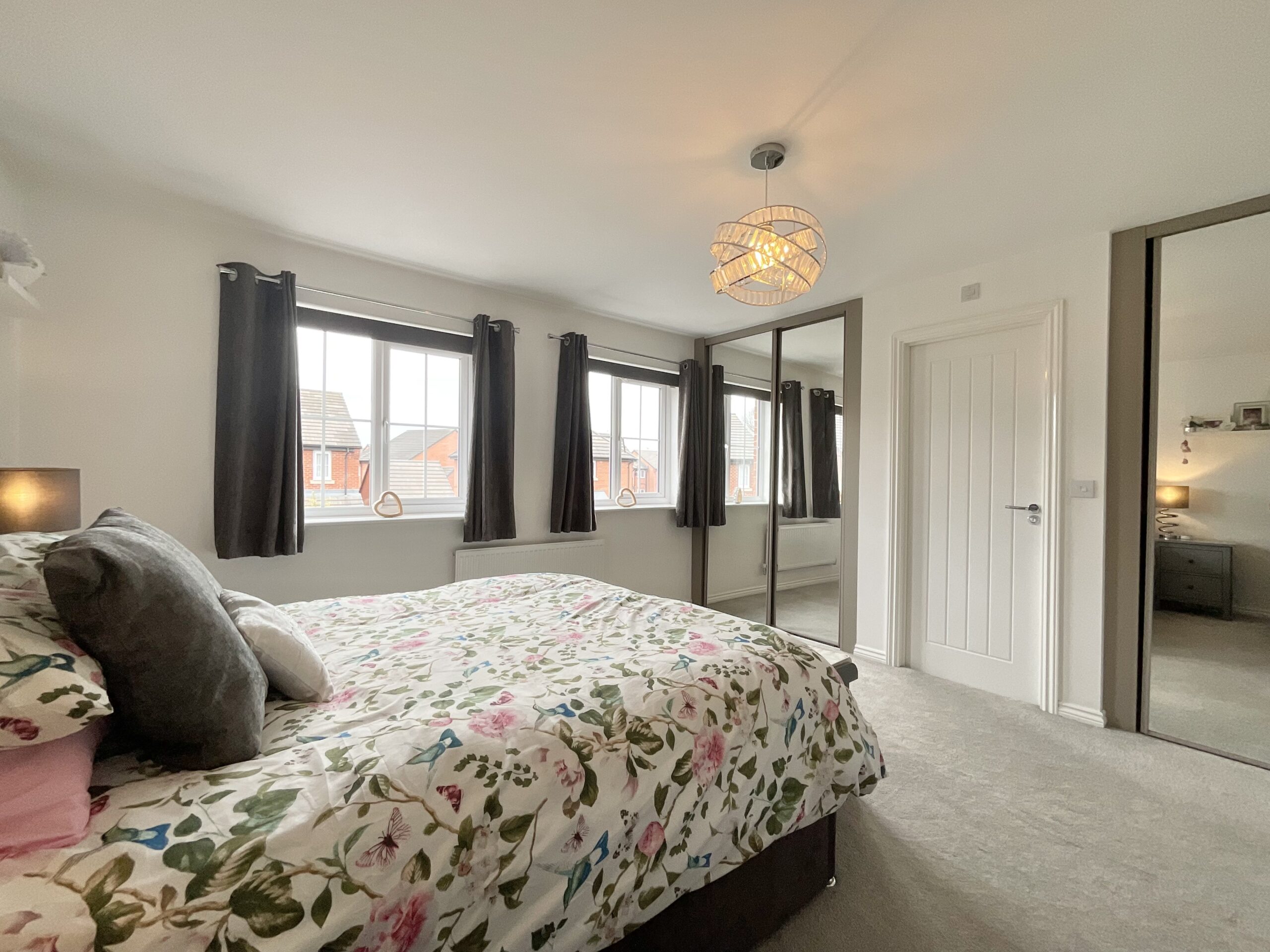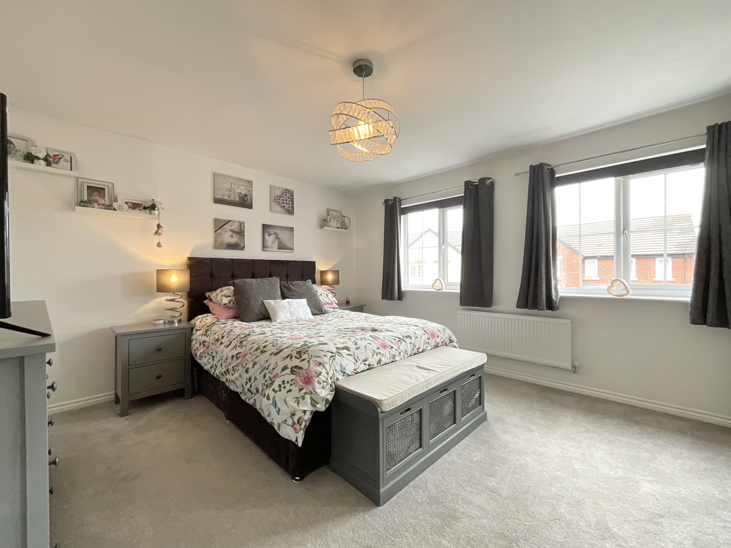 Upstairs, the property continues to impress with five well-proportioned bedrooms. The master bedroom is a comfortable and private space, benefiting from its own en-suite shower room. Bedroom two also enjoys its own en-suite with a shower, making it ideal for guests or multi-generational living. The remaining three bedrooms are all generously sized, offering flexibility for growing families, home working, or hobby spaces. A well-appointed family bathroom serves these rooms, completing the first floor.