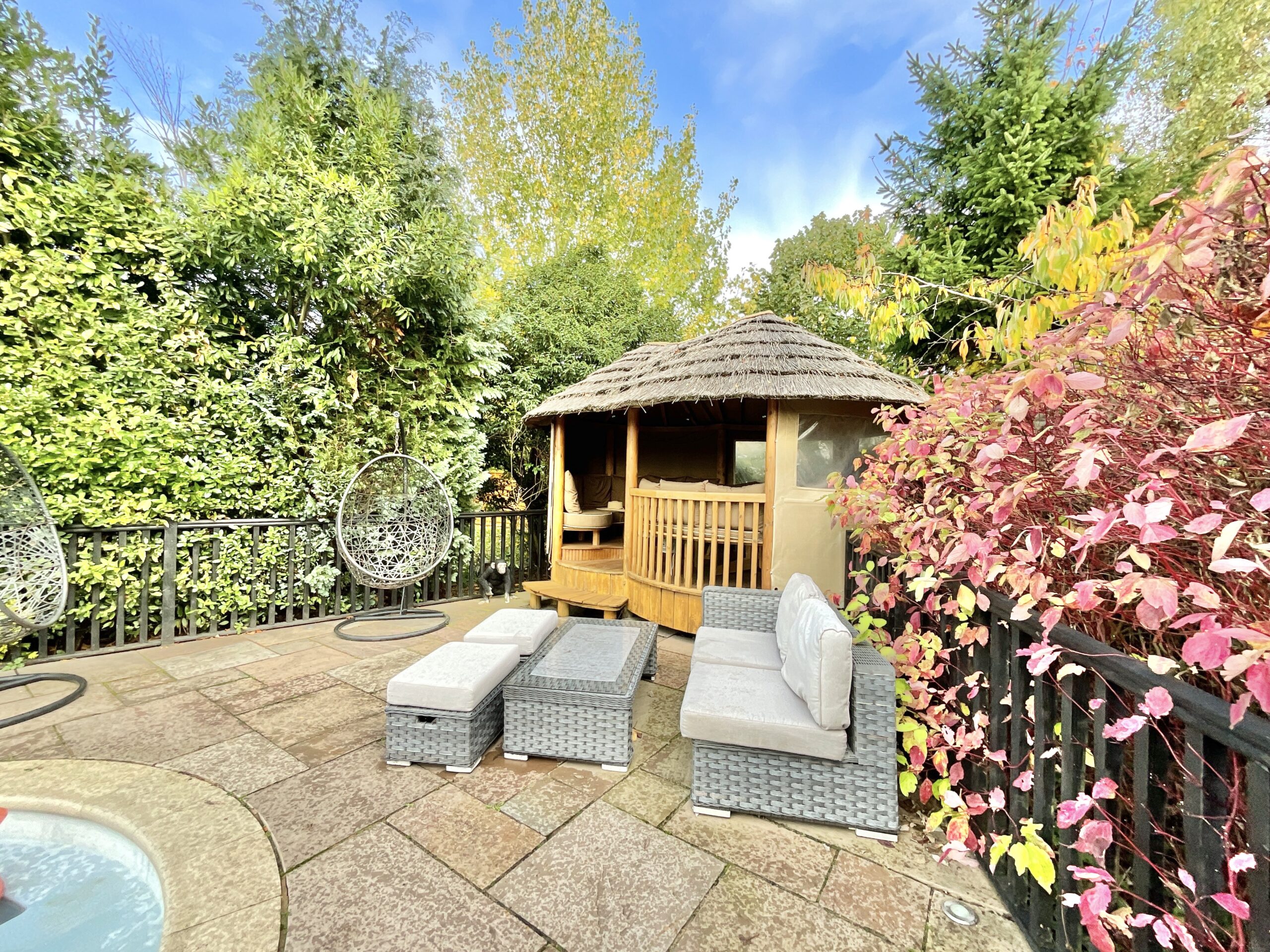 4. Outside, entertaining has never been so chic! The generously sized garden offers a heated swimming pool, garden lodge, office/studio and many lawn and patio areas for year round fun!