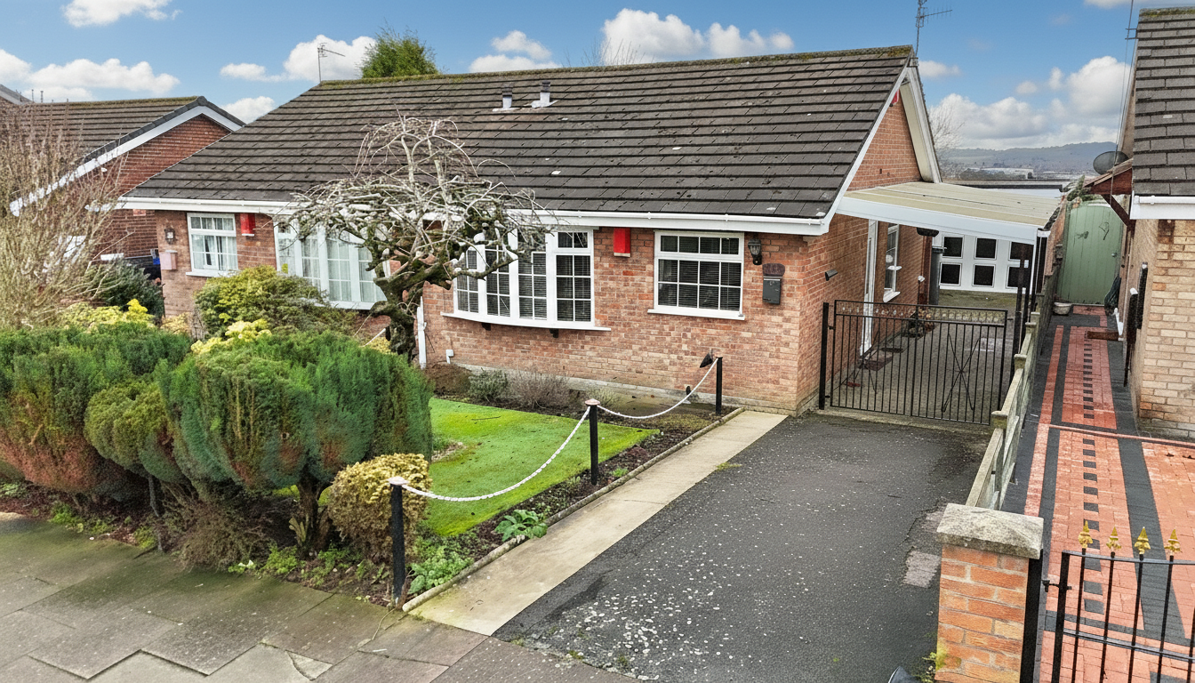 “Big wheels keep on turning…” and they’ll lead you straight to 341 Fenpark Road. Situated in the heart of Fenpark, this charming two-bedroom bungalow enjoys a prime location close to a range of modern conveniences, including local shops and eateries, as well as excellent commuter links. Fenpark itself and Sammies Pool are just moments away, offering lovely green spaces for evening strolls or letting the children burn off some energy in the play area. Step inside, and immediately to the left, you’ll find the heart of the home, a well-appointed kitchen featuring an abundance of cream cabinetry for all your storage needs, complemented by wood-effect worktops that create the perfect space to cook and entertain. Following the hallway, you’re welcomed into a spacious and light-filled living room, complete with a cosy gas fire surround and a bay window that floods the space with natural light, the ideal spot to kick off your shoes and unwind. The bungalow boasts two generous double bedrooms. One benefits from built-in wardrobes and double doors opening into the conservatory, while the other features glazed double doors leading directly out to the garden. A family bathroom serves the home. Adding versatility is the conservatory, providing an additional reception space where you can enjoy your favourite tipple while basking in the afternoon sun and watching the world go by. To the rear, a spacious, low-maintenance garden laid with stone and pathways offers privacy and far-reaching views across Stoke-on-Trent, that stretch for miles, all securely enclosed by fencing. Parking is well catered for with a tandem driveway, carport, and the added bonus of a garage, perfect for frosty mornings or useful additional storage. A delightful bungalow in a sought-after location, early viewing is highly recommended.