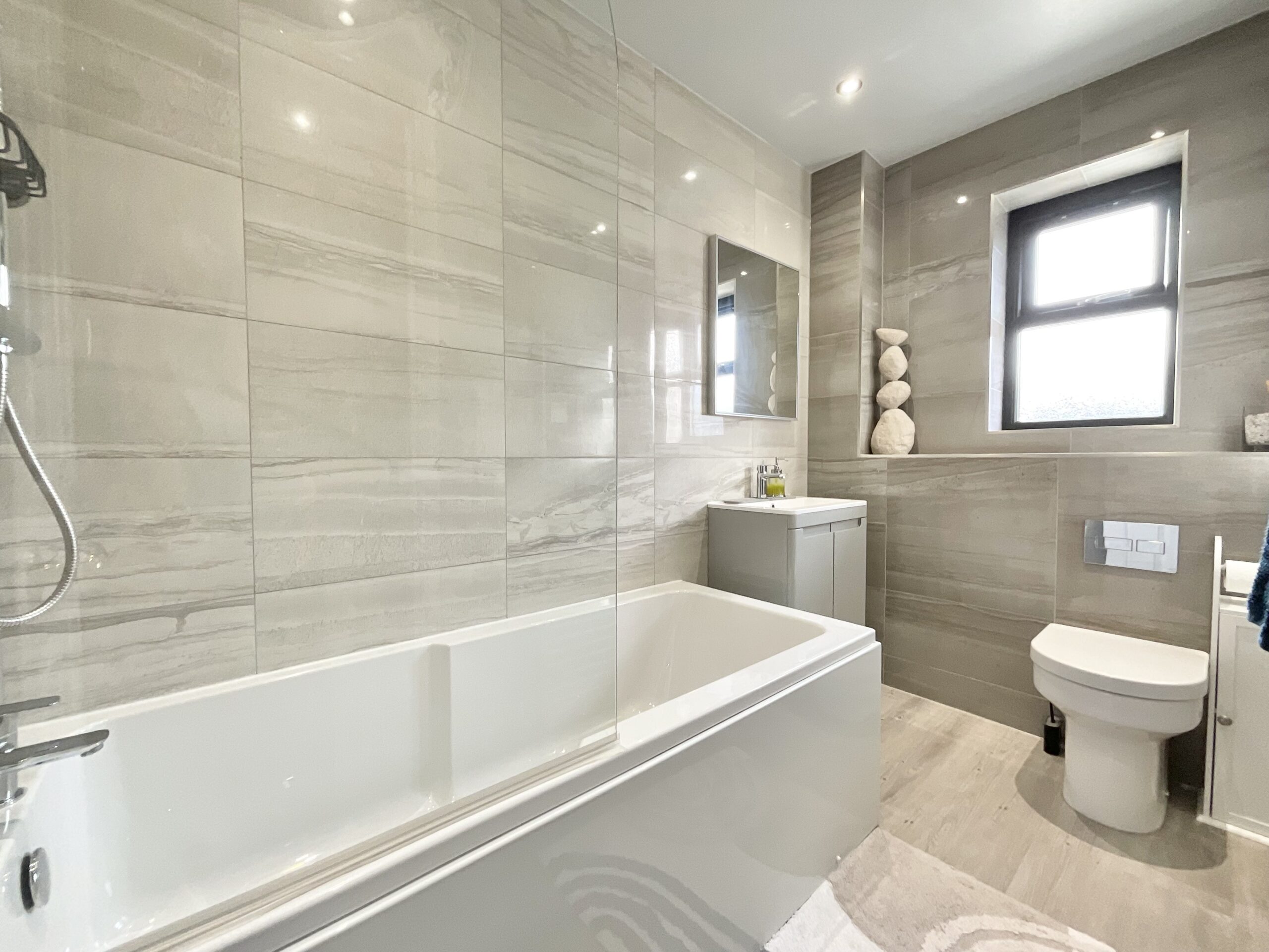 Upstairs, the property continues to impress. The master bedroom benefits from fitted wardrobes and a modern contemporary en-suite shower room, while the remaining bedrooms are served by a stylish, updated family bathroom, finished to a high standard in keeping with the rest of the home.