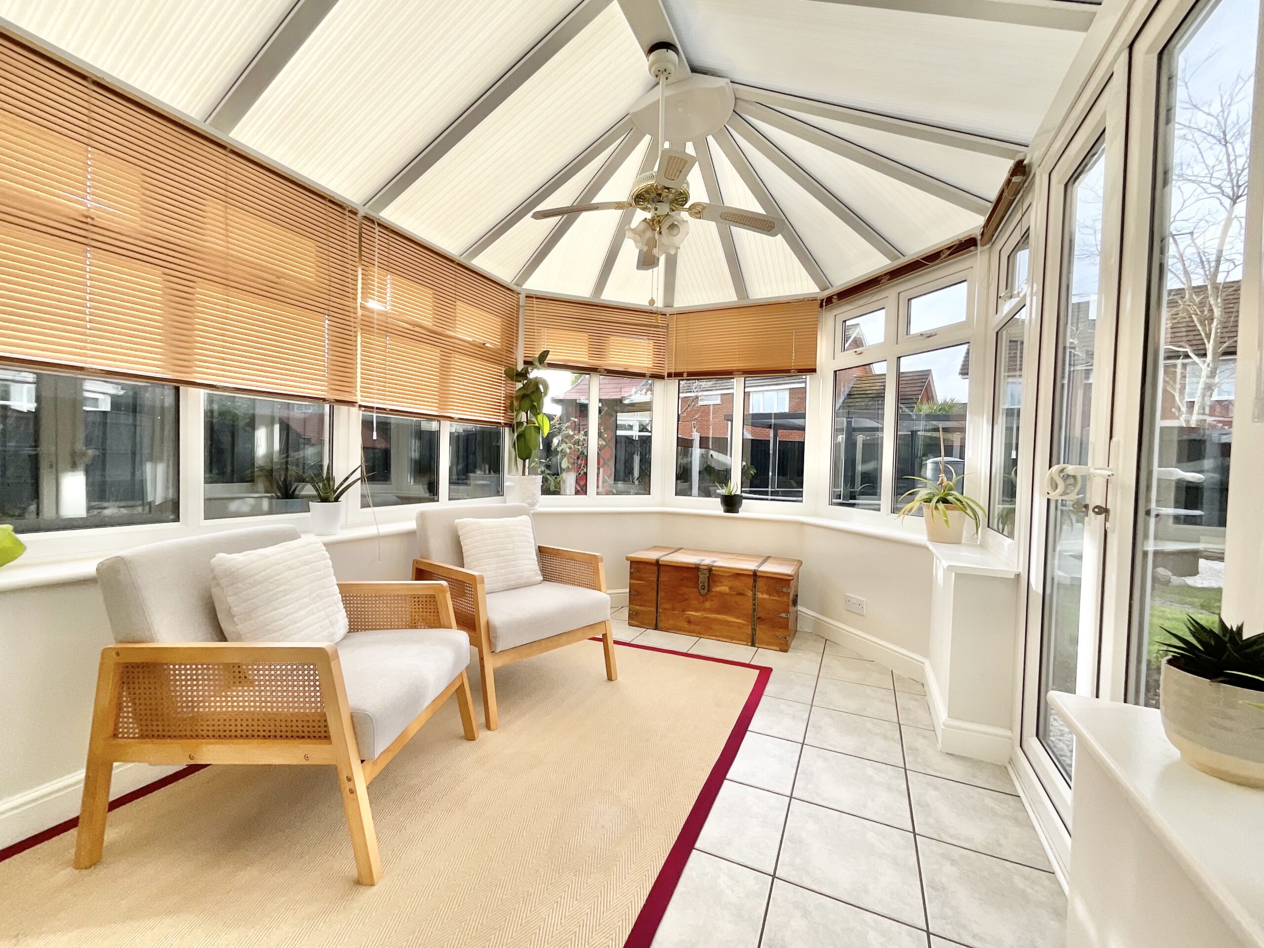 Inside, the accommodation is light, fresh and tastefully updated, with all carpets and flooring recently replaced in elegant cream and beige tones that create a warm and cohesive feel throughout. The heart of the home is the open-plan living and dining space, ideal for both everyday family life and entertaining, offering a spacious and sociable layout. To the rear, a conservatory provides an additional reception area and enjoys lovely views over the garden, creating a perfect spot to relax year-round.