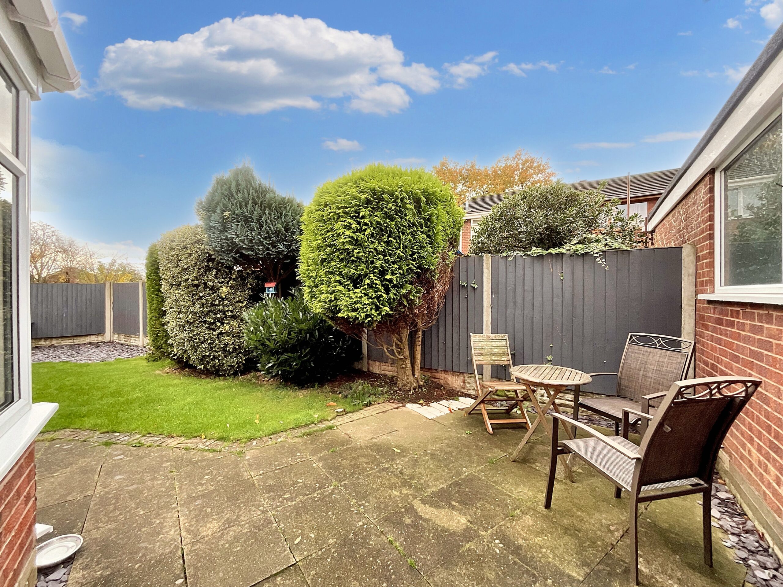 - Direct South-facing garden boasting patio and slate seating areas, lush grass lawn, mature hedging, and a private side entrance with composite gate leading you to the front door.