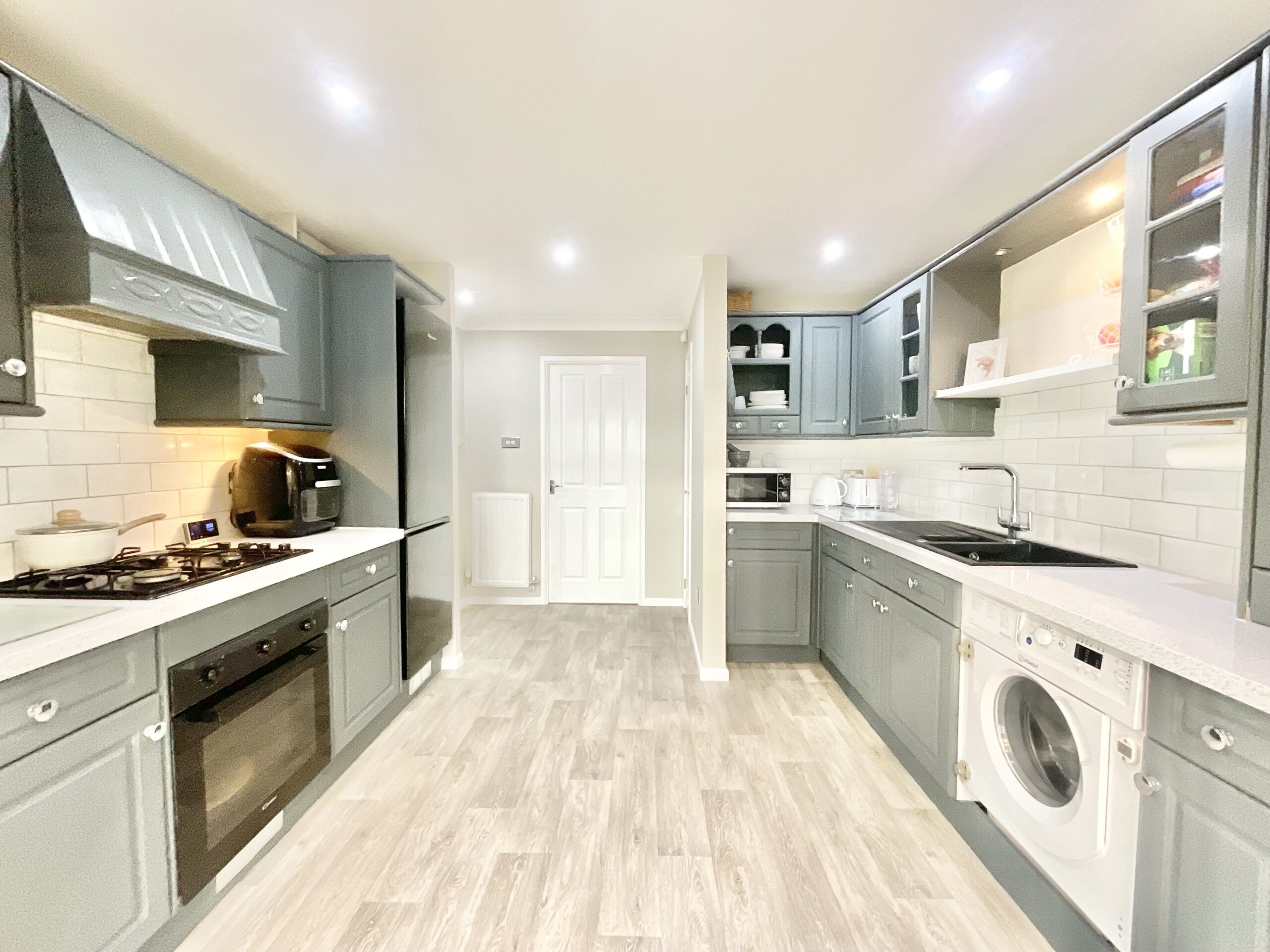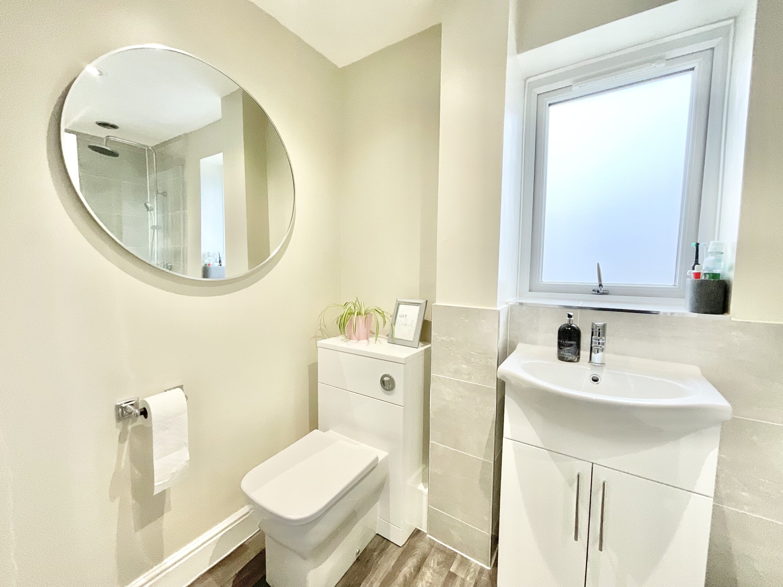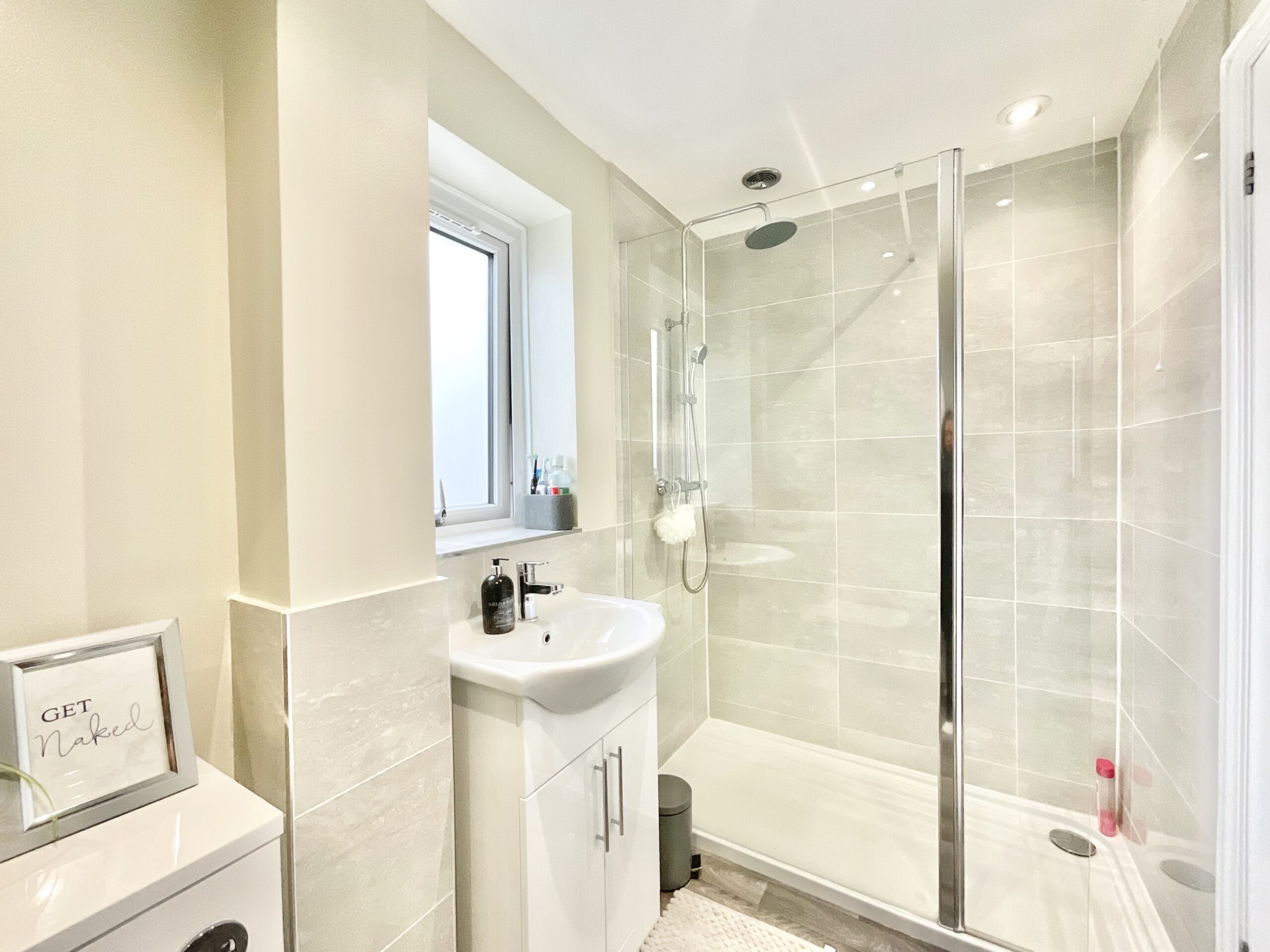 Upstairs is home to two spacious double bedrooms, both offering fitted wardrobe space, perfect for hosting guests, working from home, or even having your very own dressing room. The bathroom has been beautifully updated to offer a walk-in rainfall shower, sleek tiles, a sink, and a W/C.