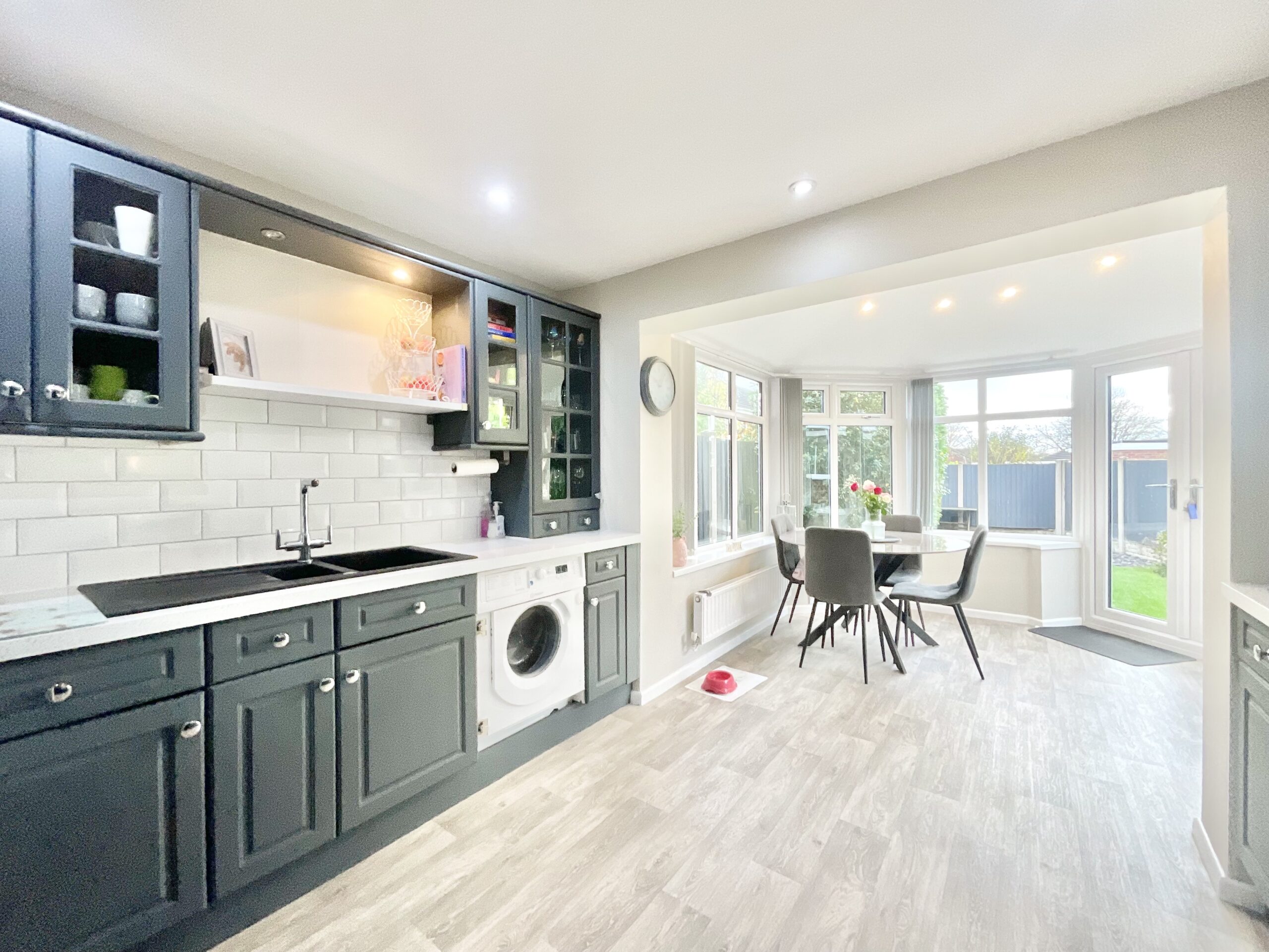 - Welcoming living room with bay window and feature fire surround, open-plan kitchen/conservatory with stylish kitchen, plenty of room for appliances, and easy flow into versatile conservatory.
